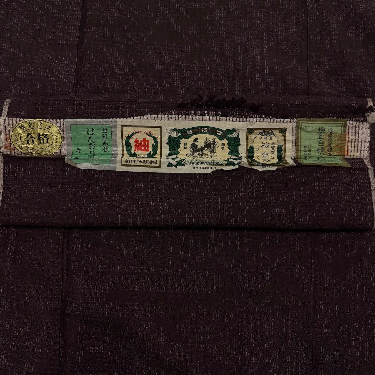 【美品】 結城紬 身丈154cm 裄丈63cm S 袷 はたおり娘 証紙あり 松竹梅 亀甲絣 紫 正絹 秀品