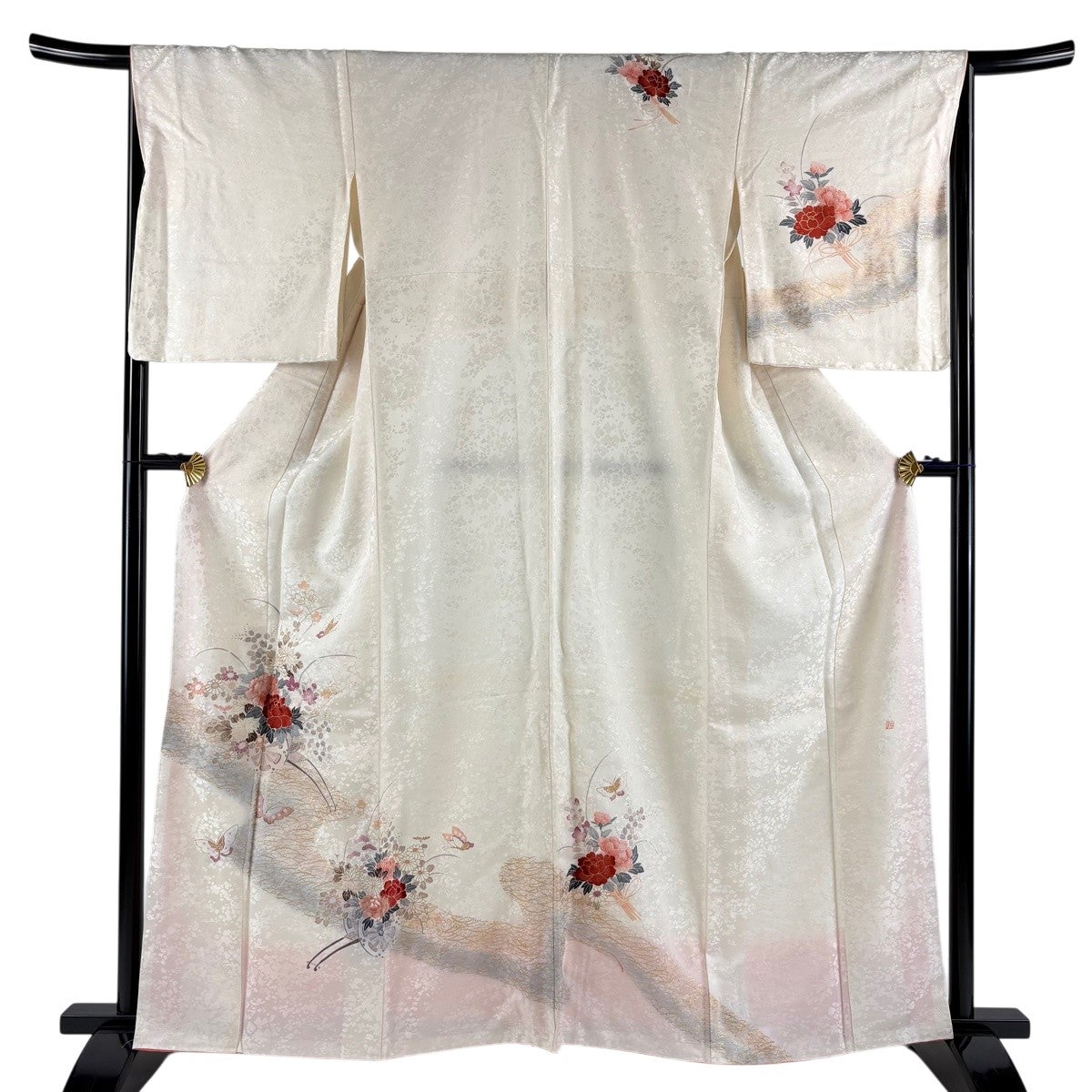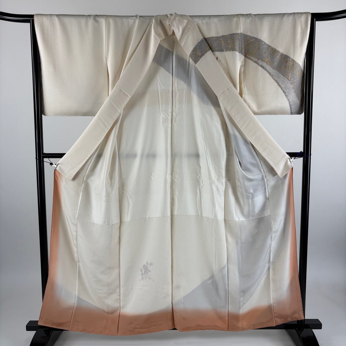 訪問着 身丈158.5cm 裄丈66cm M 袷 笹 地紋 ぼかし ベージュ 正絹 秀品 一つ紋
