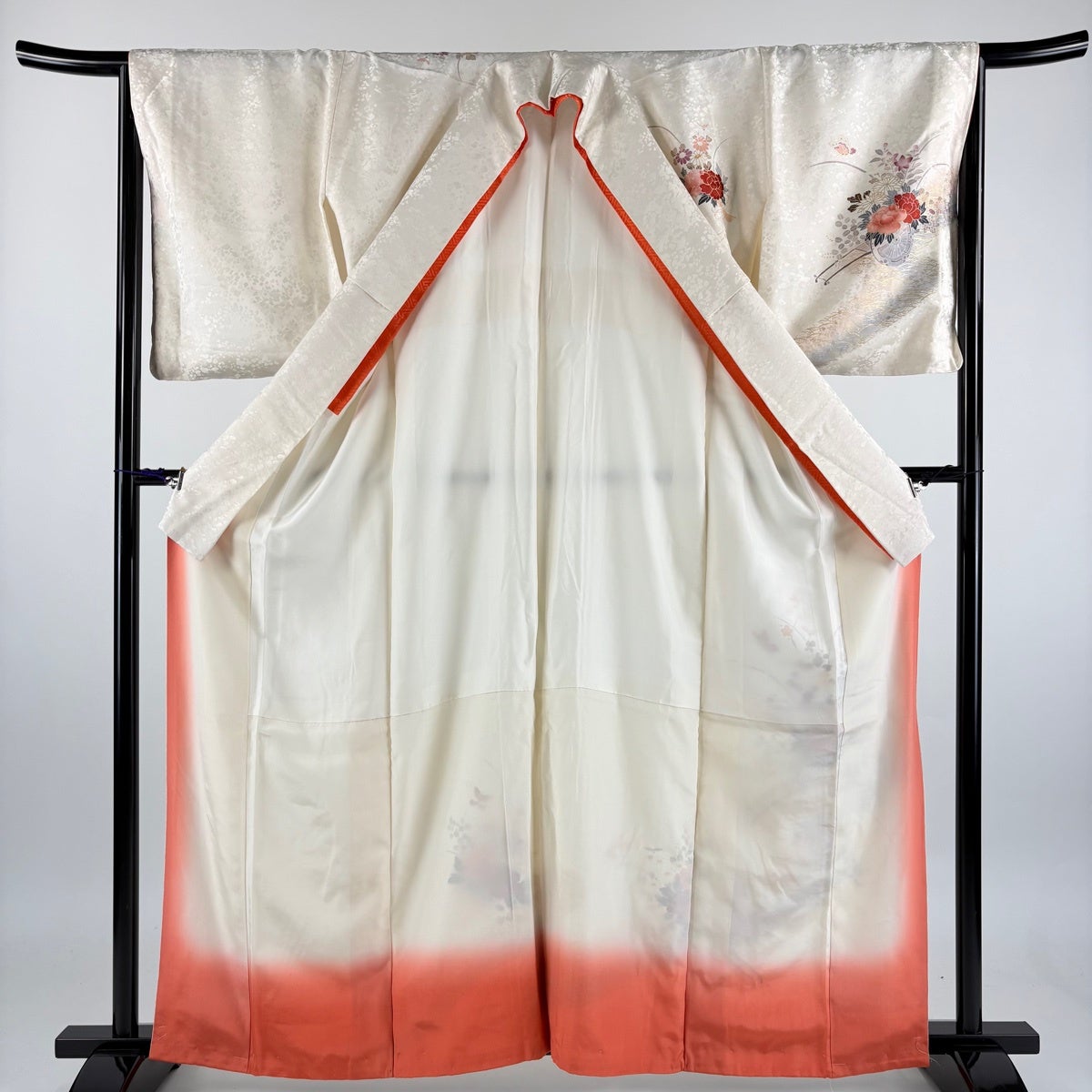 振袖 身丈159cm 裄丈63cm S 袷 袋帯フルセット 鶴 薔薇 金銀彩 ぼかし 赤 正絹 秀品