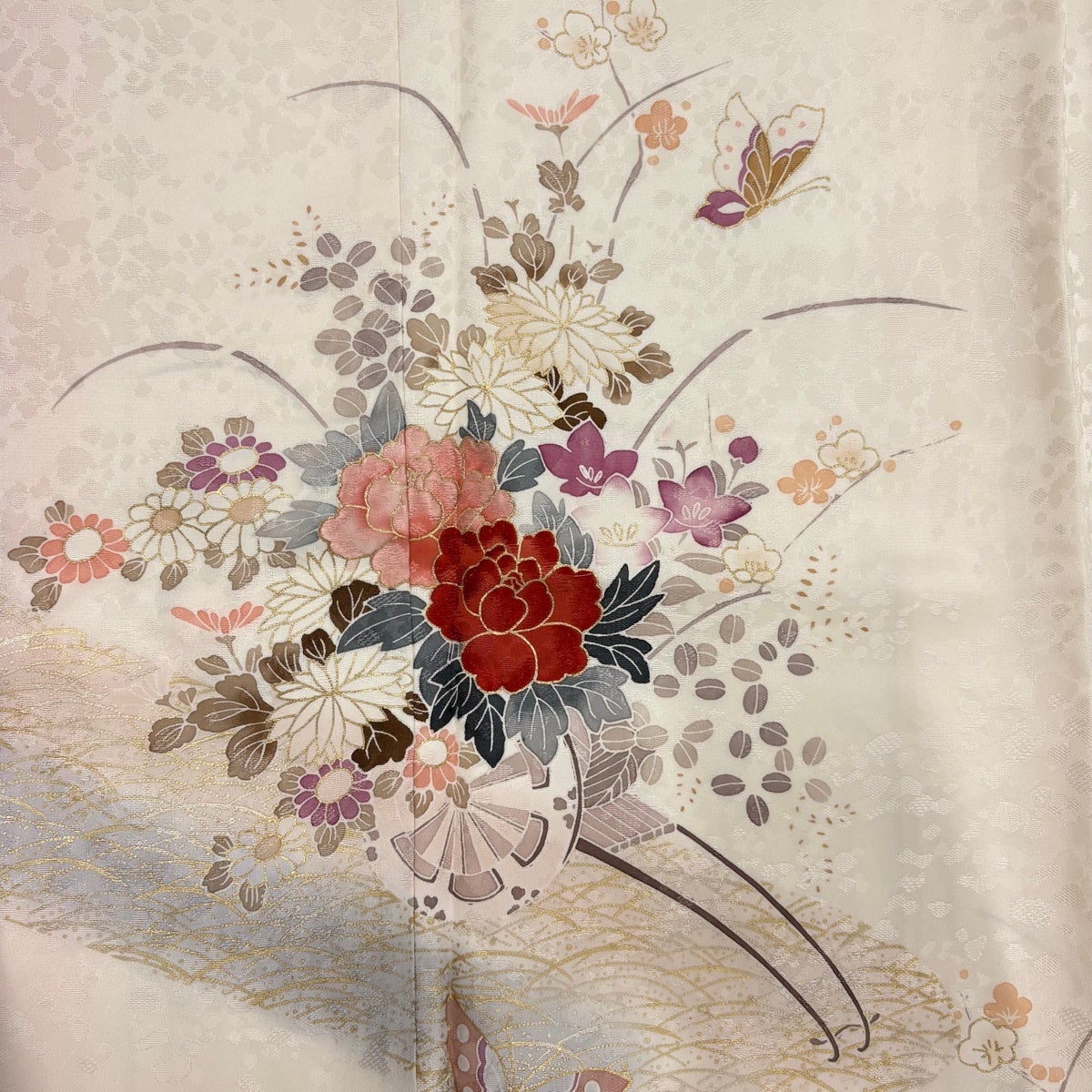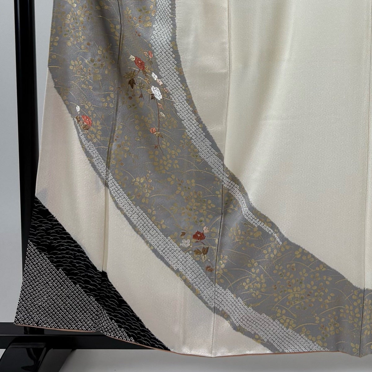 【美品】 長襦袢 身丈124.5cm 裄丈63cm S 草花 箔散らし 金銀彩 クリーム 正絹 秀品