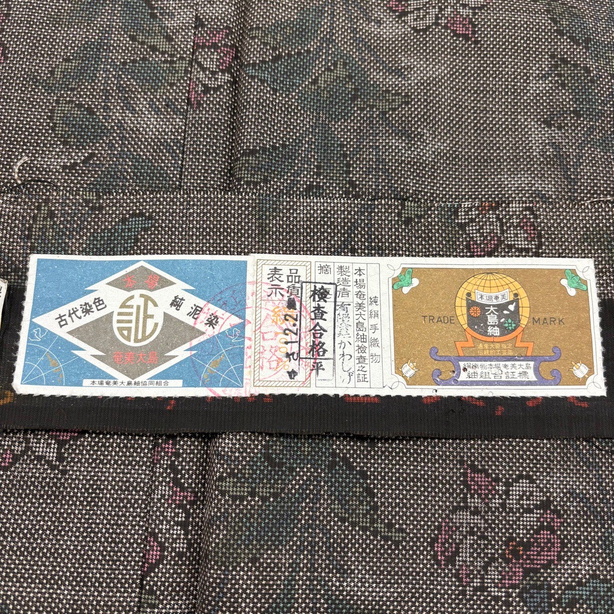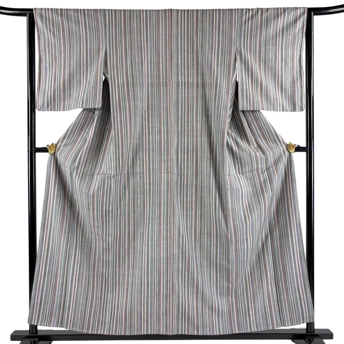 【美品】 小紋 身丈153.5cm 裄丈63.5cm S 単衣 幾何学模様 絞り 灰茶 正絹 秀品 一つ紋