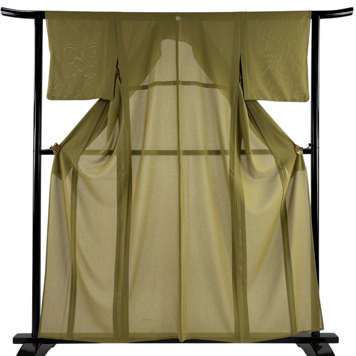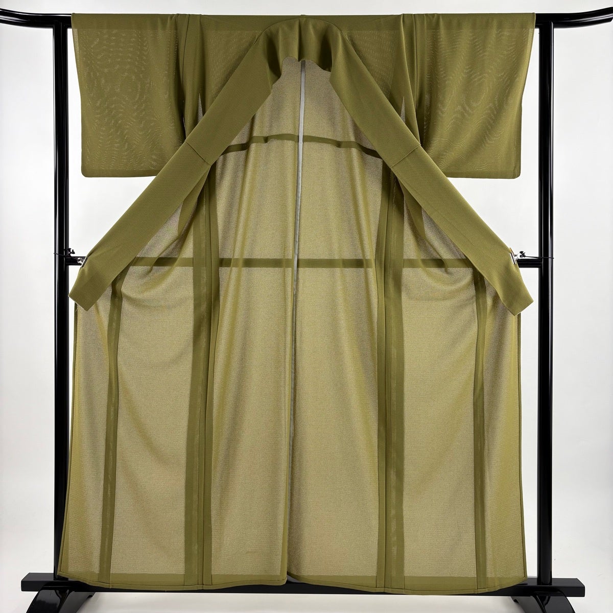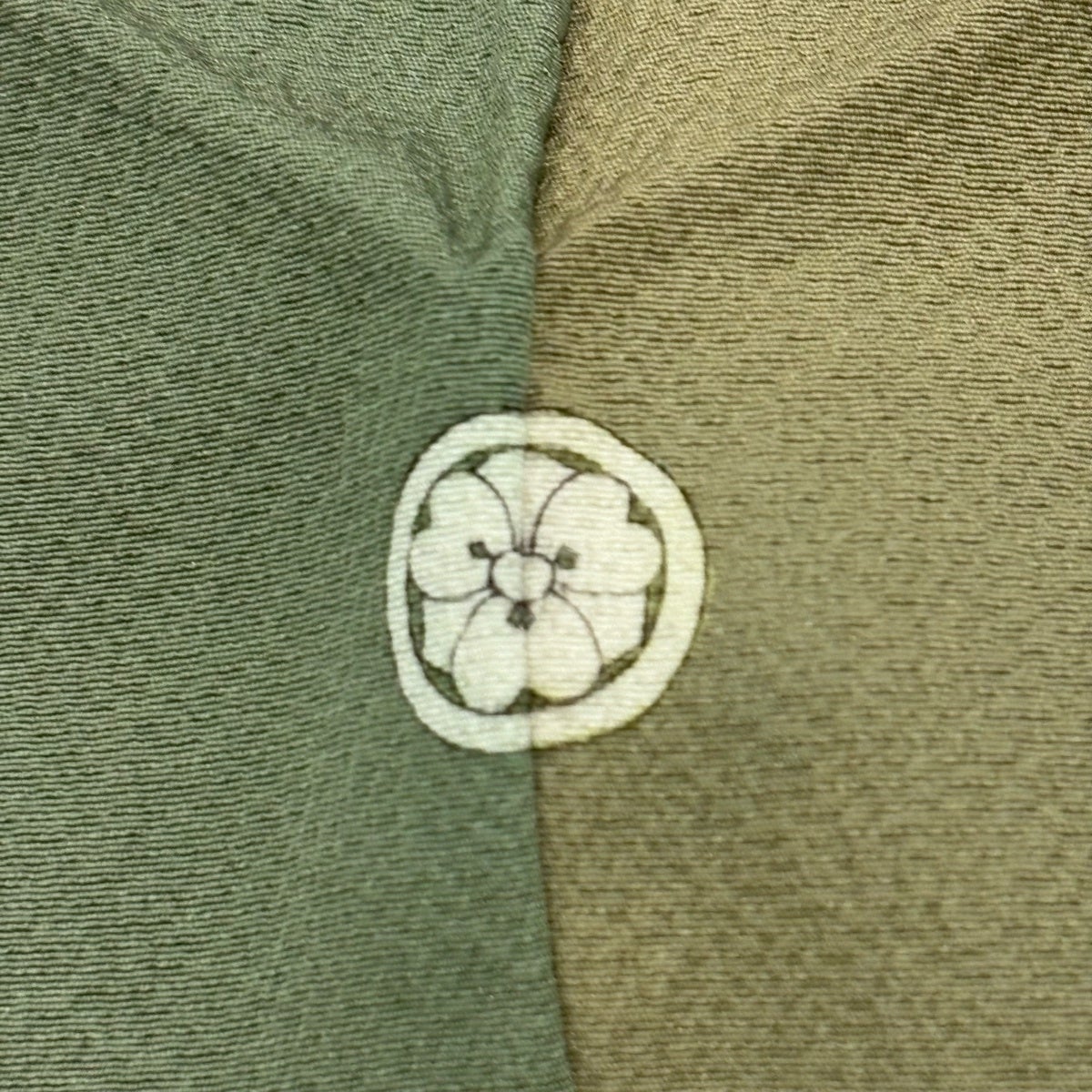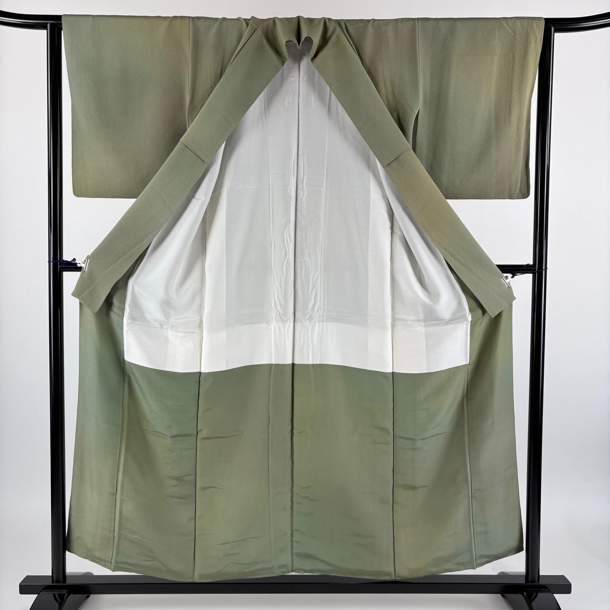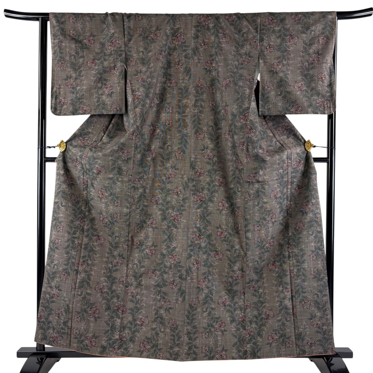 訪問着 身丈165cm 裄丈64.5cm M 袷 落款あり 草花 片輪車 金糸 刺繍 灰緑 正絹 秀品