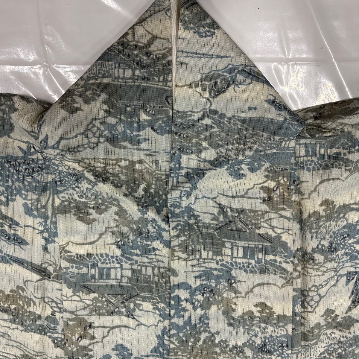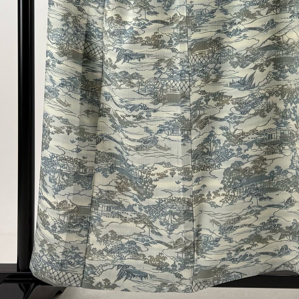 訪問着 身丈161.5cm 裄丈62cm S 袷 風景 金閣寺 金彩 ぼかし 灰緑 正絹 秀品 一つ紋