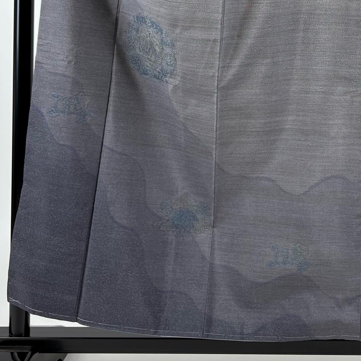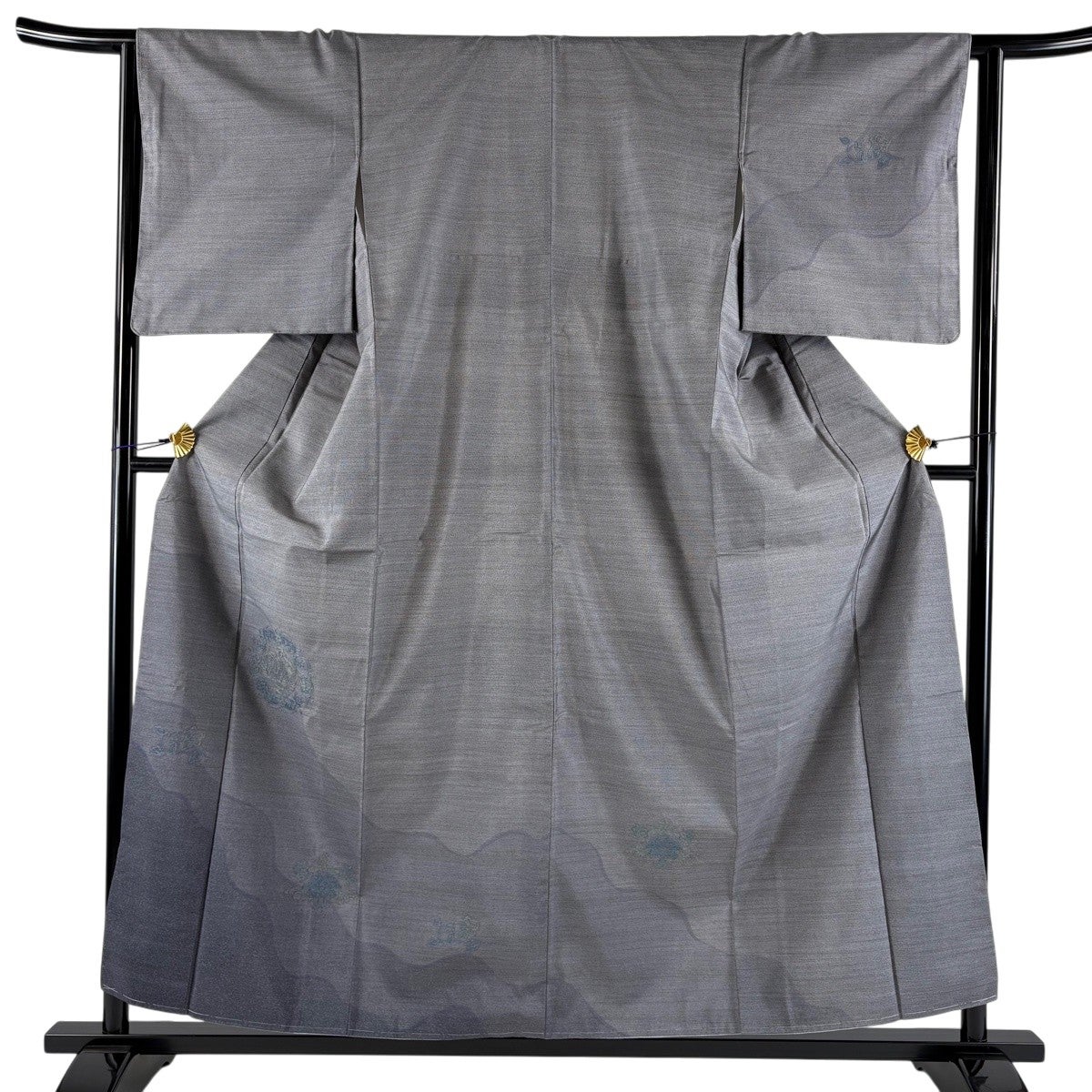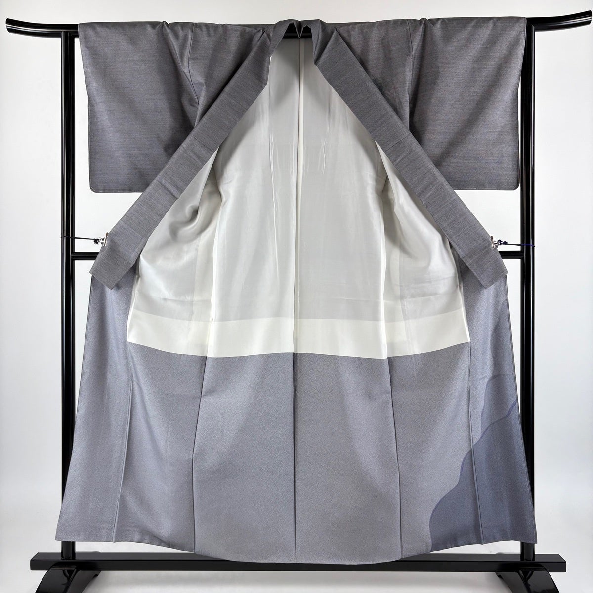付下げ 身丈154.5cm 裄丈66.5cm M 袷 流水 幾何学模様 ぼかし 灰色 正絹 秀品 一つ紋