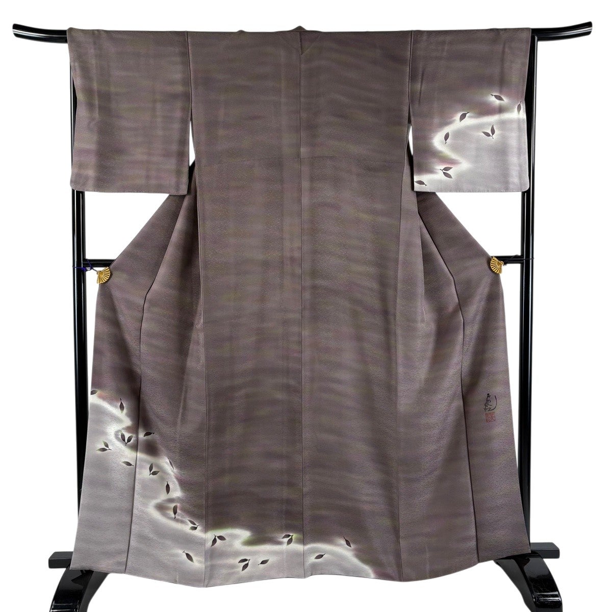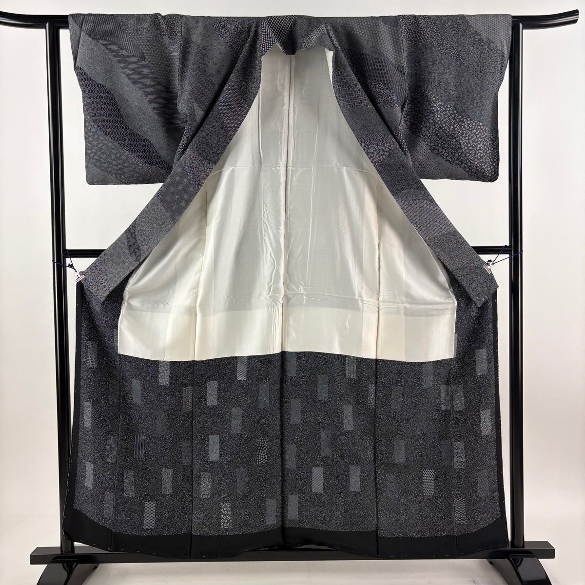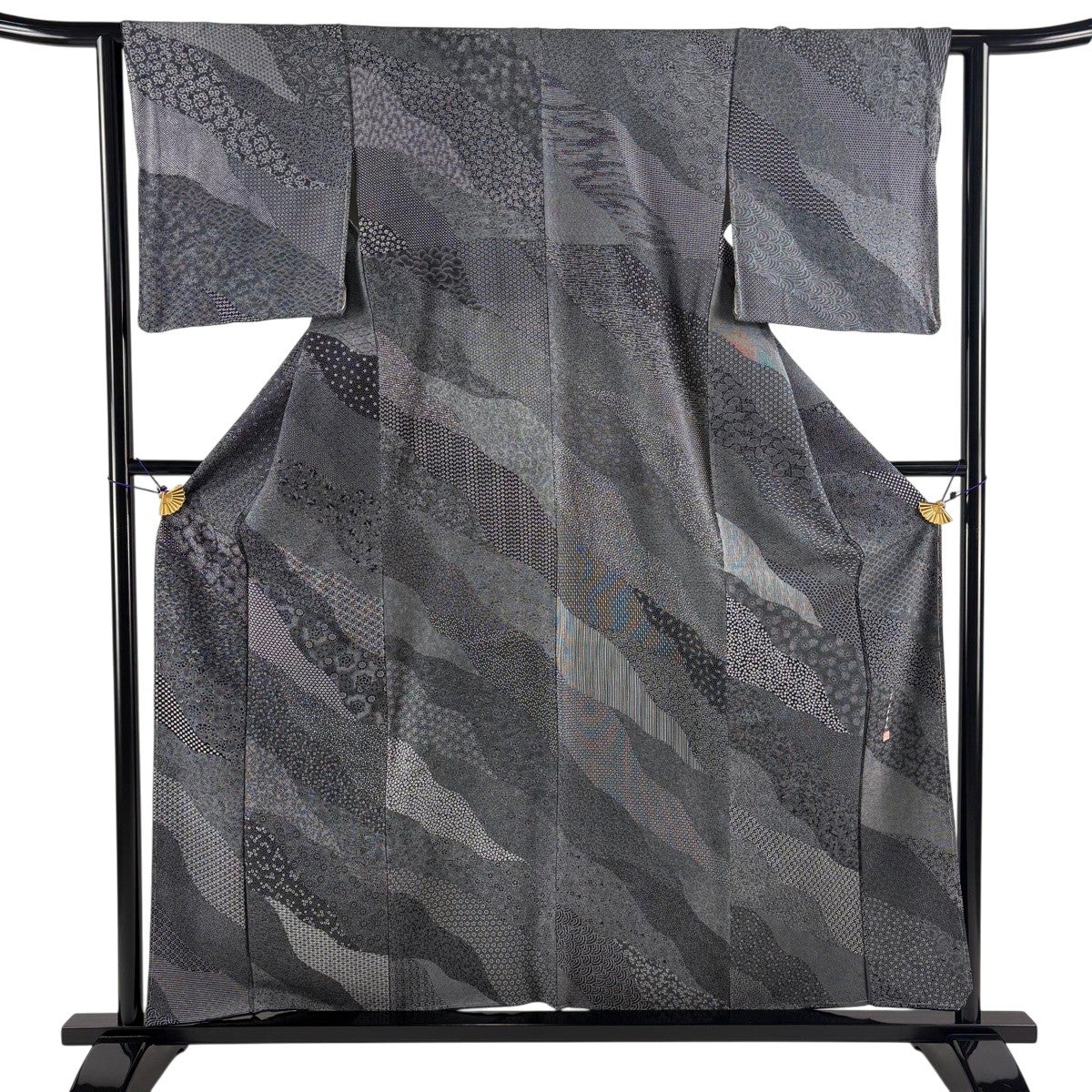 付下げ 身丈154.5cm 裄丈66.5cm M 袷 流水 幾何学模様 ぼかし 灰色 正絹 秀品 一つ紋