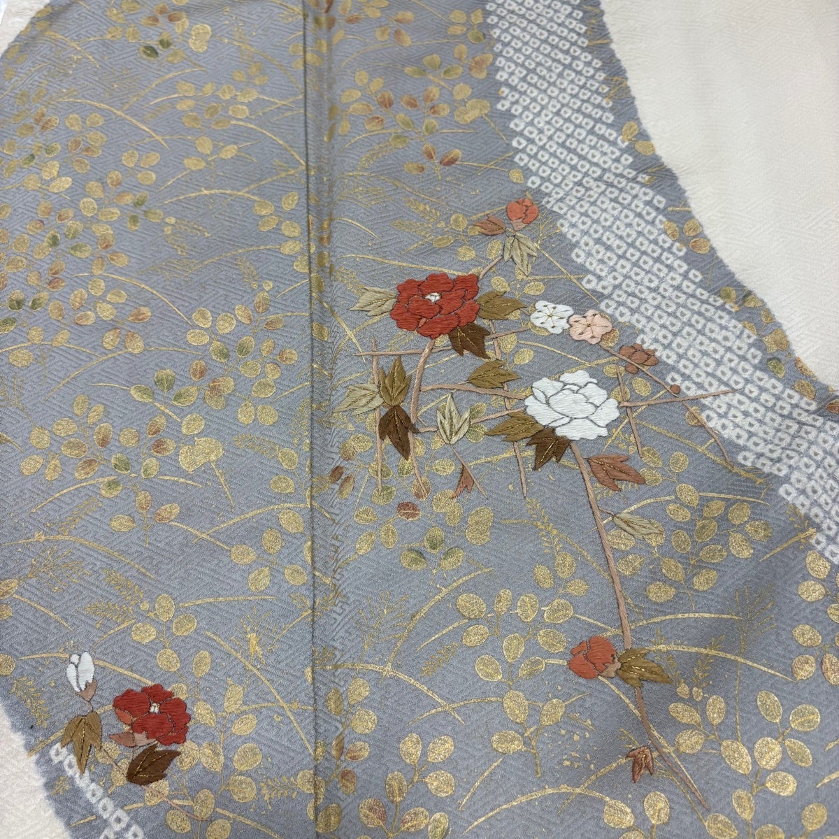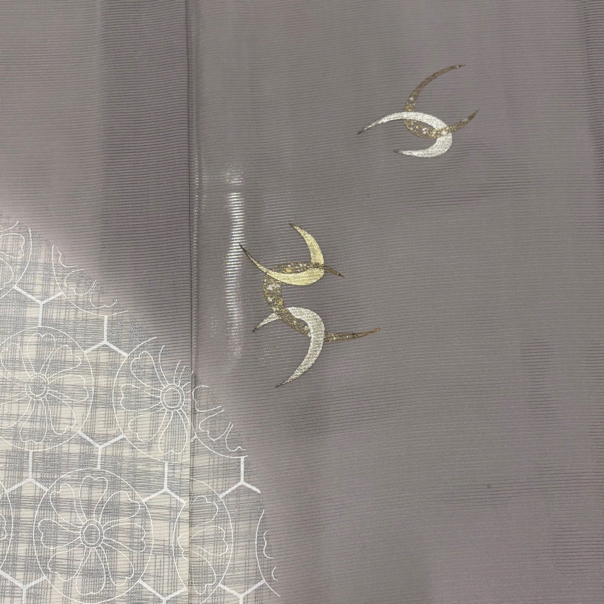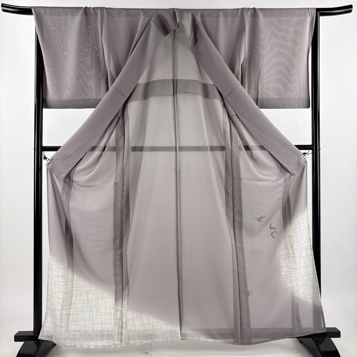 【美品】 付下げ 身丈159.5cm 裄丈66.5cm M 袷 草花 地紋 金糸 刺繍 灰紫 正絹 秀品