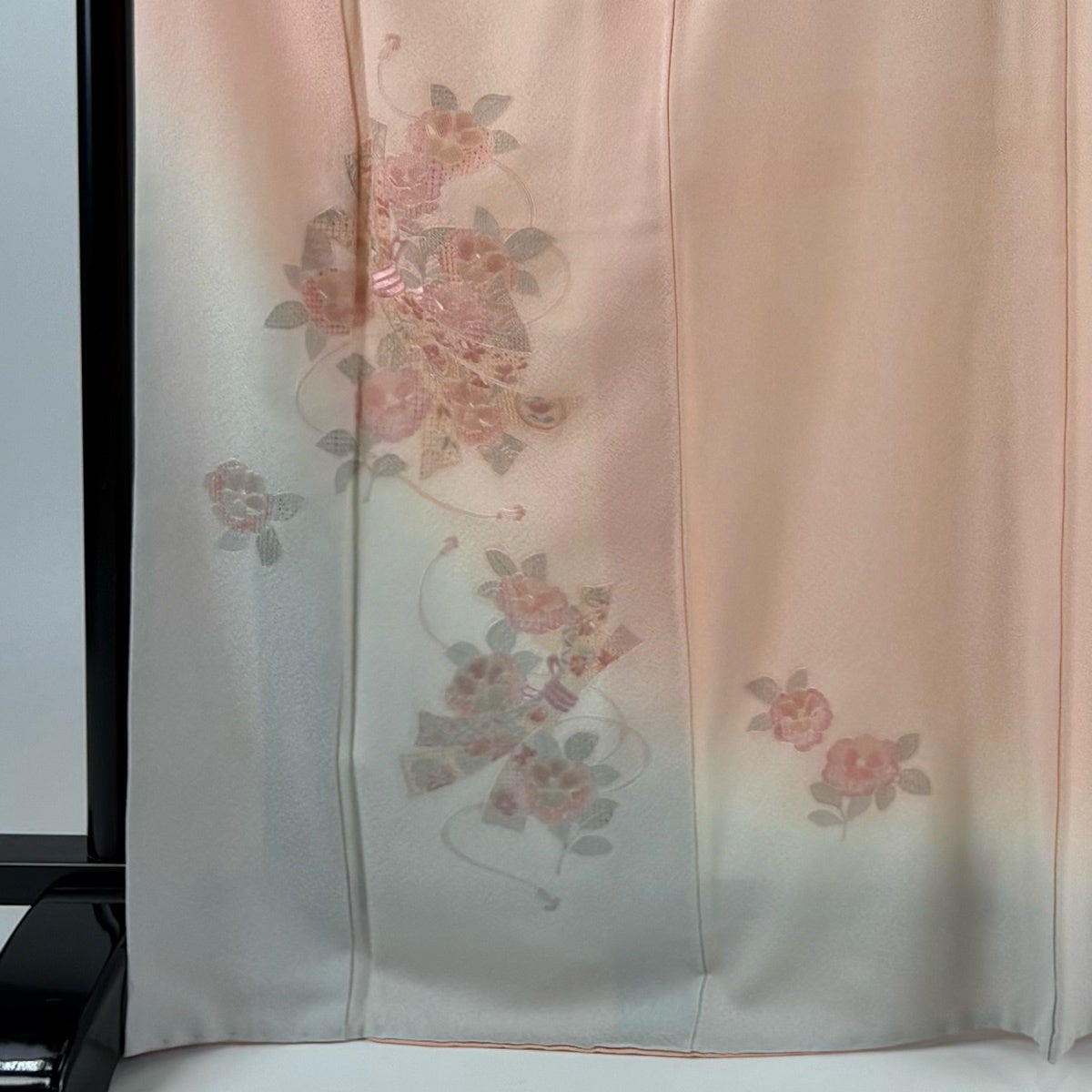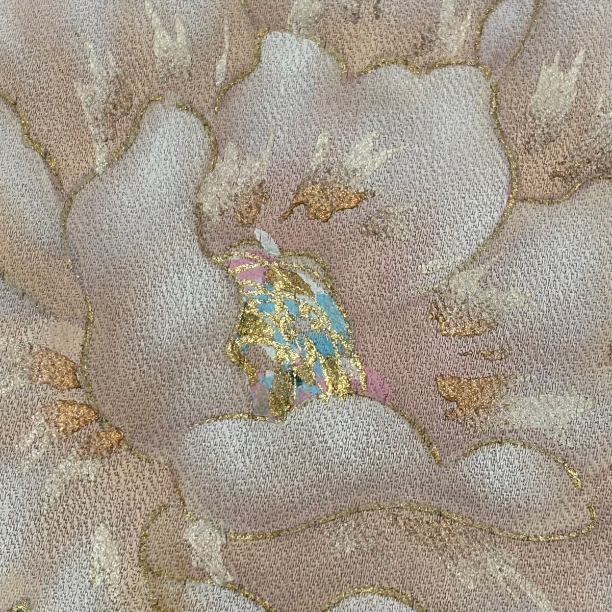 訪問着 身丈163.5cm 裄丈65cm M 袷 花籠 霞 刺繍 金彩 薄ピンク 正絹 秀品 一つ紋