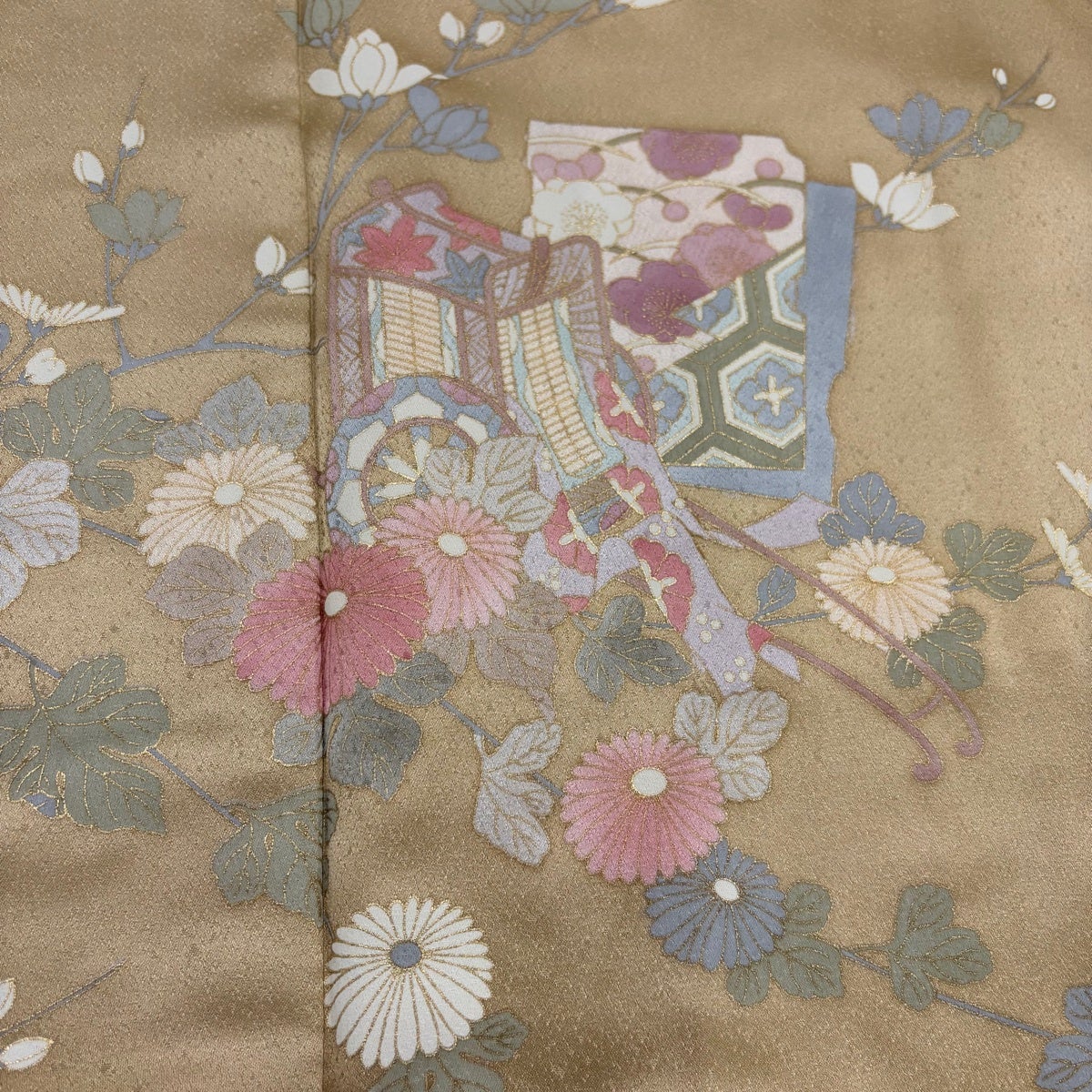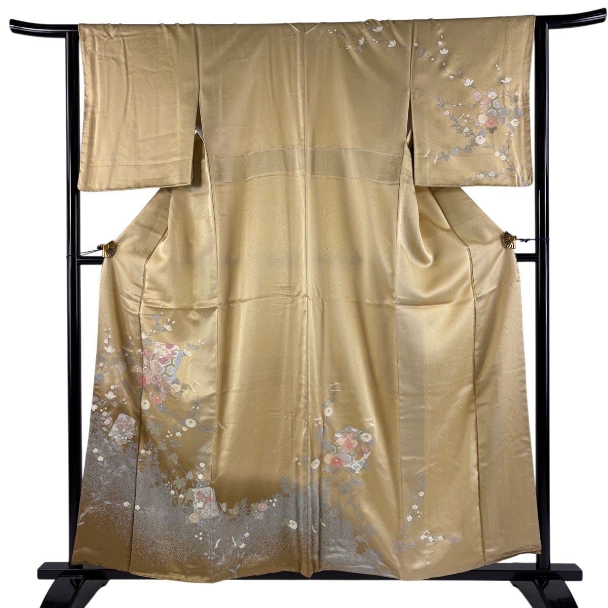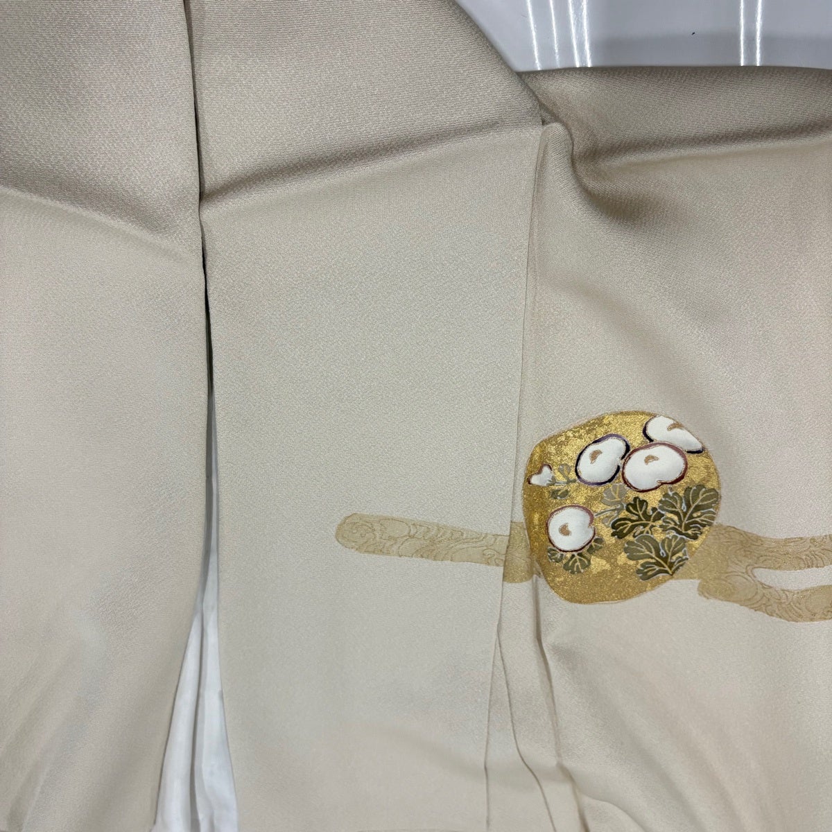 訪問着 身丈160cm 裄丈63.5cm S 袷 松竹梅 菊 金彩 ピンクベージュ 正絹 秀品
