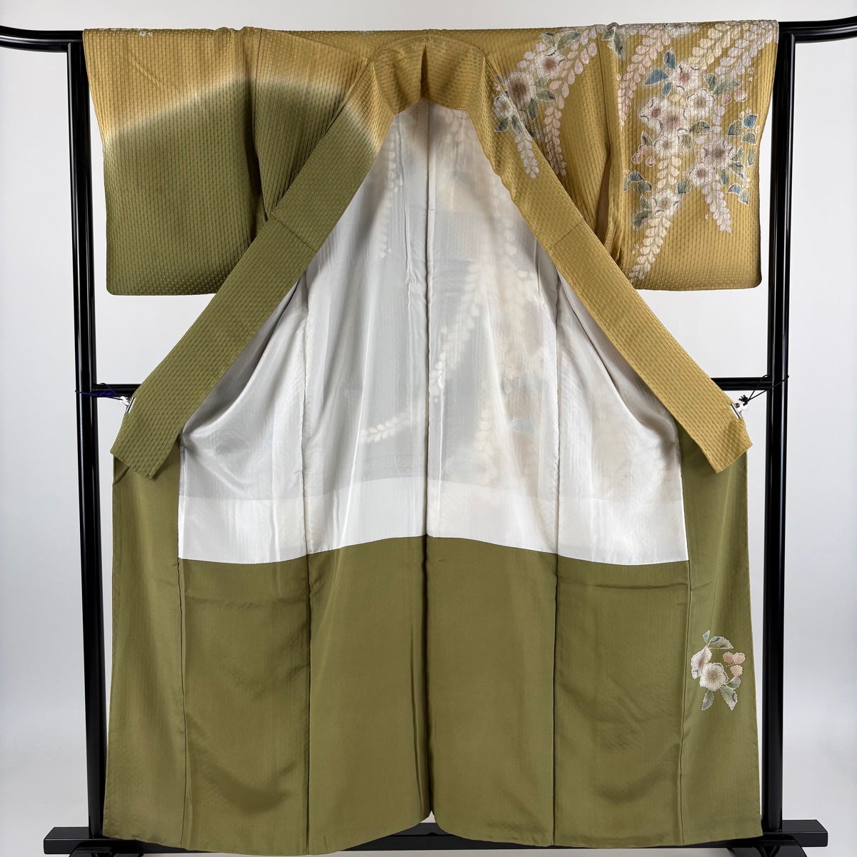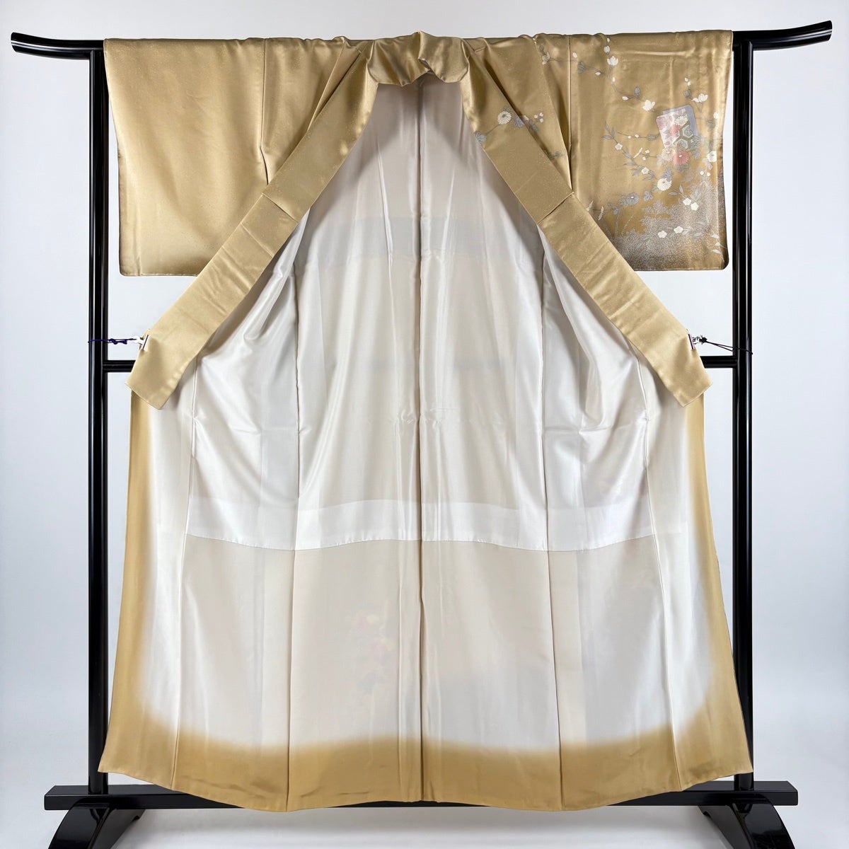 【美品】 付下げ 身丈163.5cm 裄丈66cm M 袷 菊 梅 金彩 ぼかし 黄土色 正絹 秀品