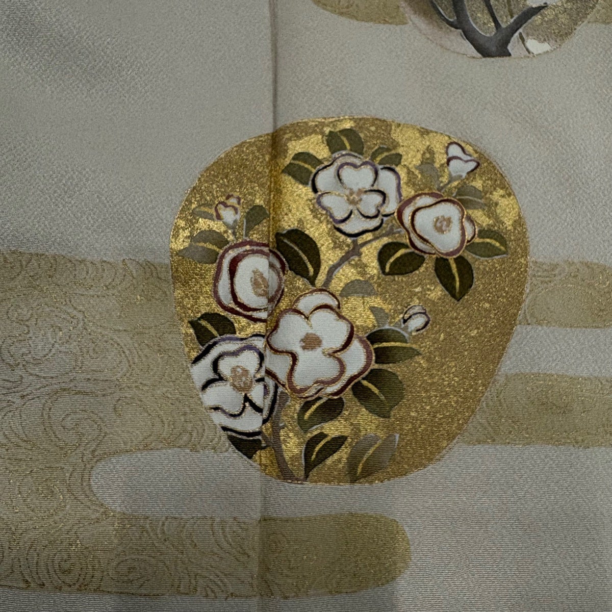 訪問着 身丈164.5cm 裄丈69cm L 袷 箔散らし シルエット 金銀糸 金銀彩 灰色 正絹 秀品