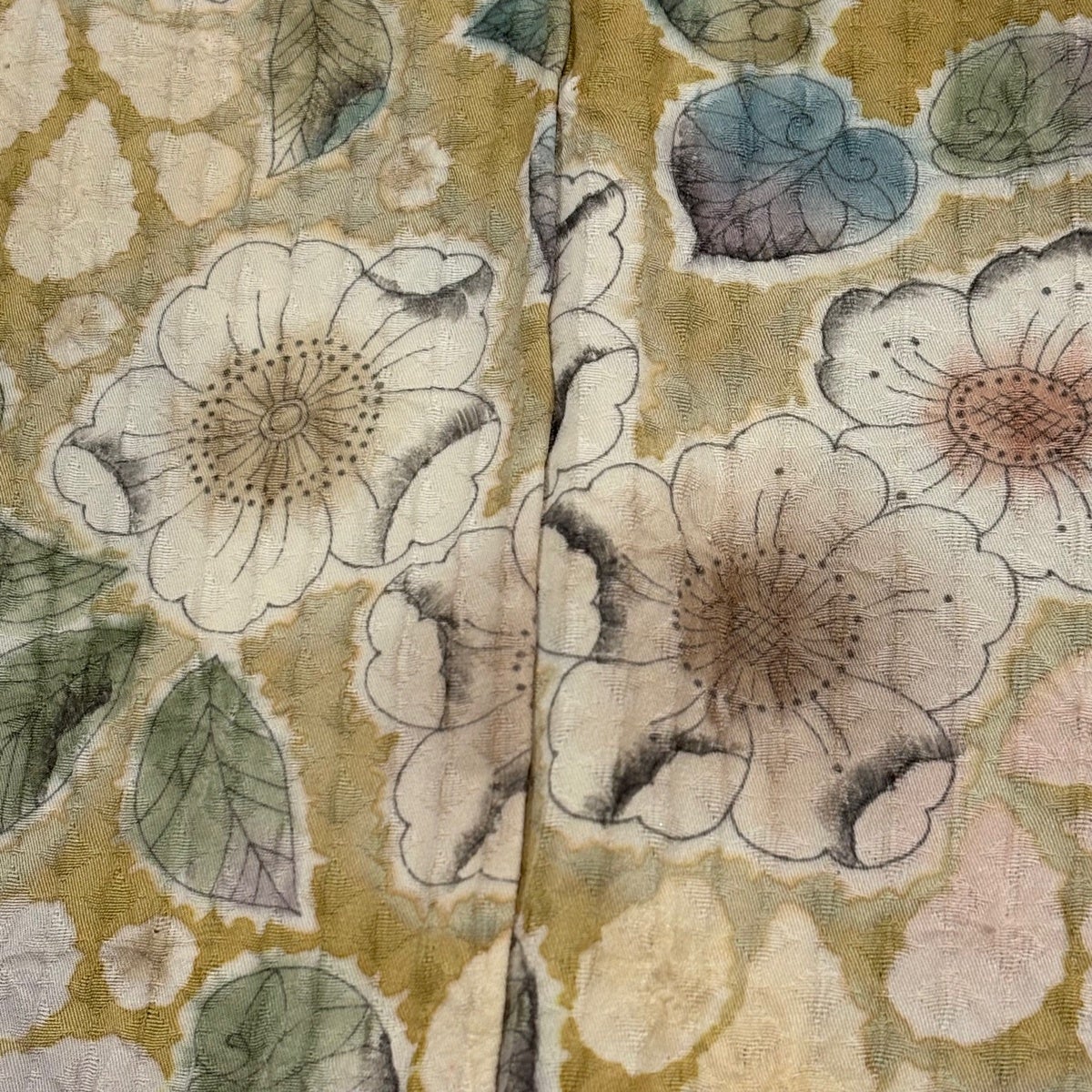 訪問着 身丈163cm 裄丈65cm M 袷 花唐草 有職文様 染め分け ぼかし 薄茶色 正絹 秀品