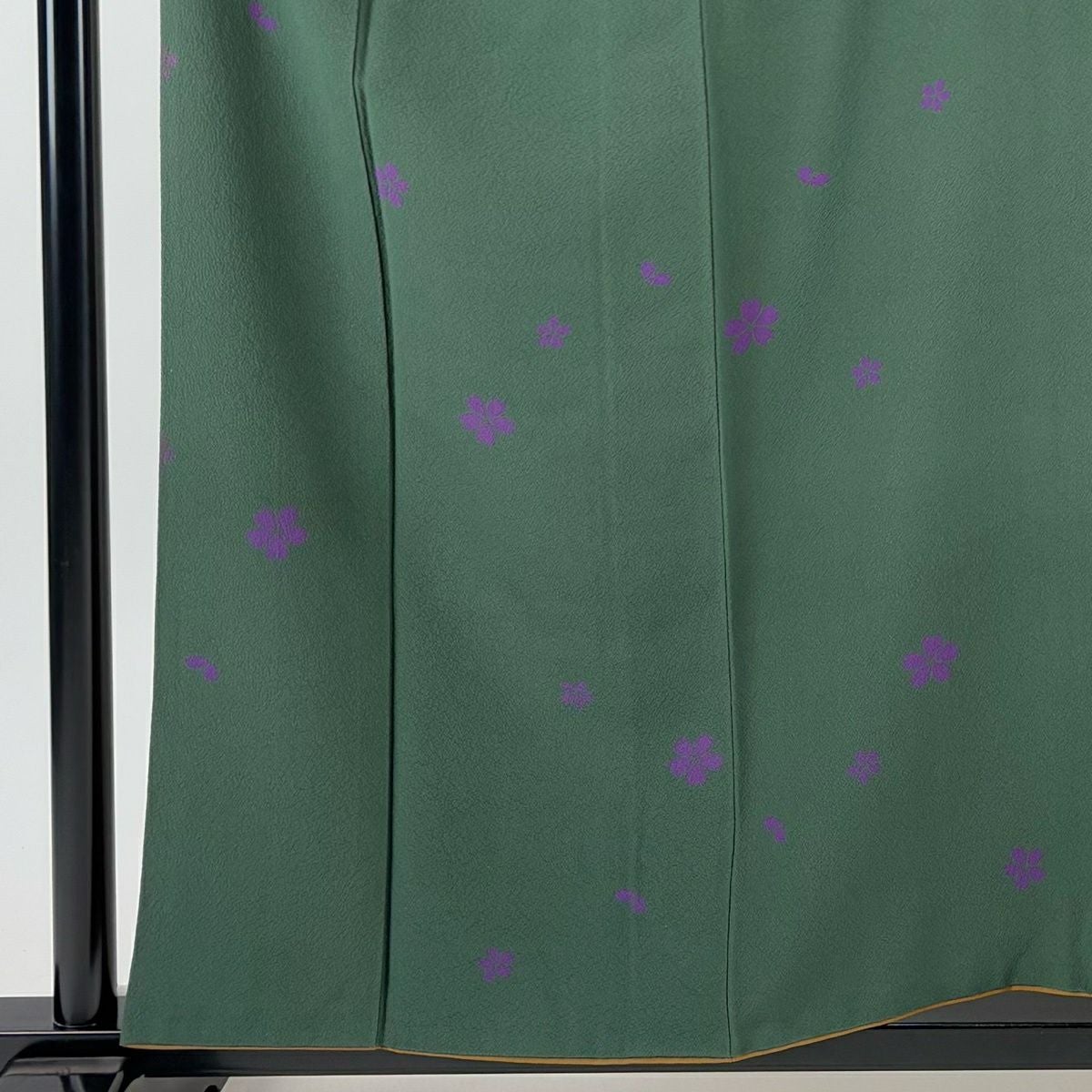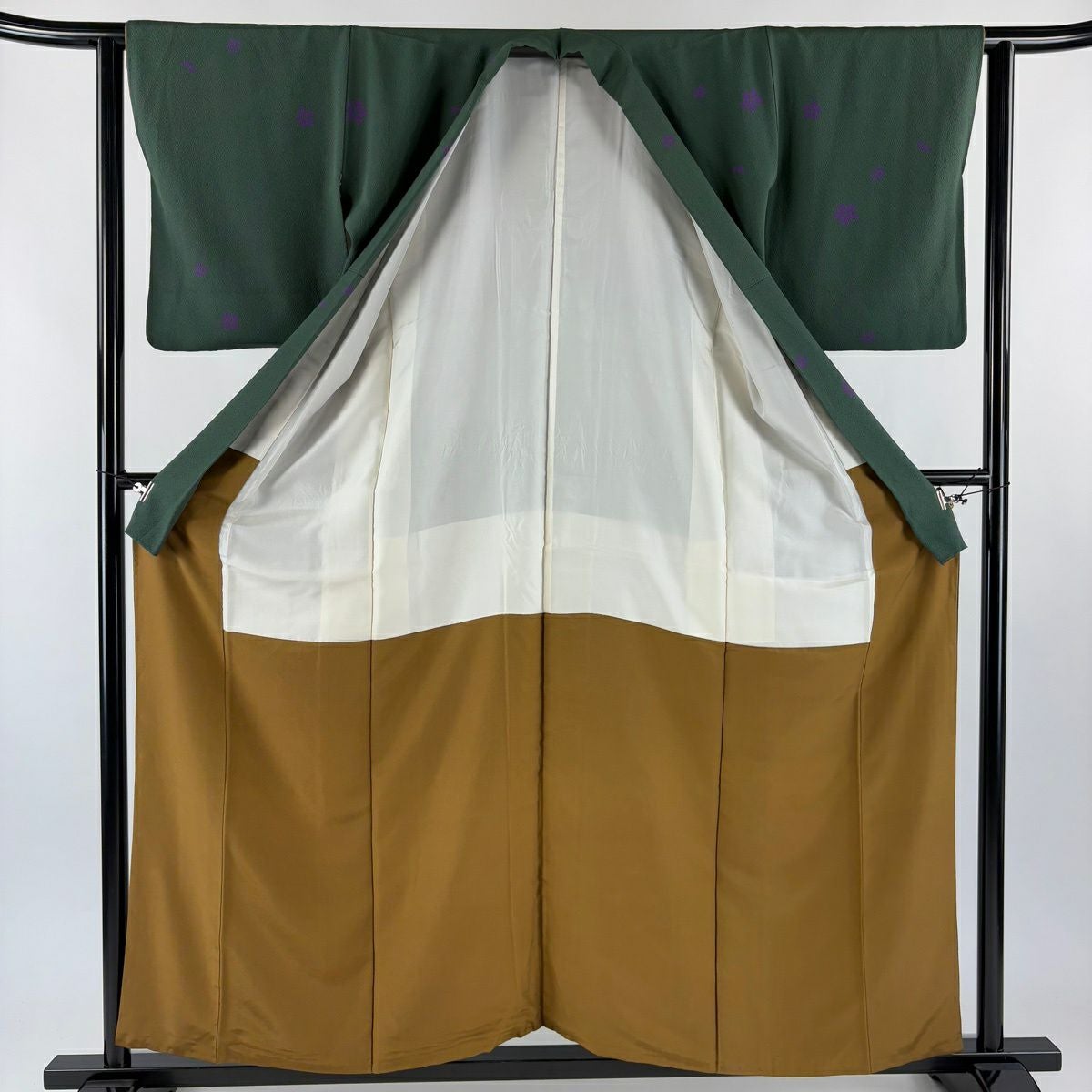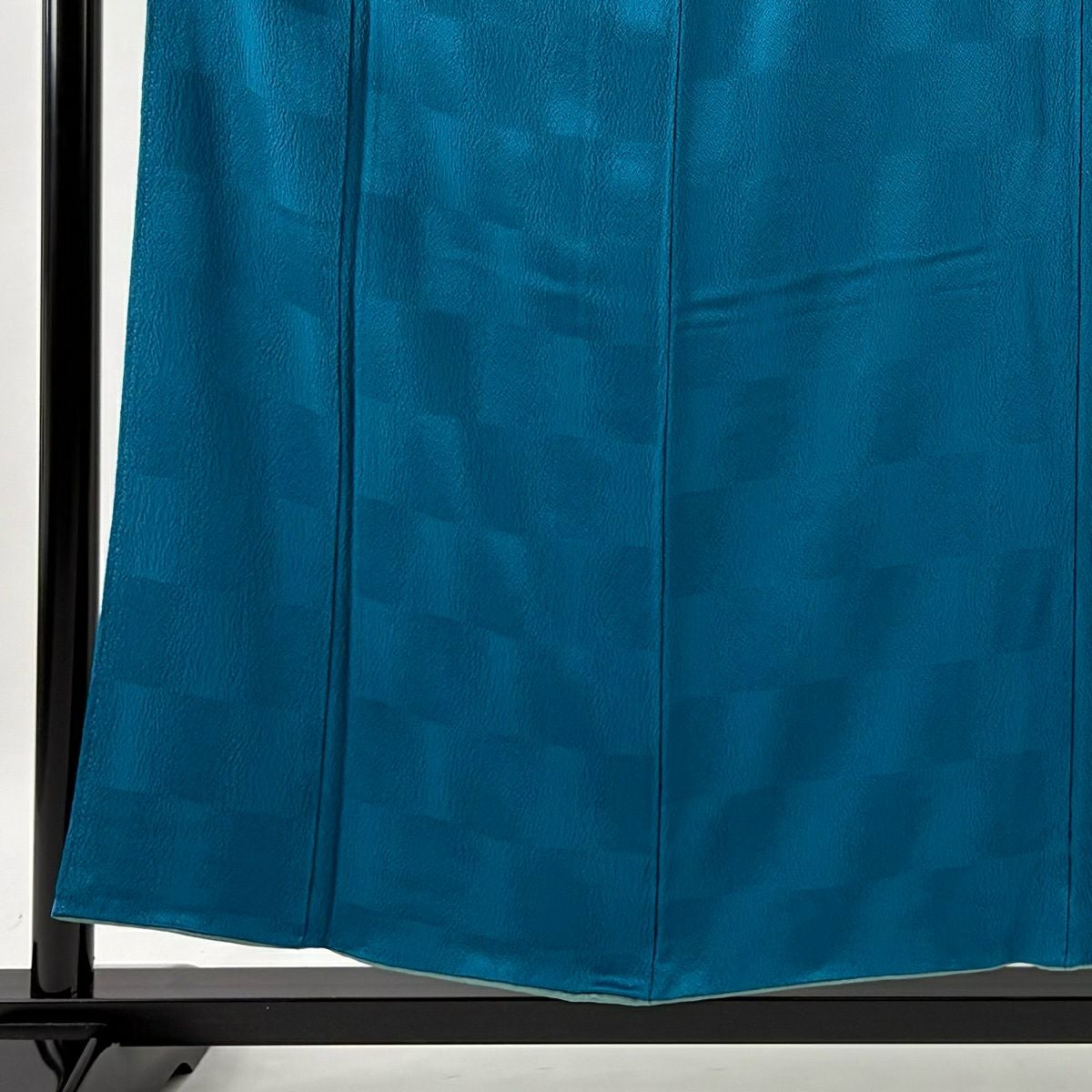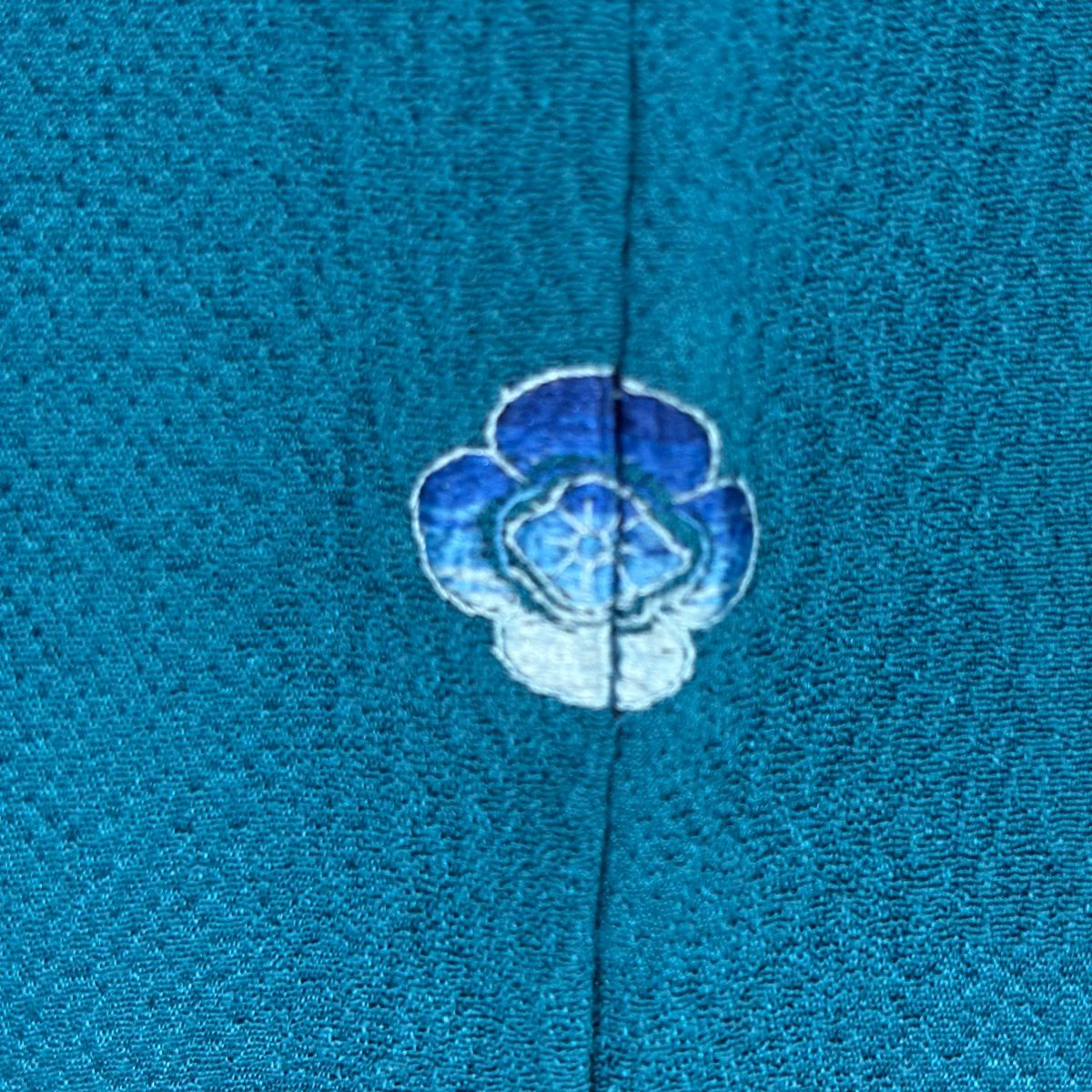 【美品】 道行 身丈93.5cm 裄丈67.5cm L 和装コート 角衿 鈴乃屋 地紋 ぼかし 深緑 正絹 秀品