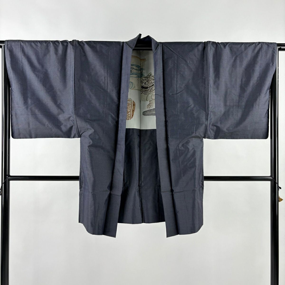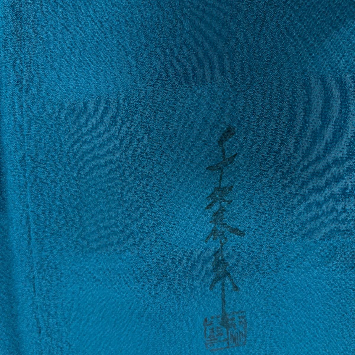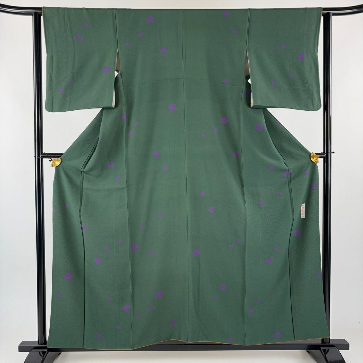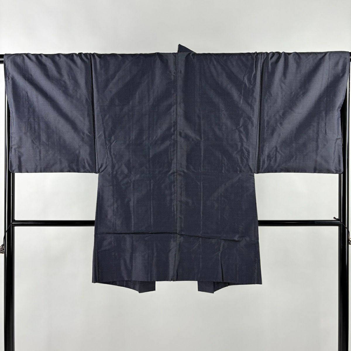 【美品】 道行 身丈93.5cm 裄丈67.5cm L 和装コート 角衿 鈴乃屋 地紋 ぼかし 深緑 正絹 秀品