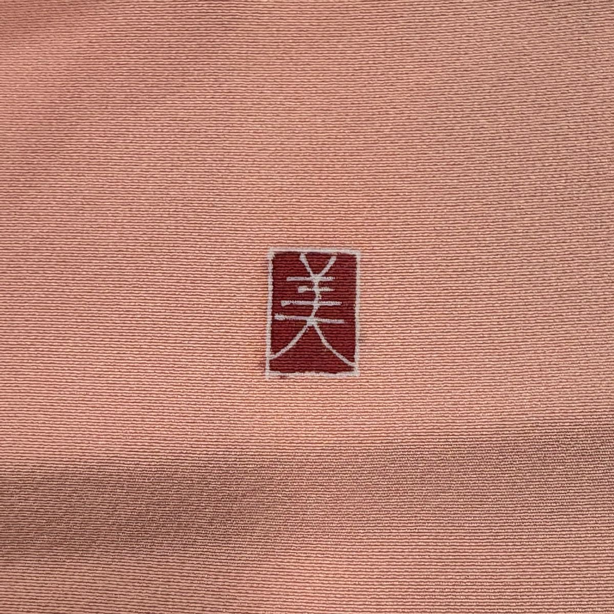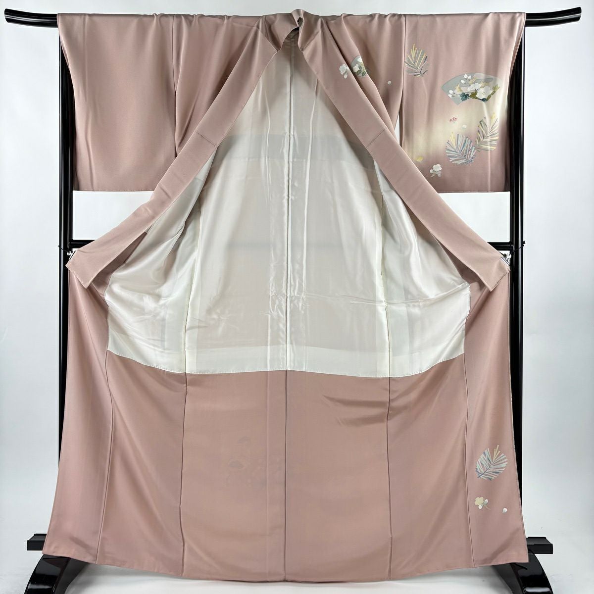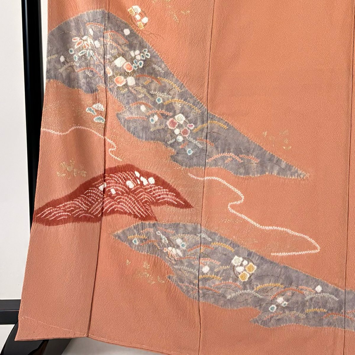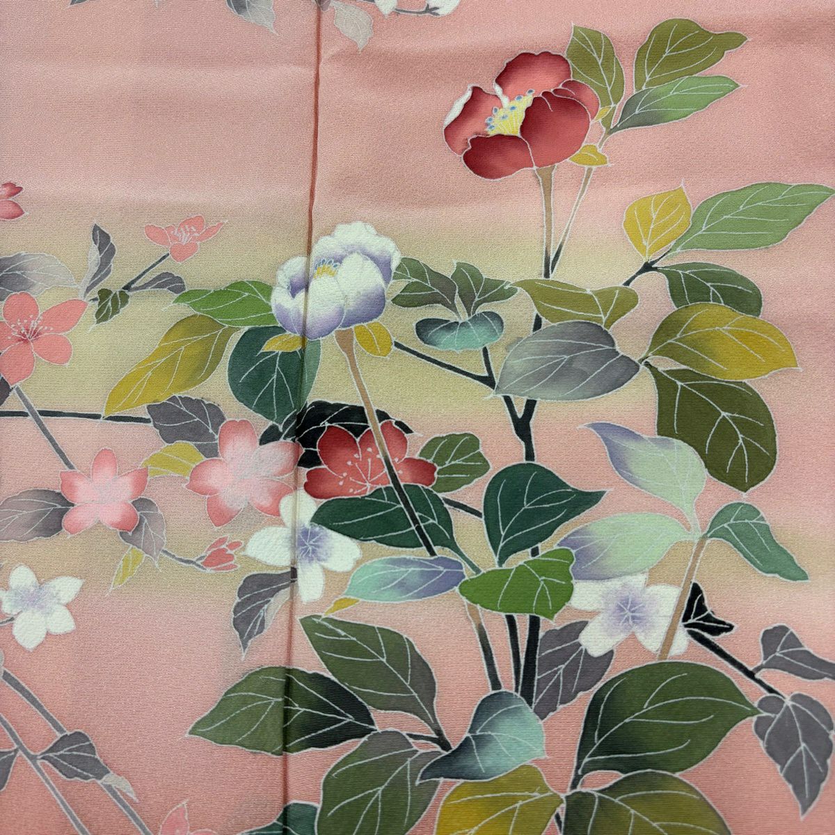 訪問着 身丈156.5cm 裄丈65.5cm M 袷 落款あり 枝花 草花 ぼかし サーモンピンク 正絹 秀品