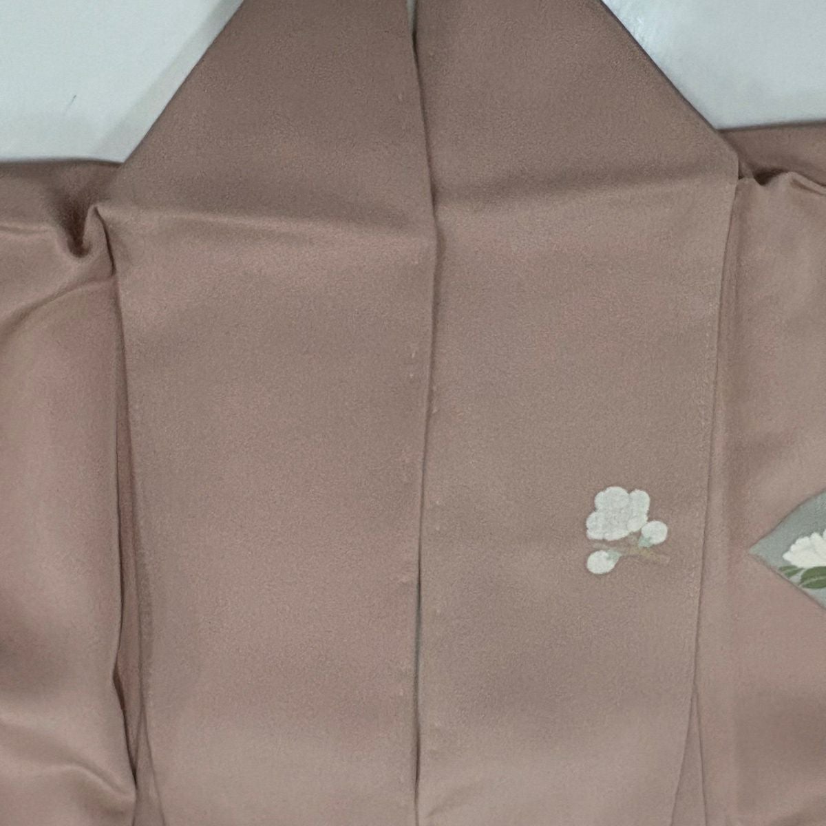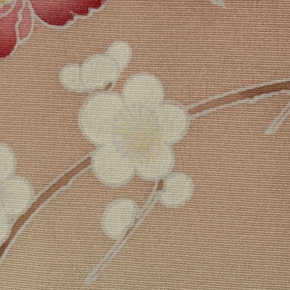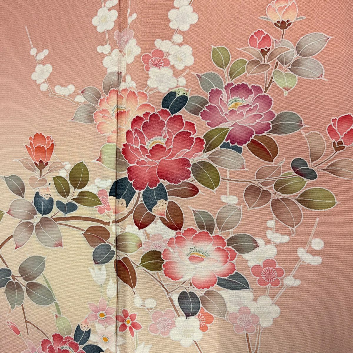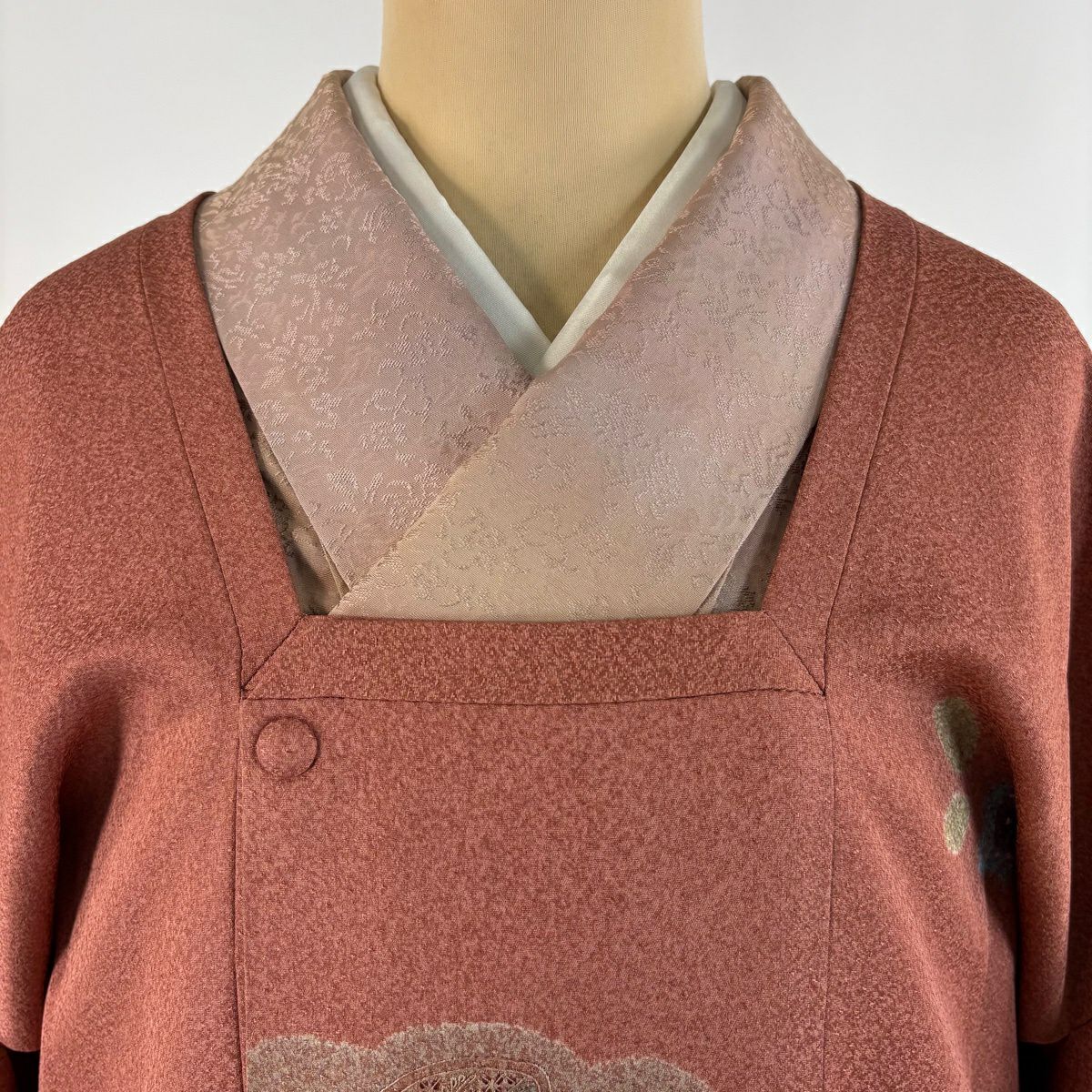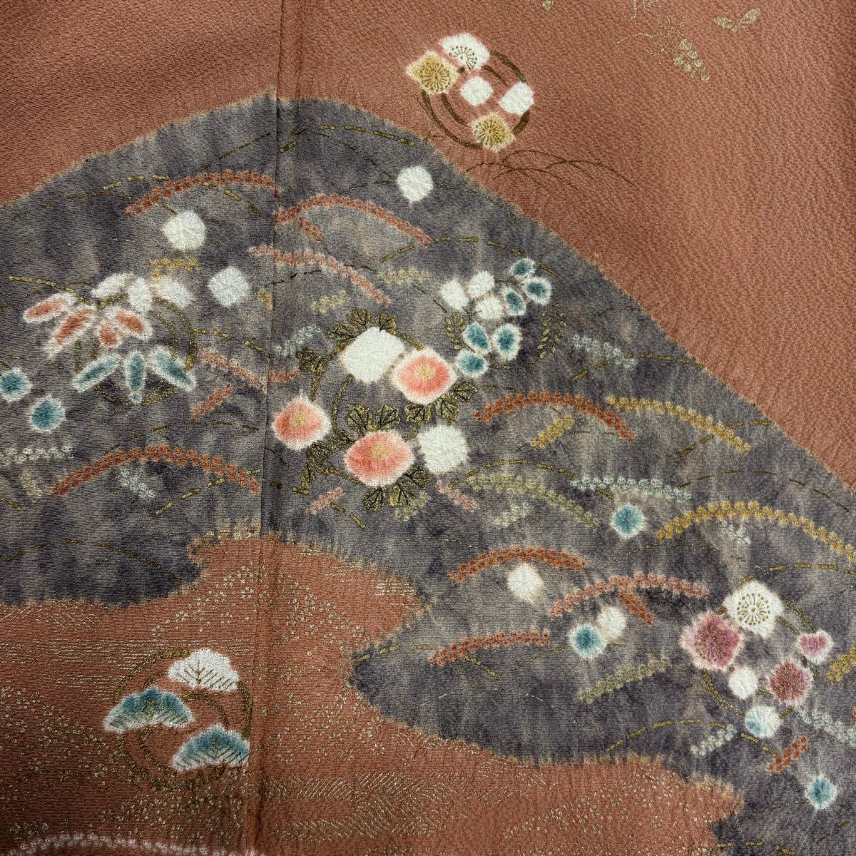訪問着 身丈156.5cm 裄丈65.5cm M 袷 落款あり 枝花 草花 ぼかし サーモンピンク 正絹 秀品