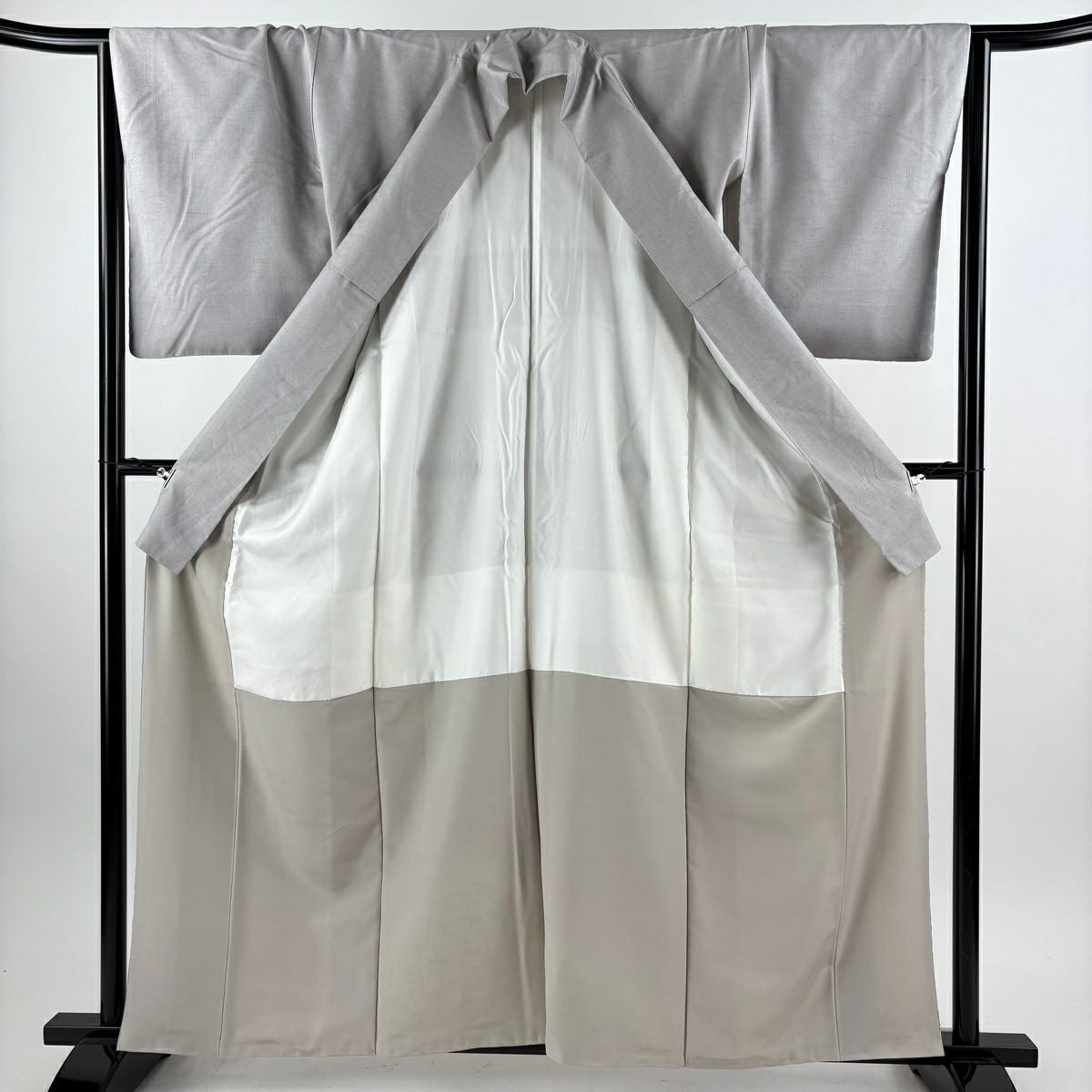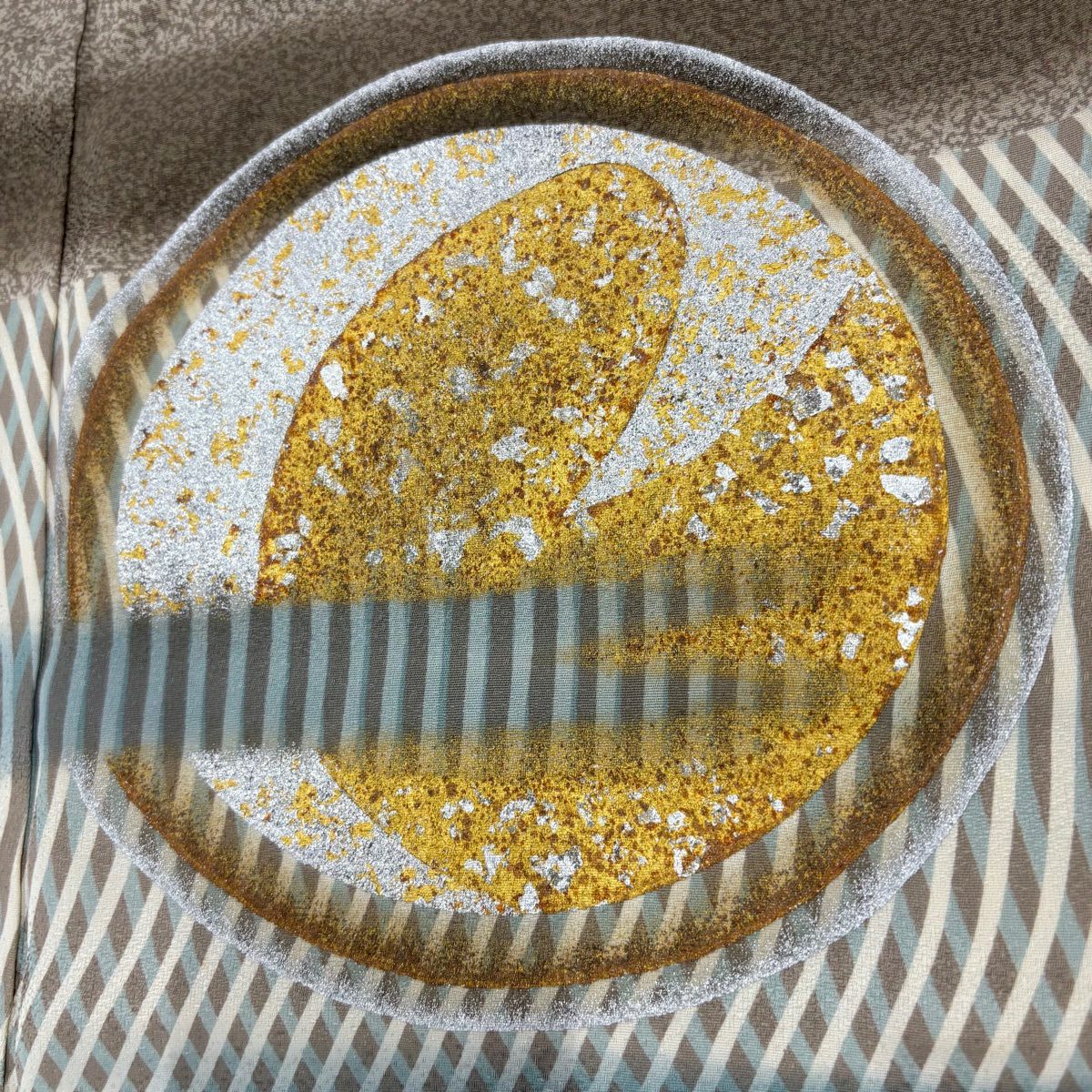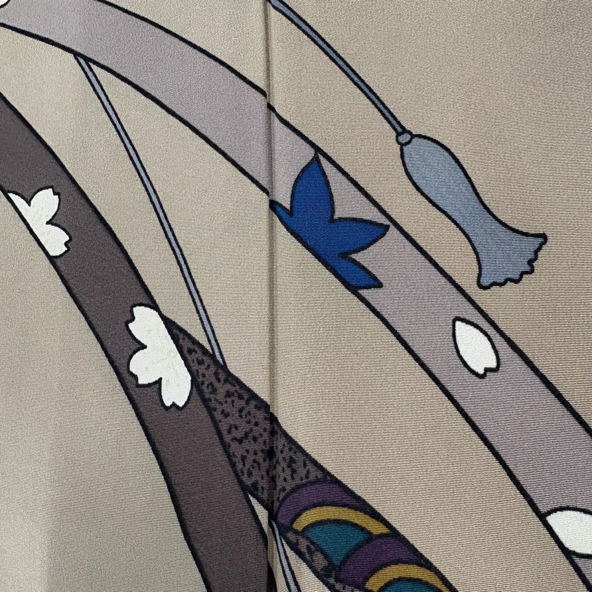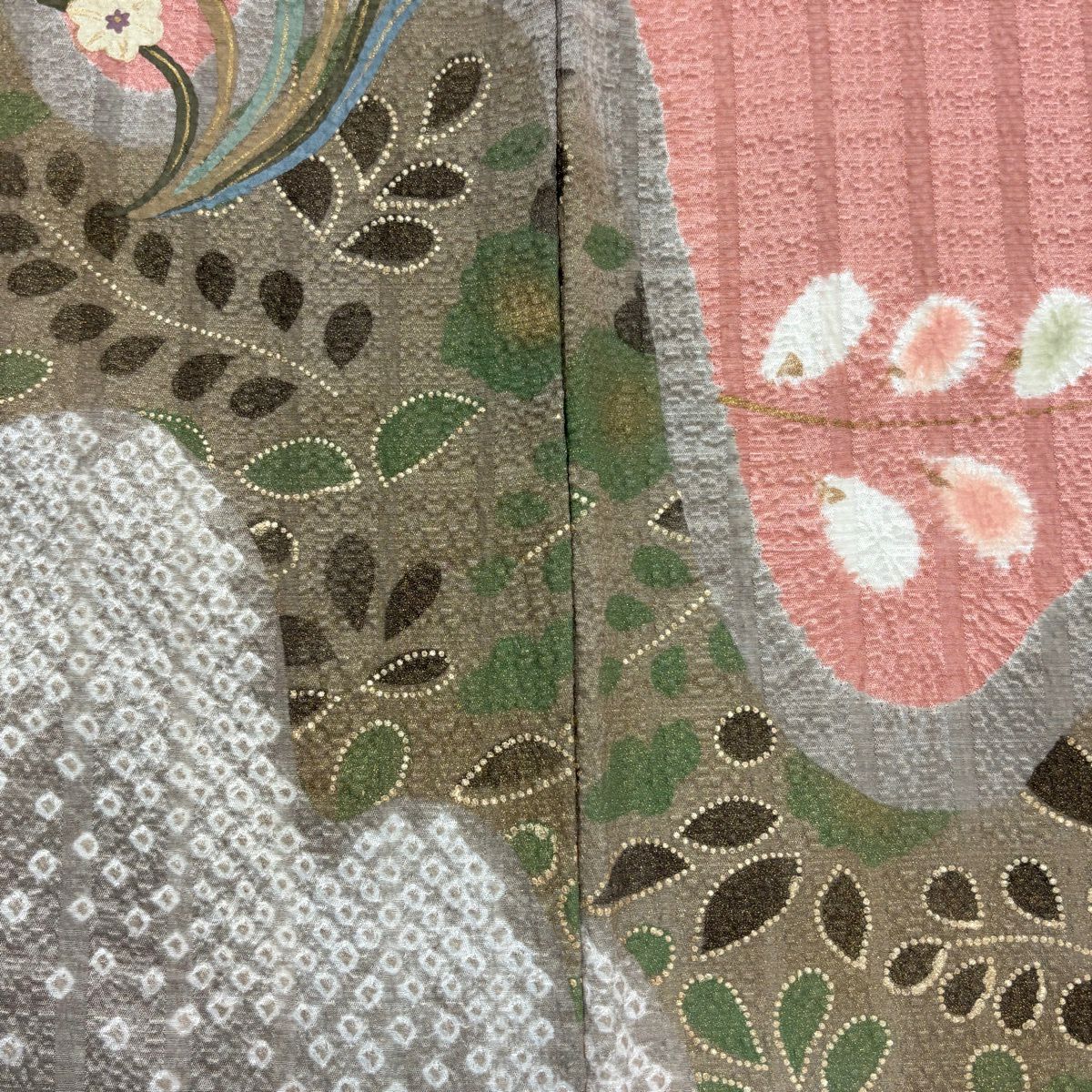 訪問着 身丈158.5cm 裄丈65cm M 袷 コシノヒロコ 落款あり 千鳥 若松 金銀彩 灰茶 正絹 秀品