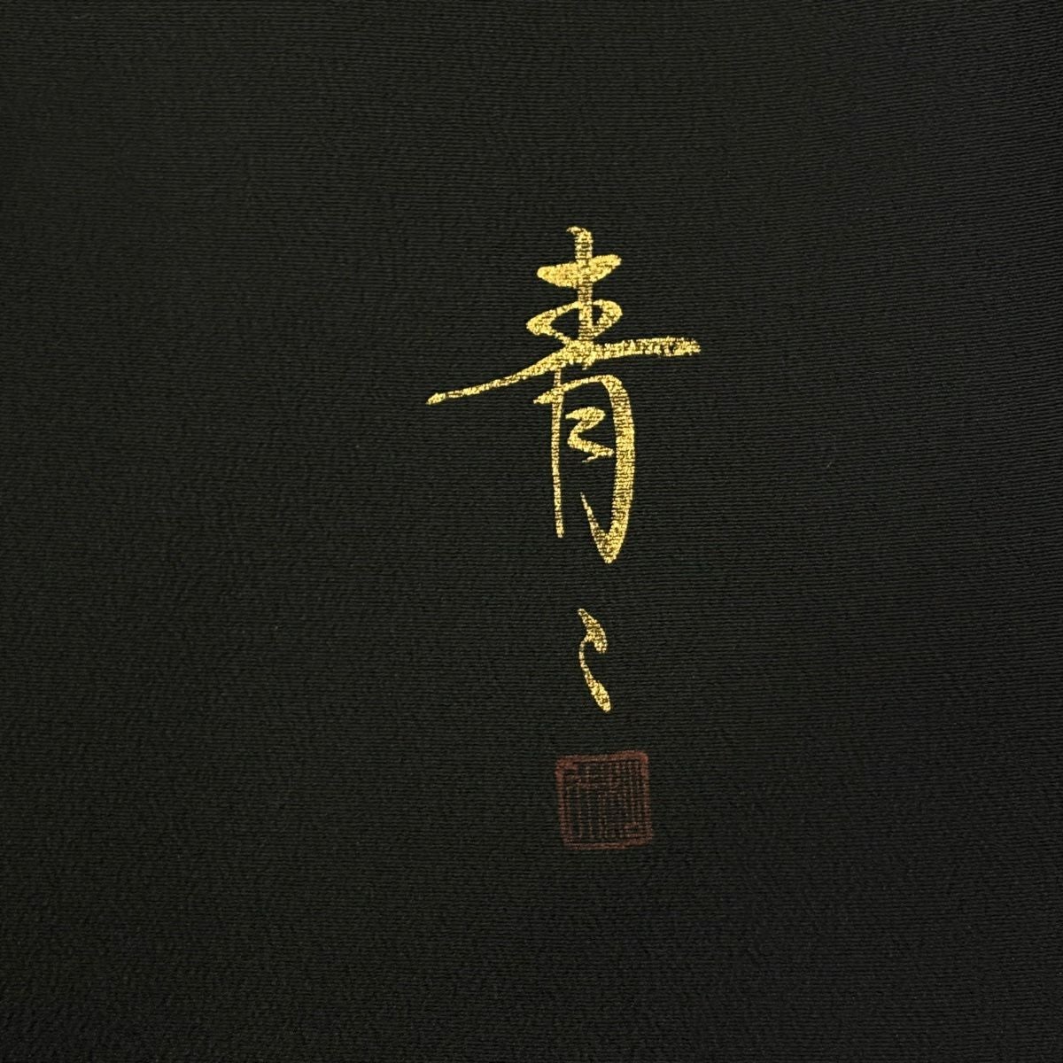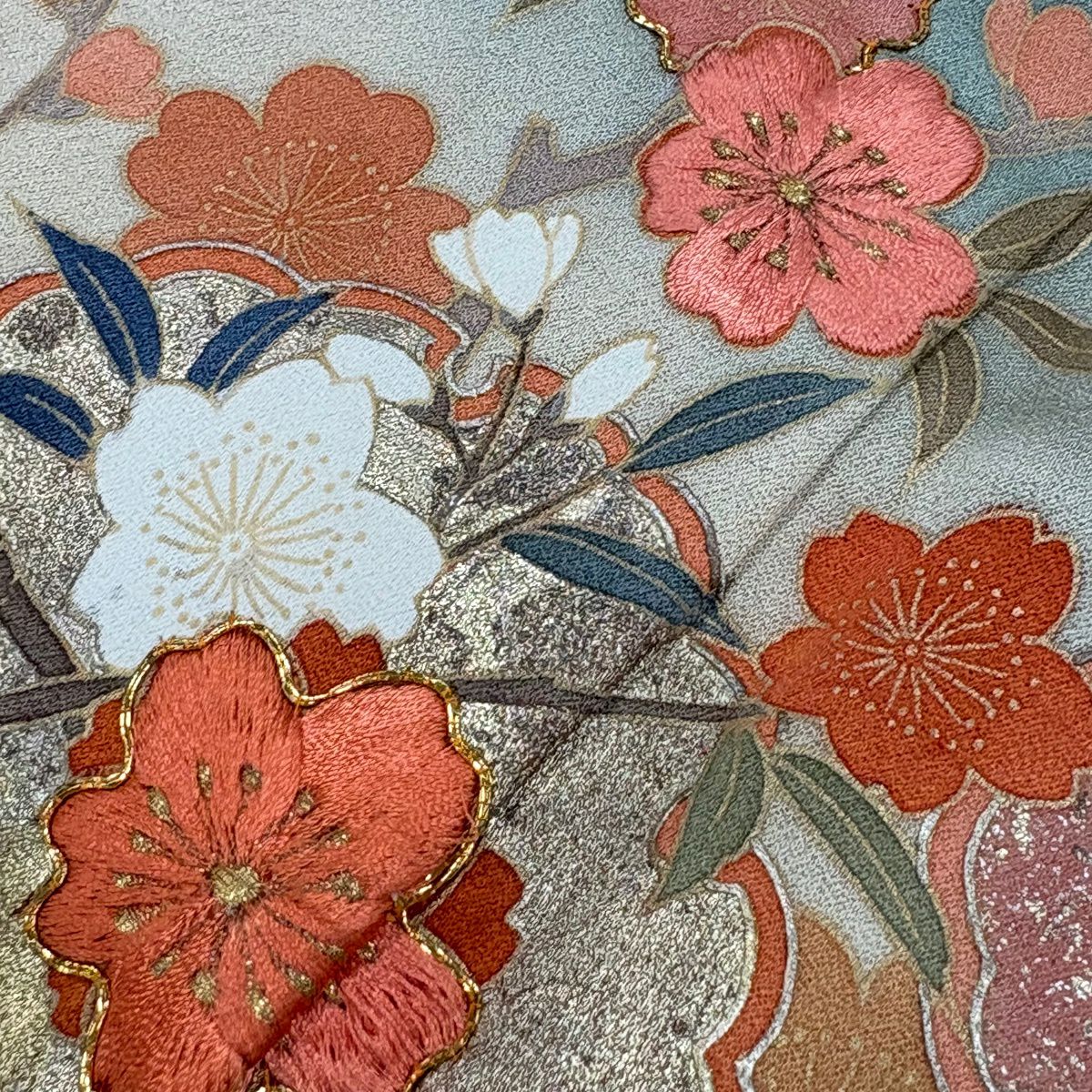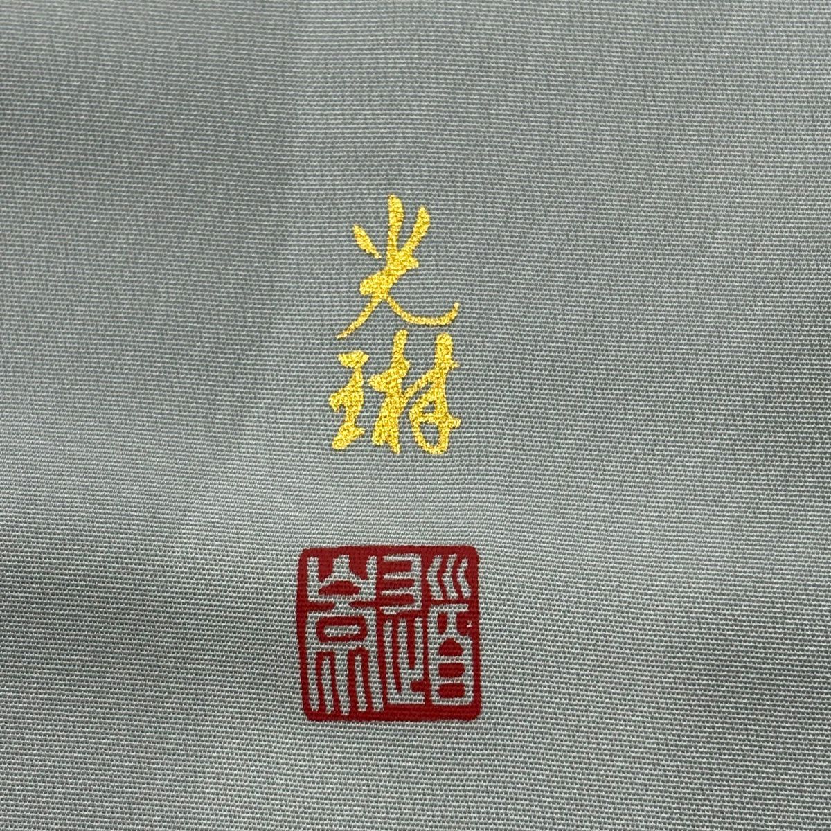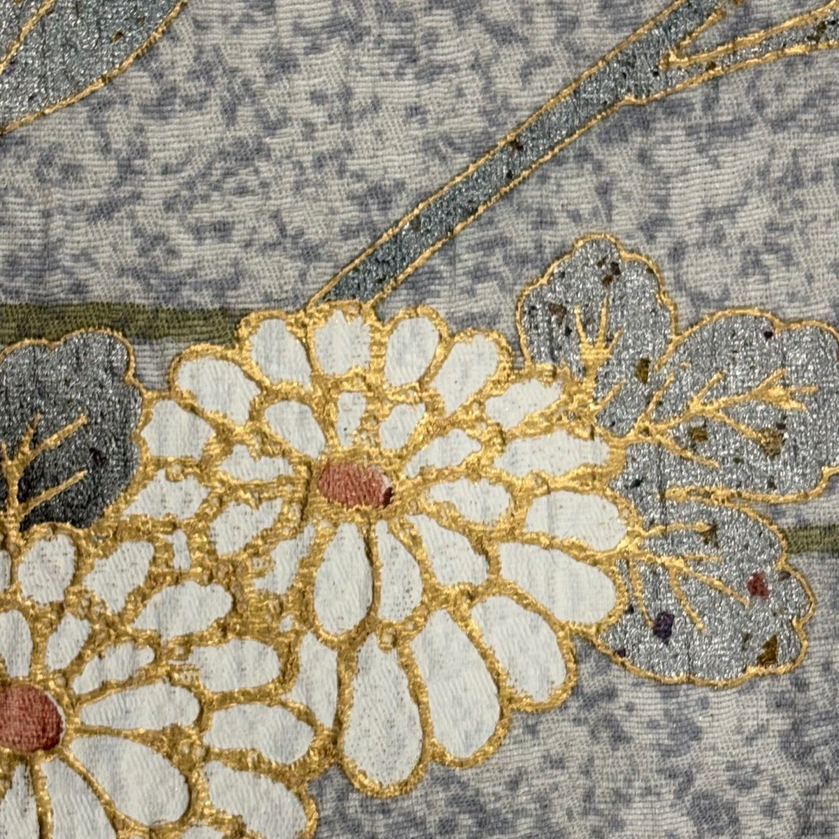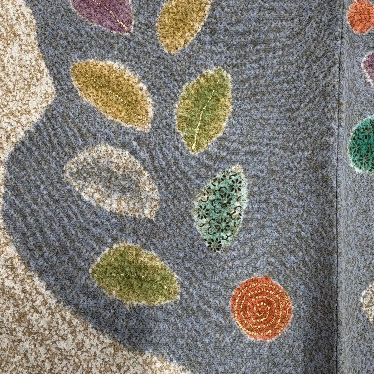 色留袖 身丈163.5cm 裄丈66cm M 袷 松尾光琳 落款あり 枝花 金彩 青灰色 正絹 秀品 一つ紋