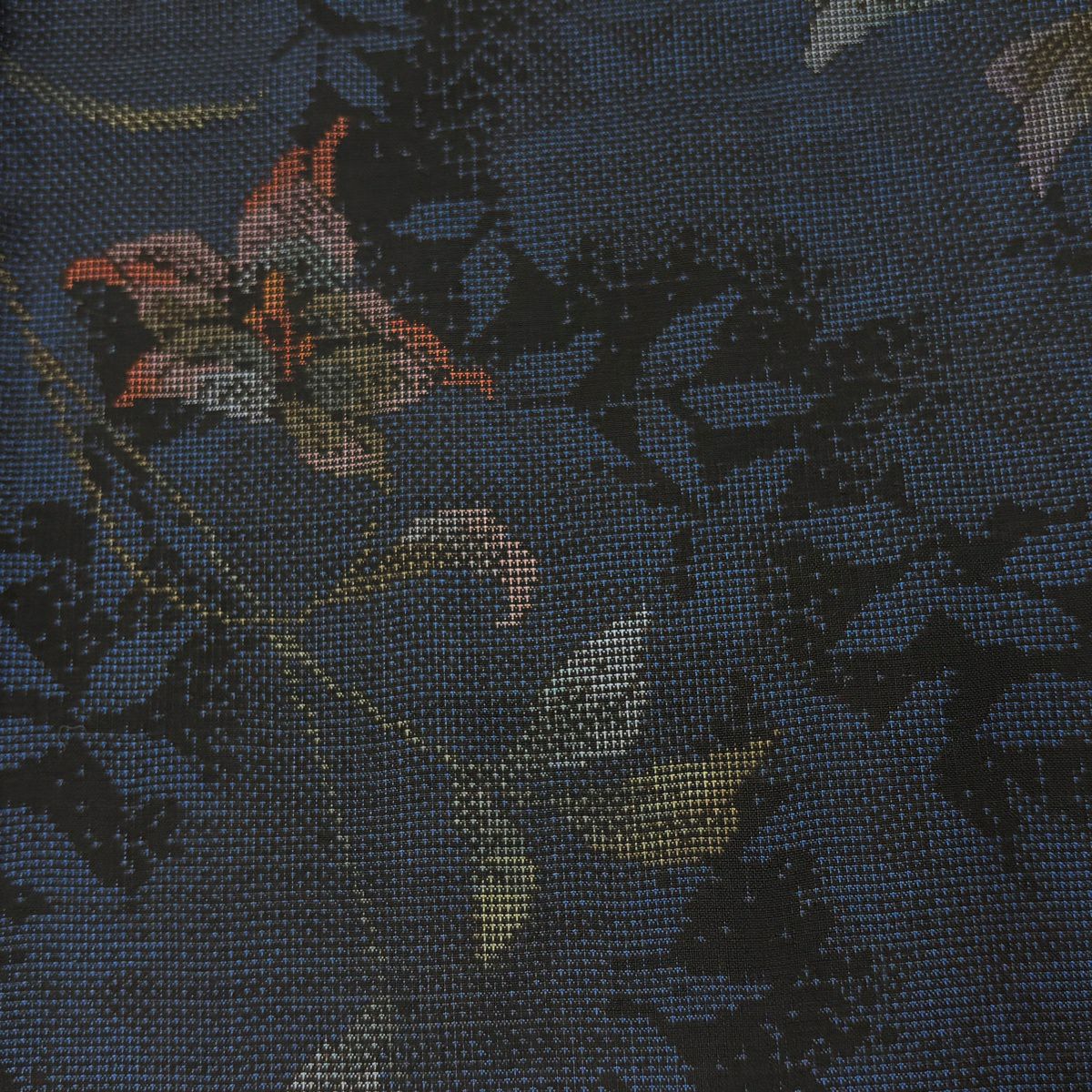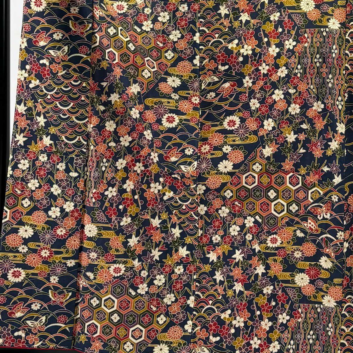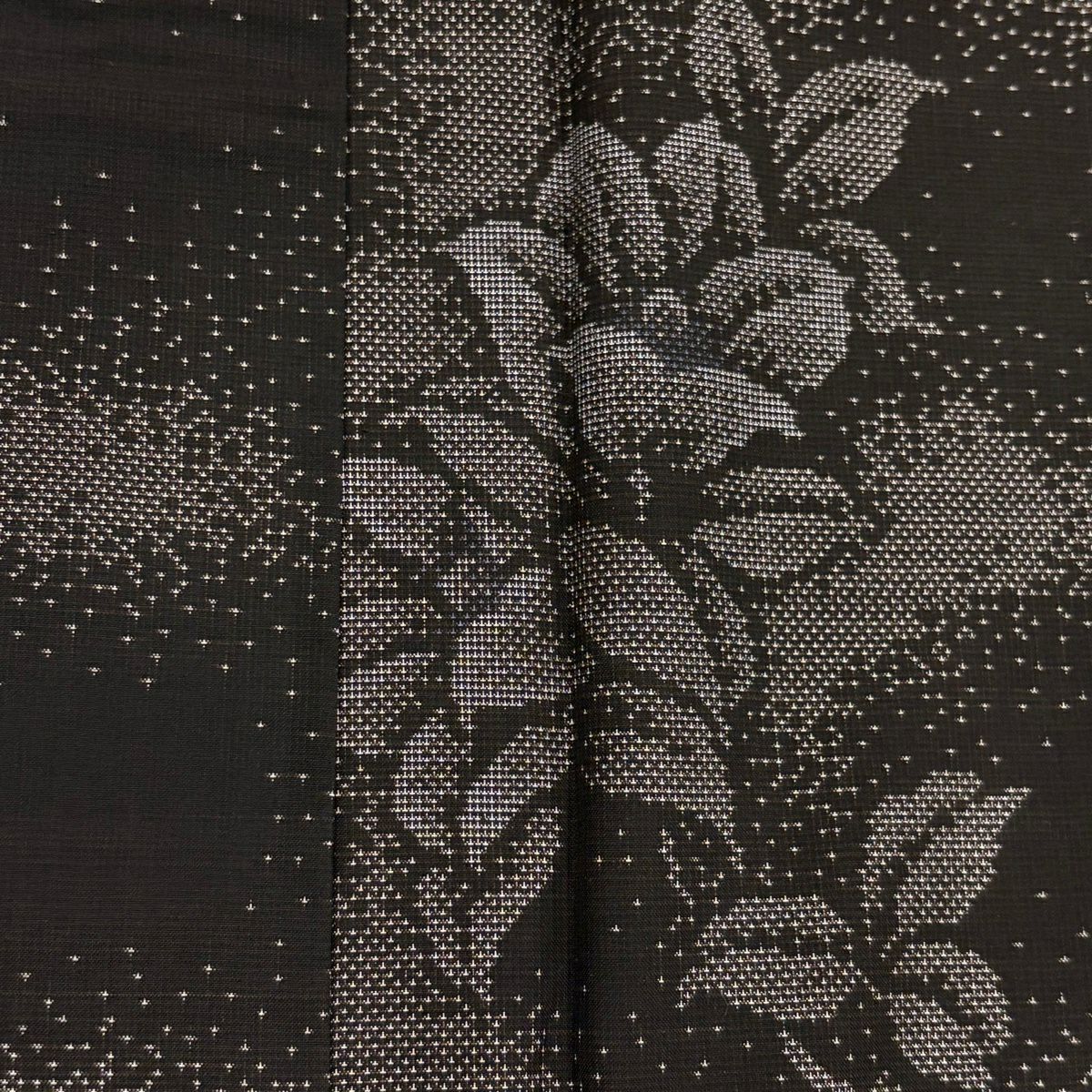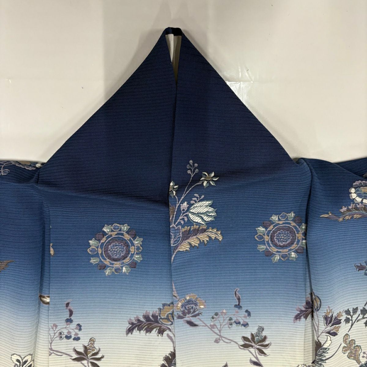 【美品】 大島紬 身丈163cm 裄丈65cm M 袷 純泥染 証紙あり 草花 シルエット 紺色 正絹 秀品