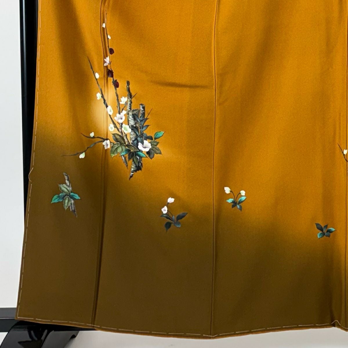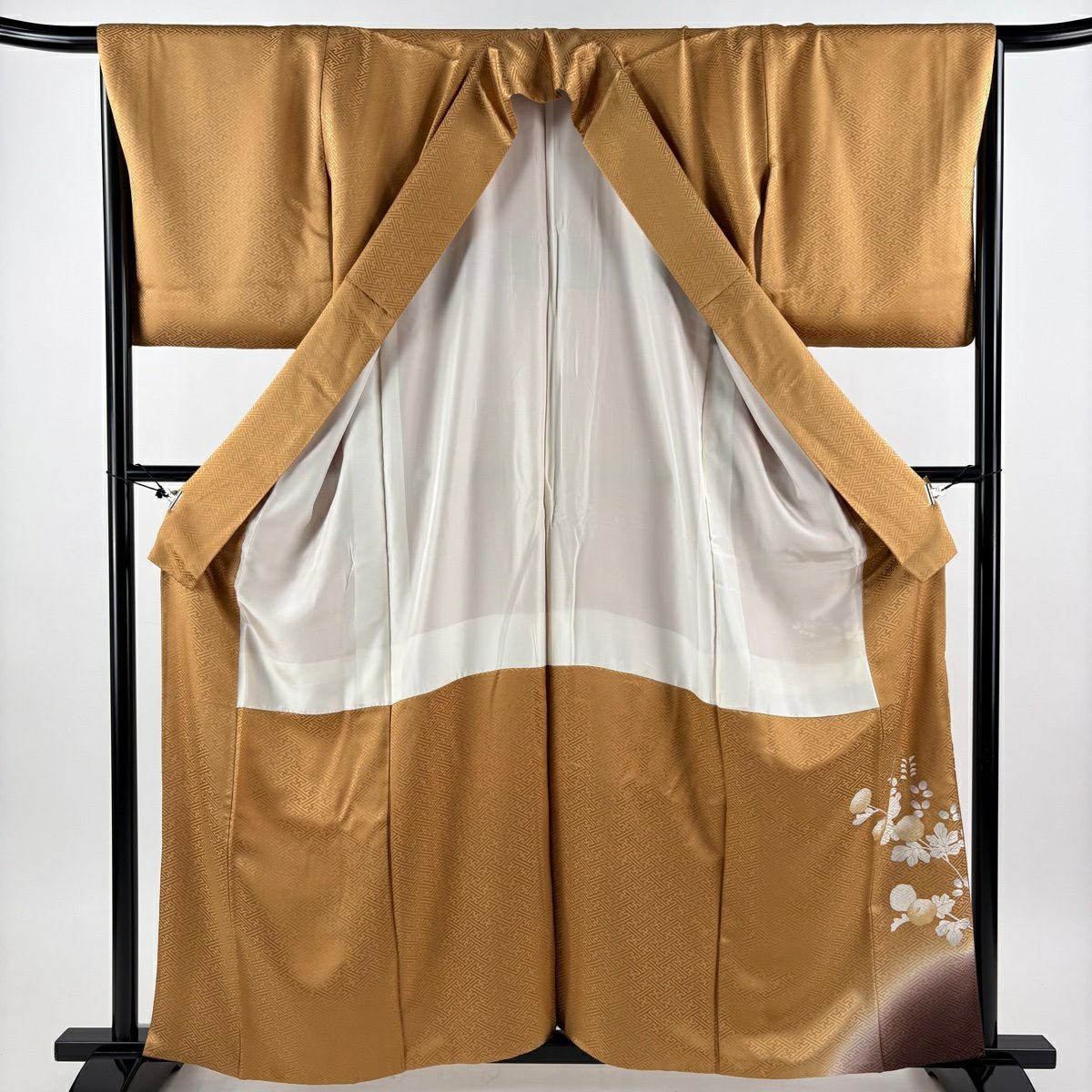 【美品】 付下げ 身丈161.5cm 裄丈67cm M 袷 枝花 草花 金銀彩 ぼかし 山吹茶色 正絹 秀品