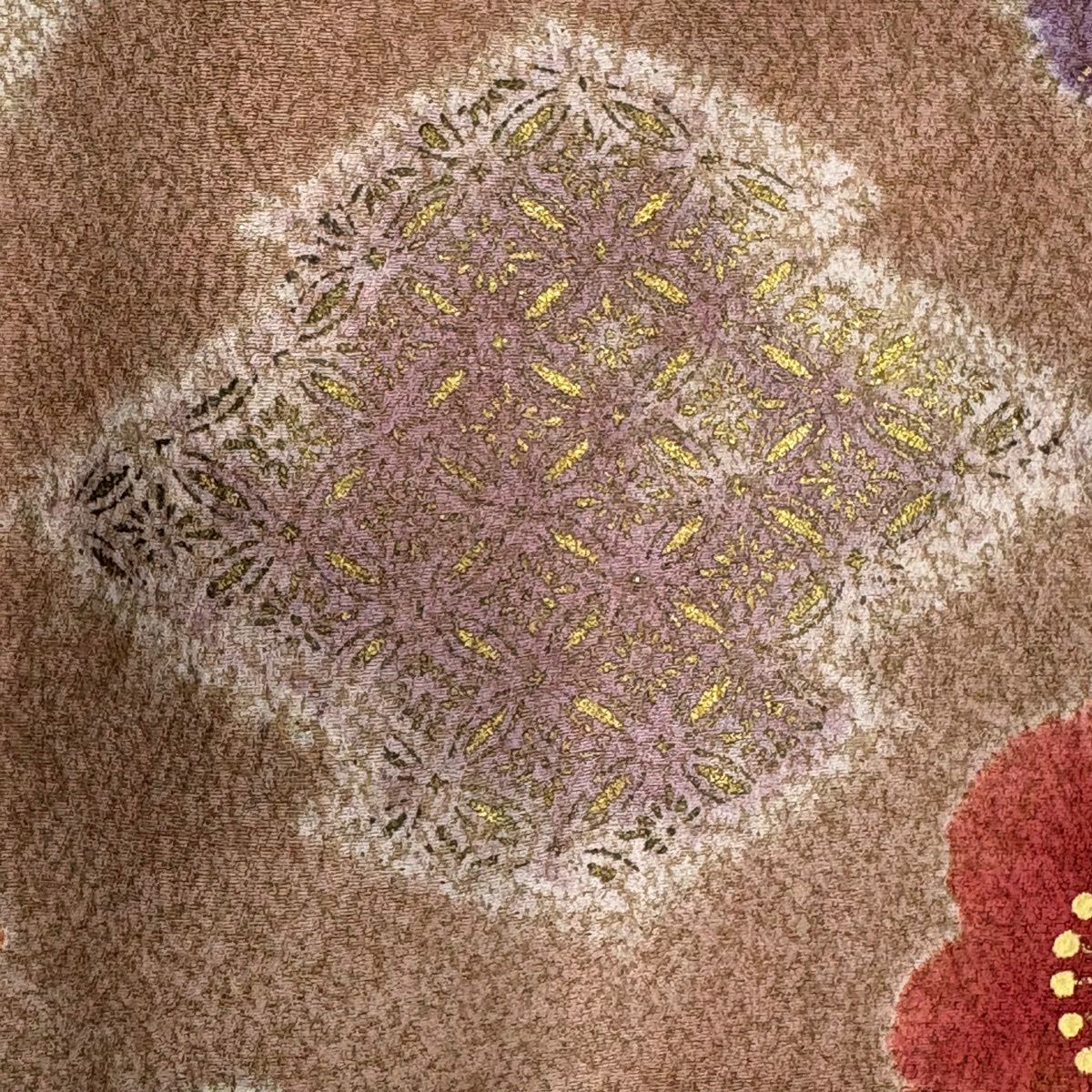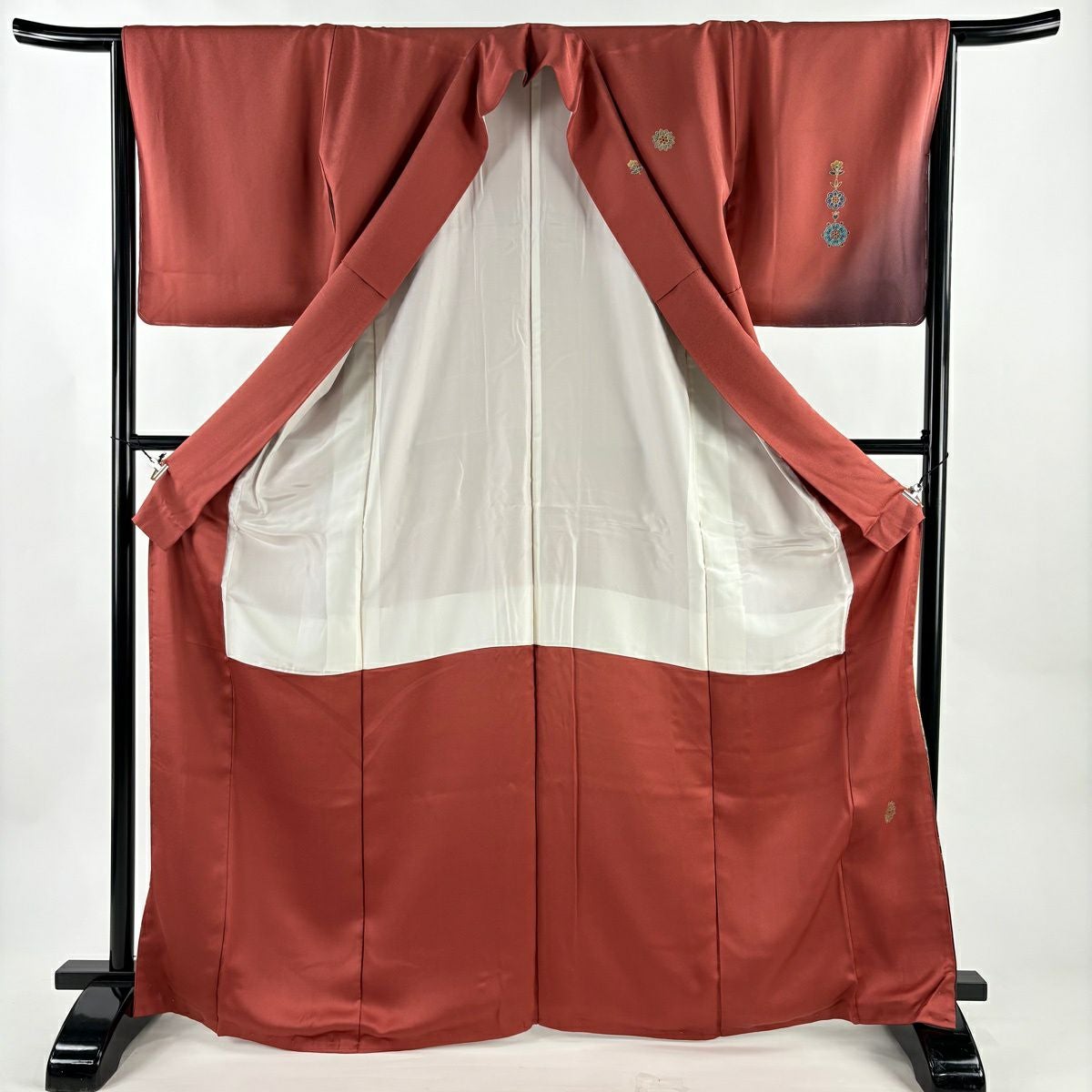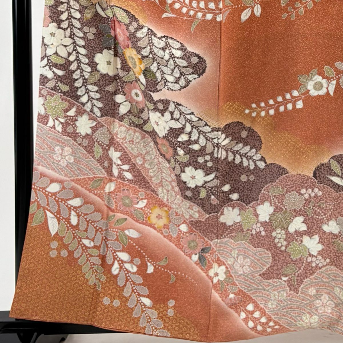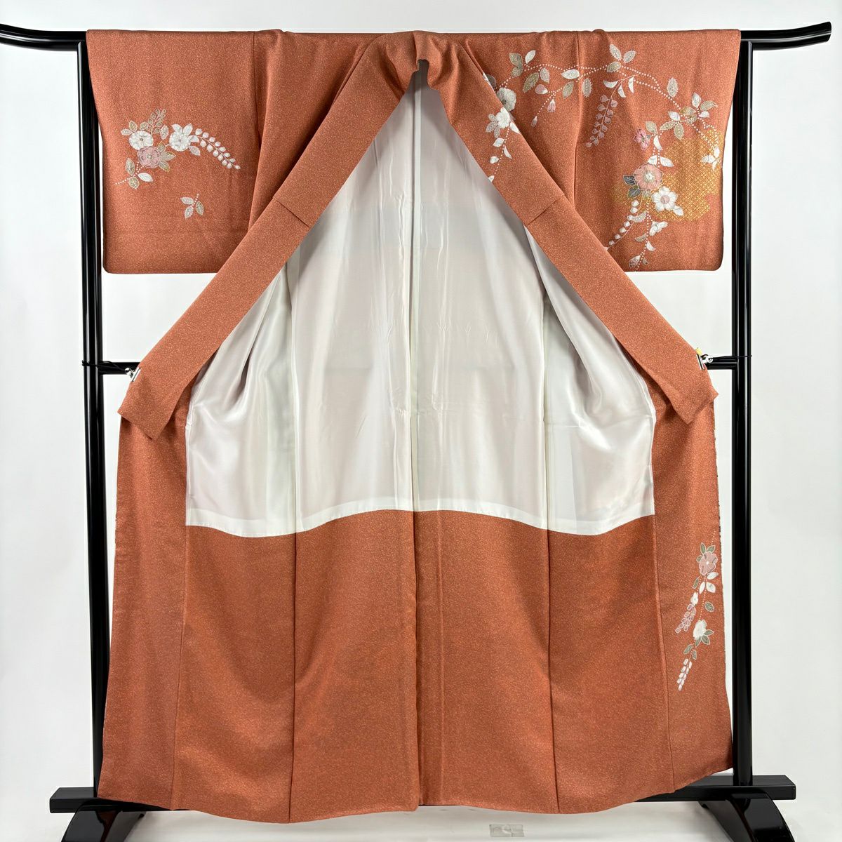 【美品】 付下げ 身丈169cm 裄丈65cm M 袷 華文 草花 金銀彩 ラインストーン 赤茶 正絹 秀品