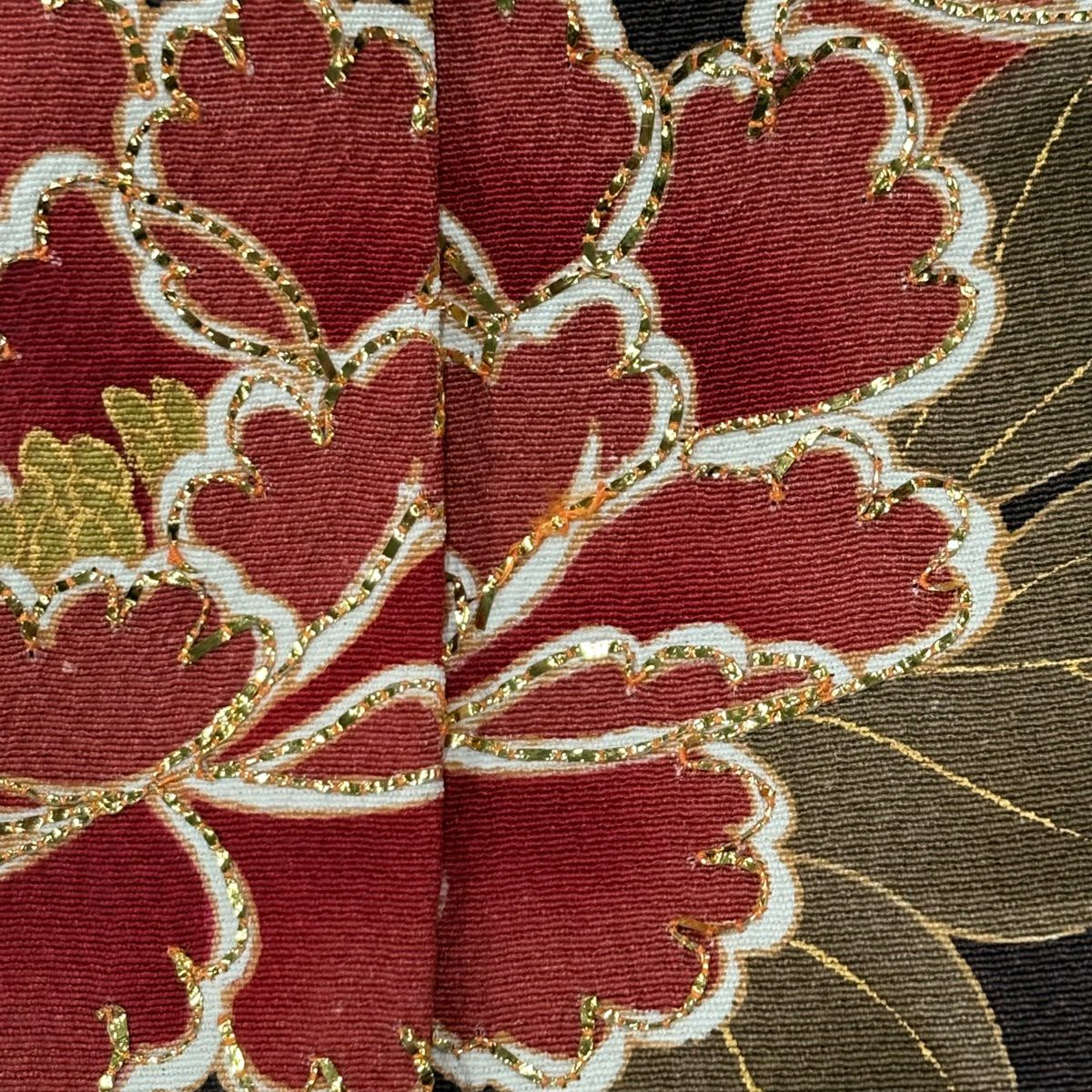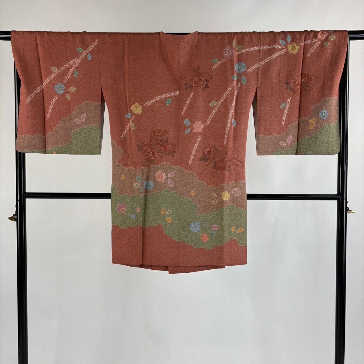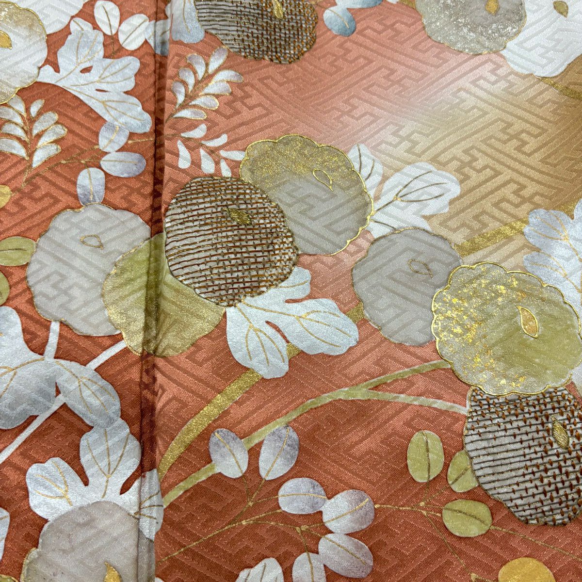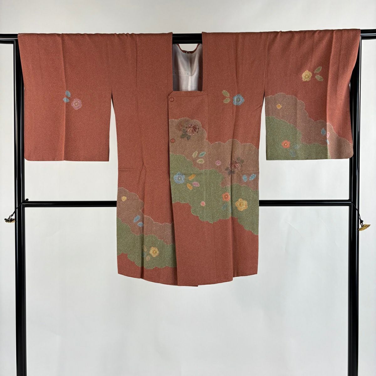 【美品】 付下げ 身丈169cm 裄丈65cm M 袷 華文 草花 金銀彩 ラインストーン 赤茶 正絹 秀品