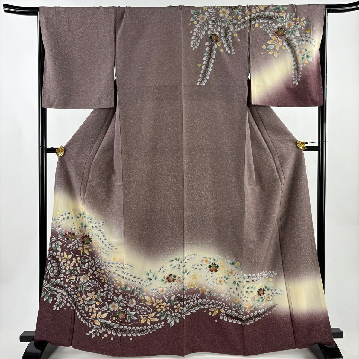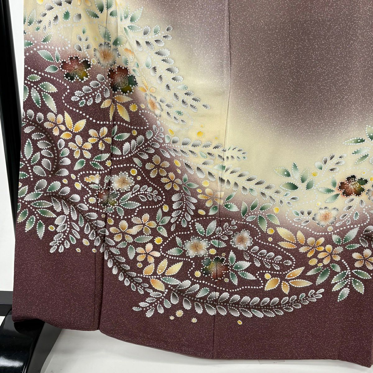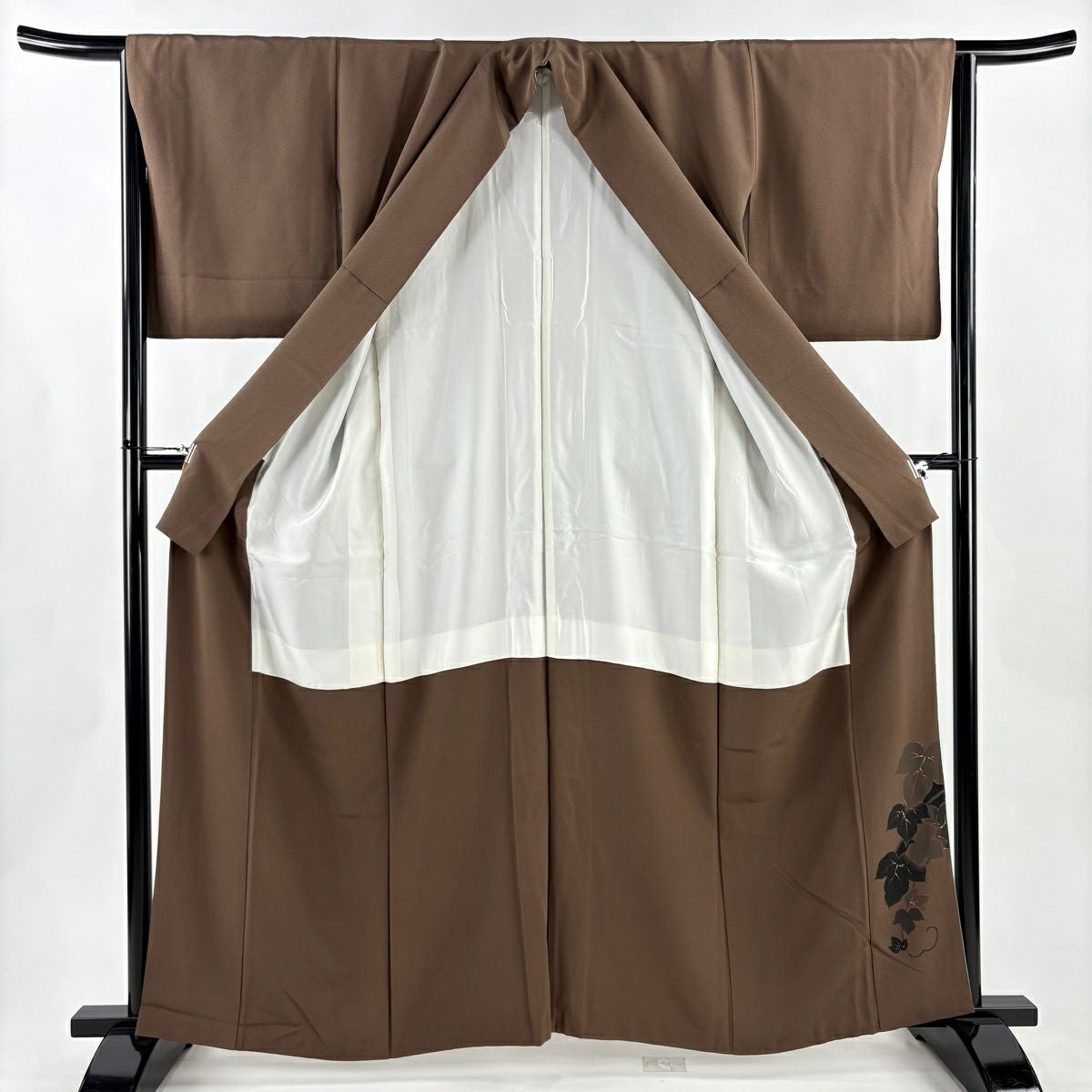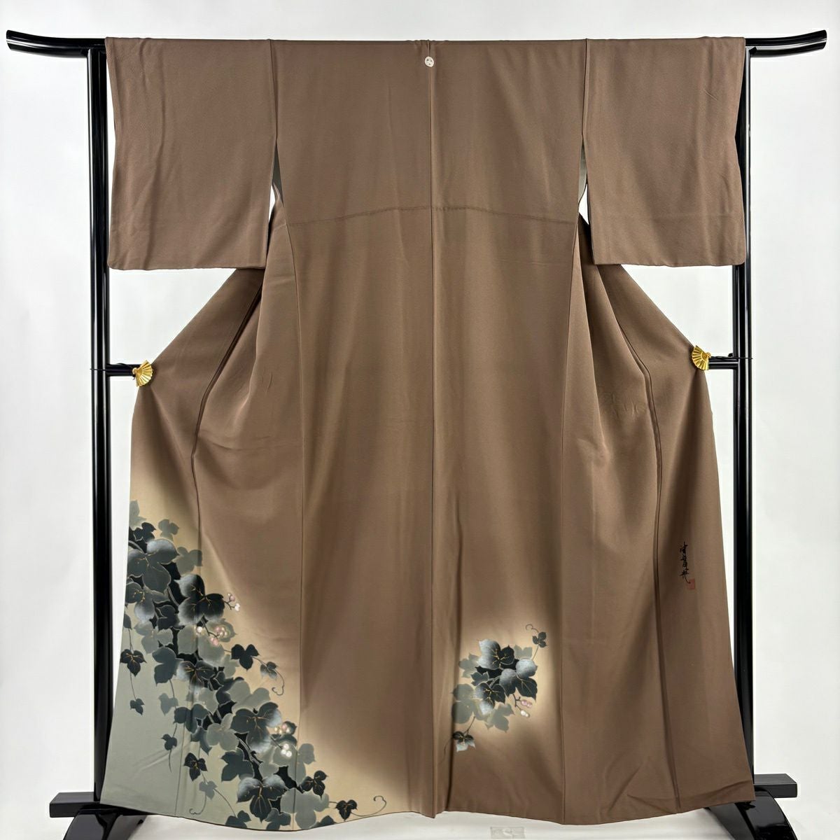 付下げ 身丈161.5cm 裄丈64cm M 袷 落款あり 葉と実 金銀彩 ぼかし 茶色 正絹 秀品 一つ紋
