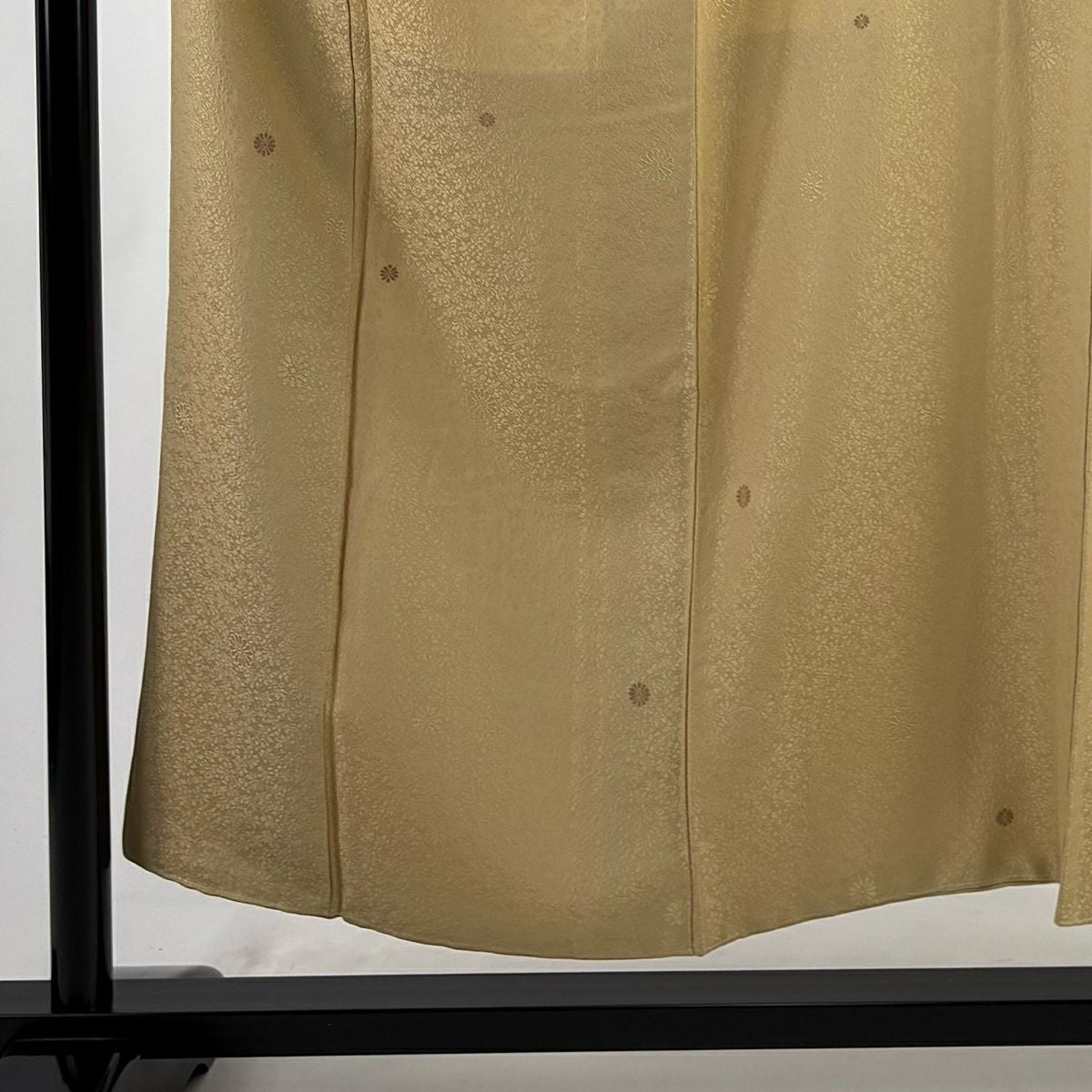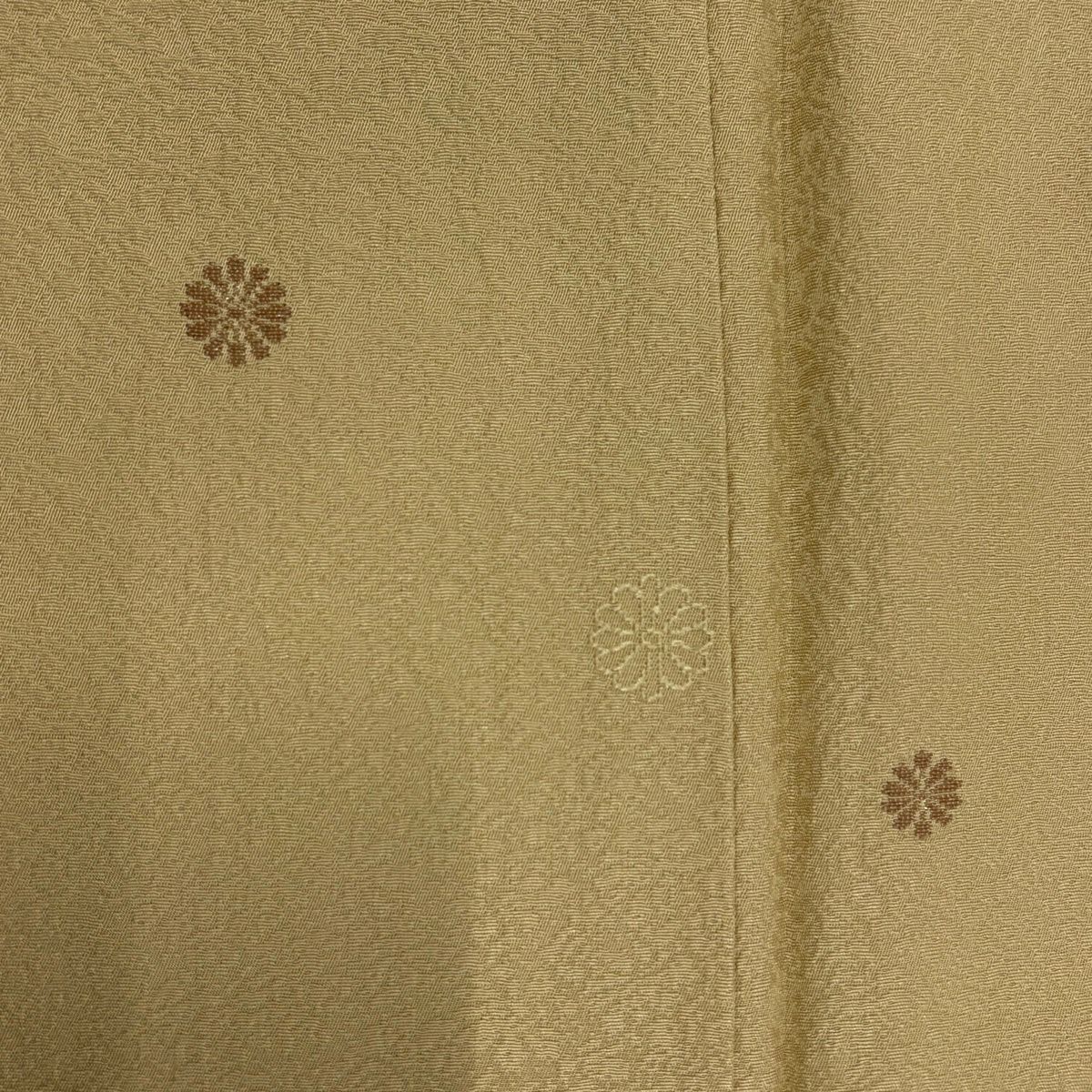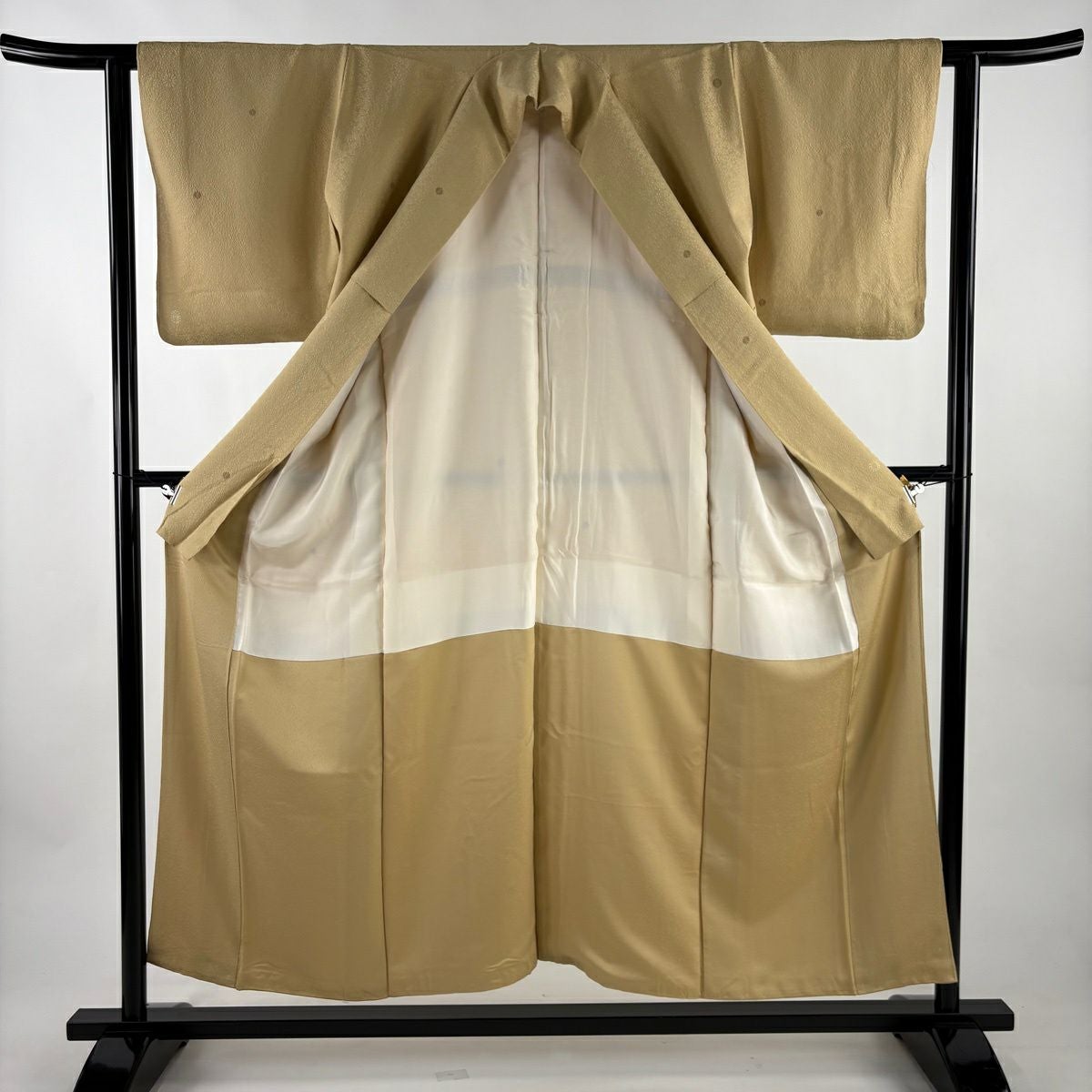 【美品】 小紋 身丈154cm 裄丈61.5cm S 袷 落款あり 花 地紋 金糸 ベージュ 正絹 秀品
