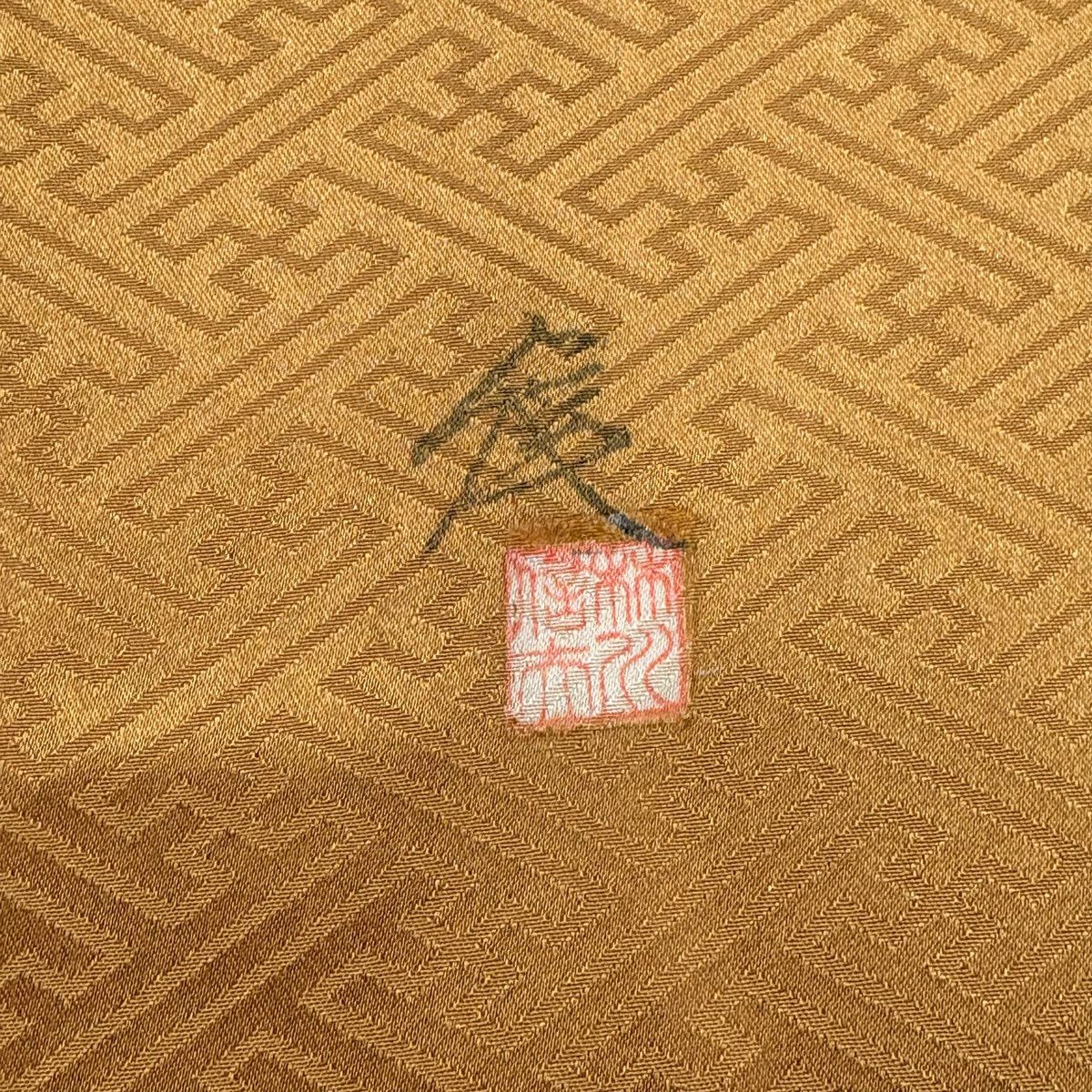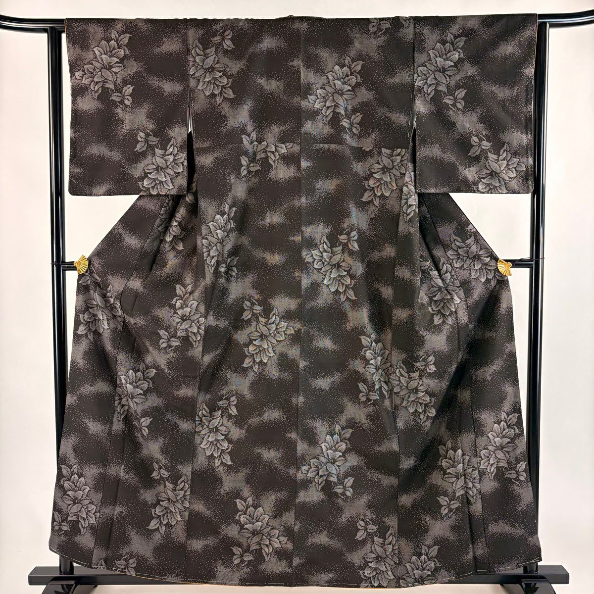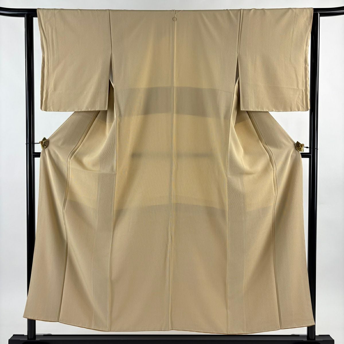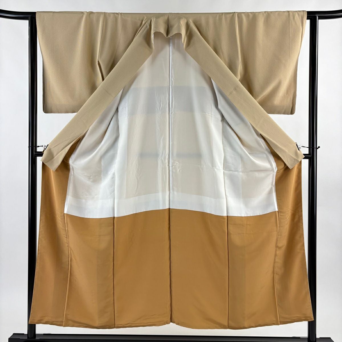 【美品】 小紋 身丈154cm 裄丈61.5cm S 袷 落款あり 花 地紋 金糸 ベージュ 正絹 秀品