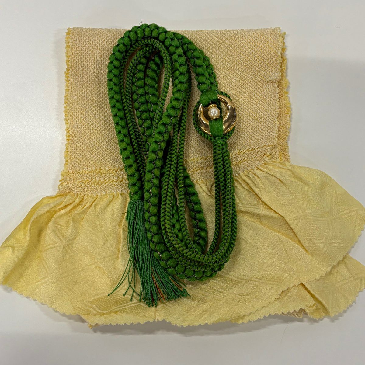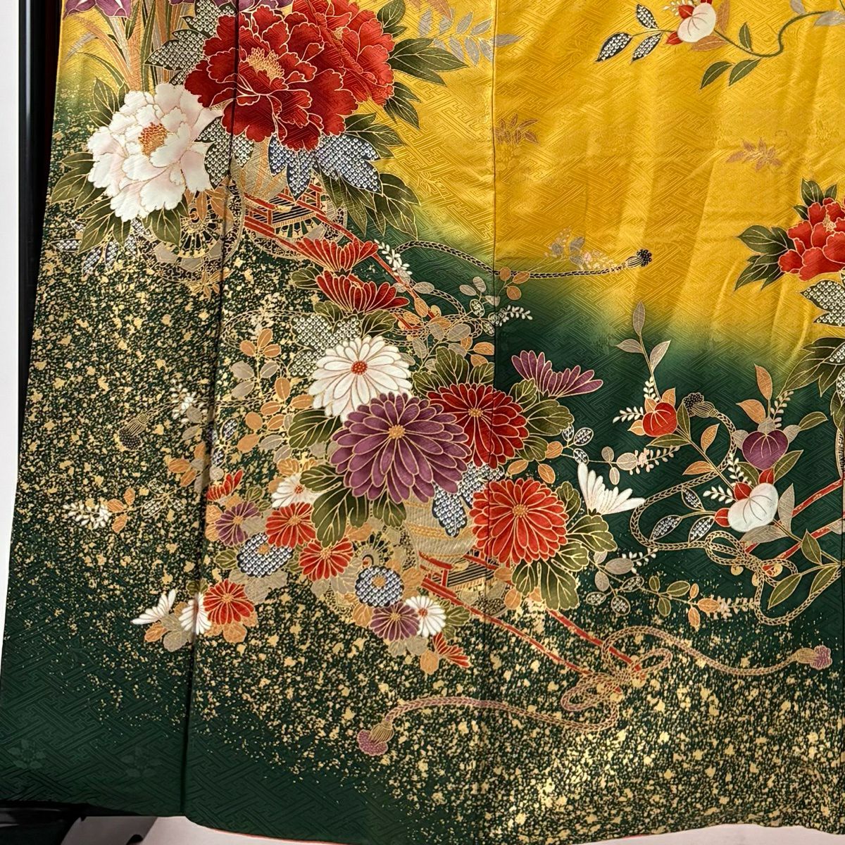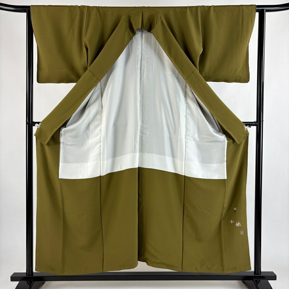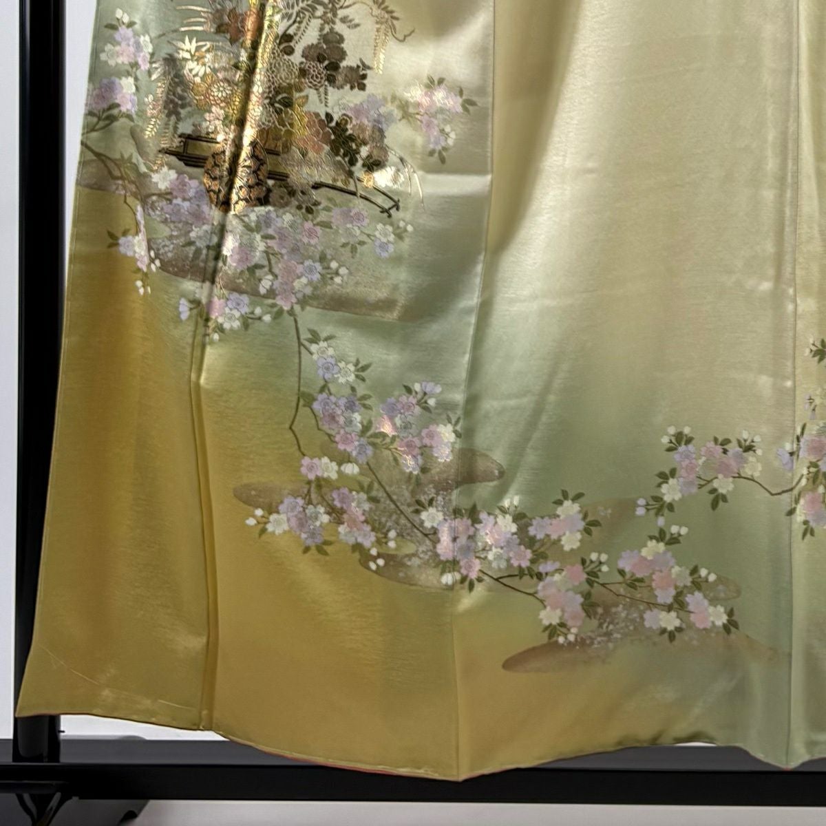 【美品】 色留袖 身丈154.5cm 裄丈63.5cm S 袷 宝尽くし 松 金糸 金彩 鶯色 正絹 秀品 一つ紋