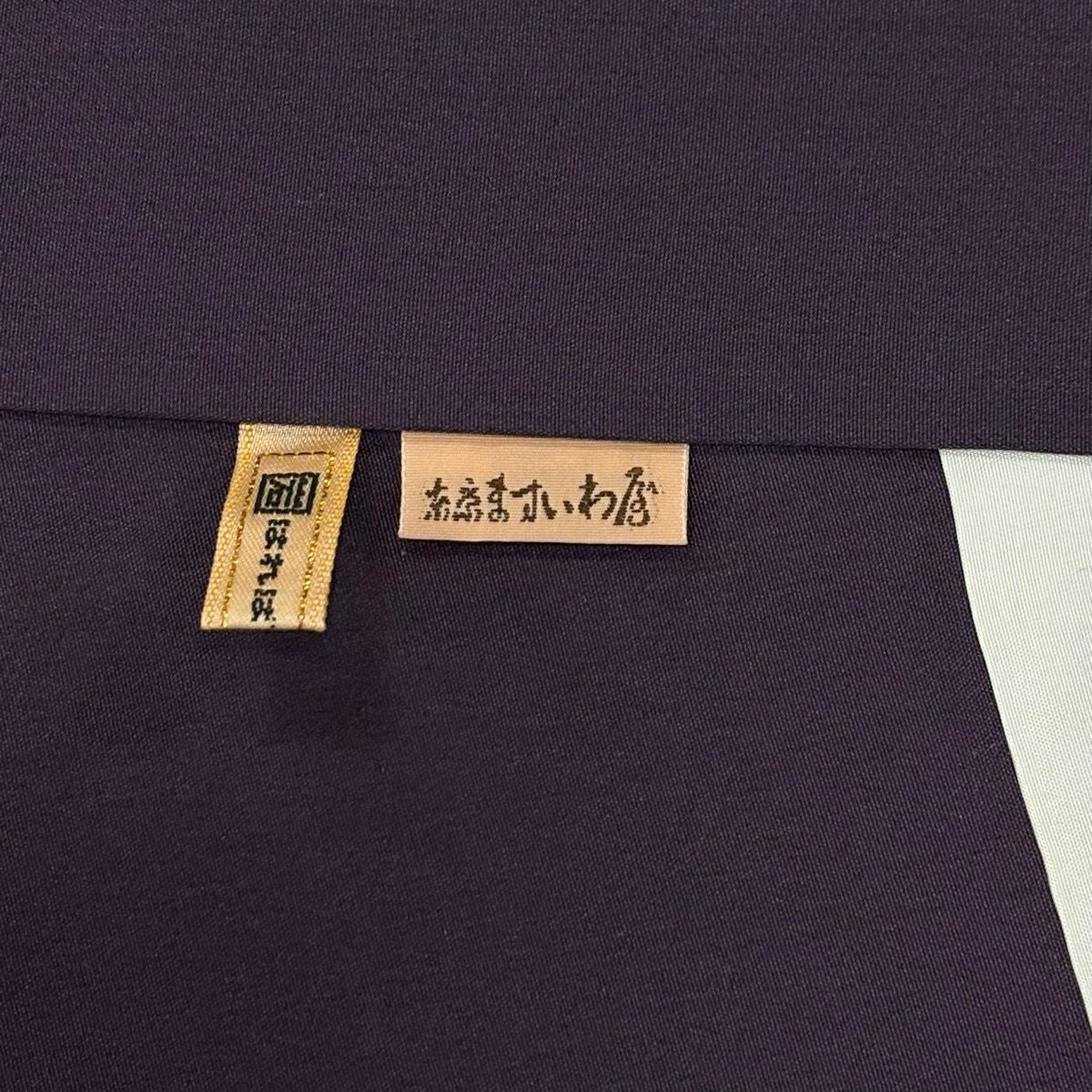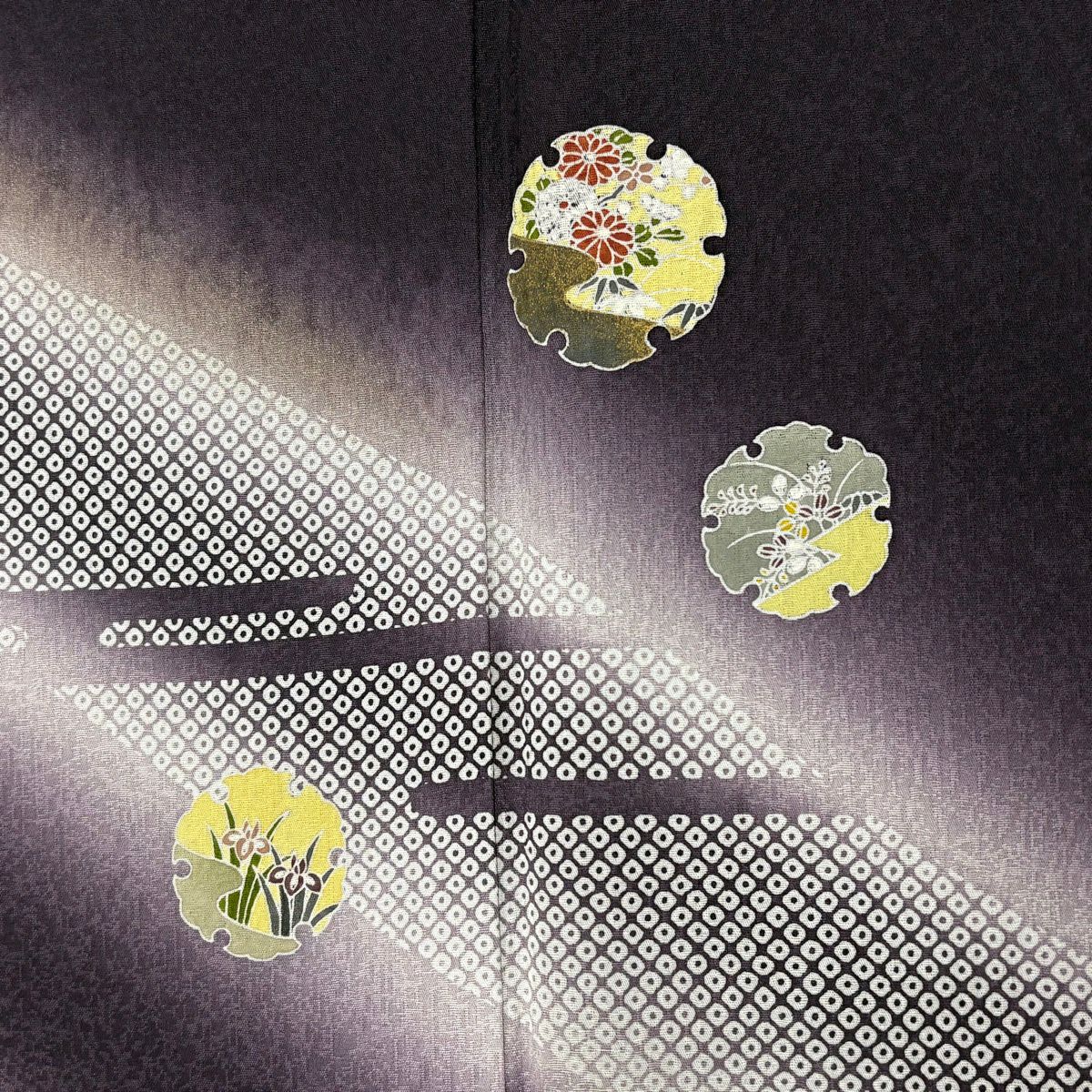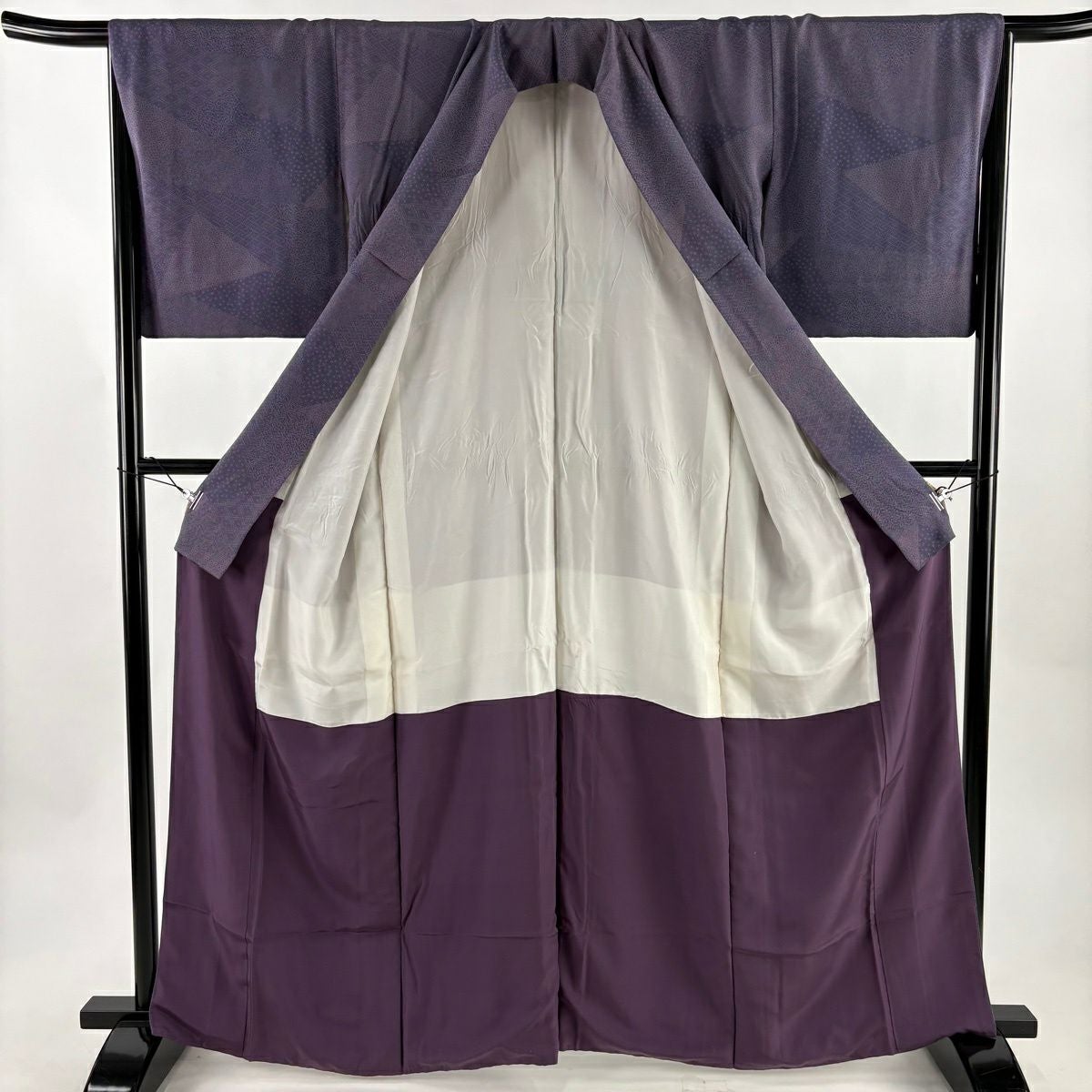 江戸小紋 身丈164cm 裄丈66.5cm M 袷 保科信 落款あり 寄せ柄 渦巻き 紫 正絹 秀品 一つ紋