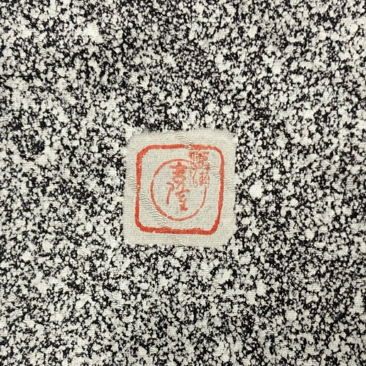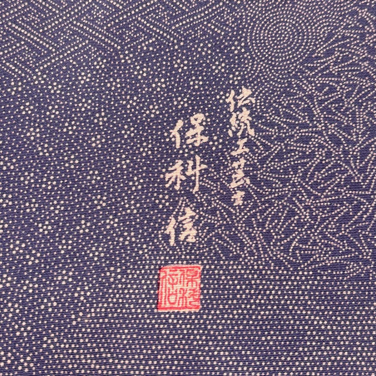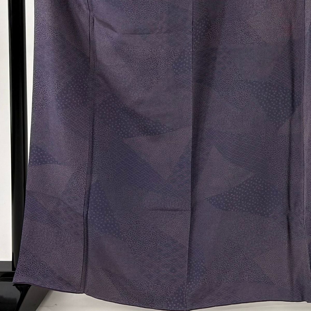 江戸小紋 身丈164cm 裄丈66.5cm M 袷 保科信 落款あり 寄せ柄 渦巻き 紫 正絹 秀品 一つ紋
