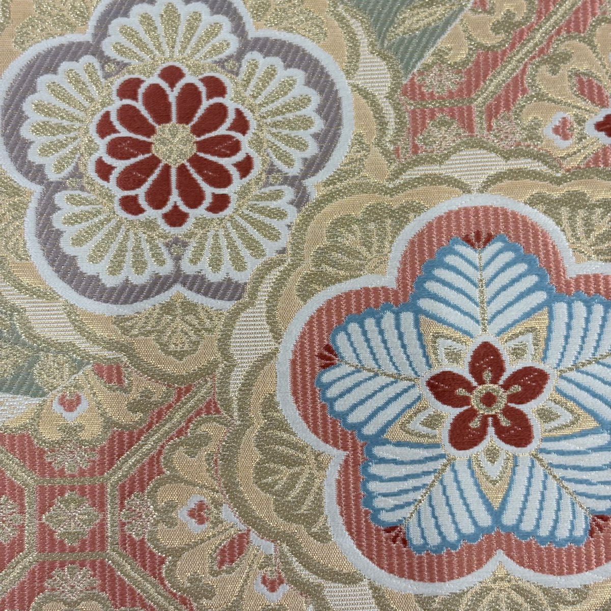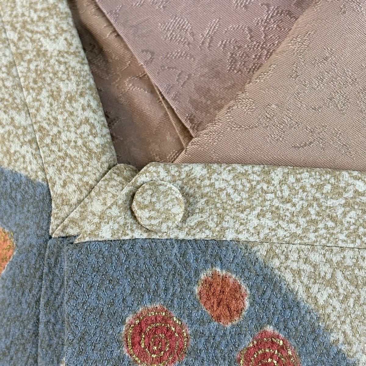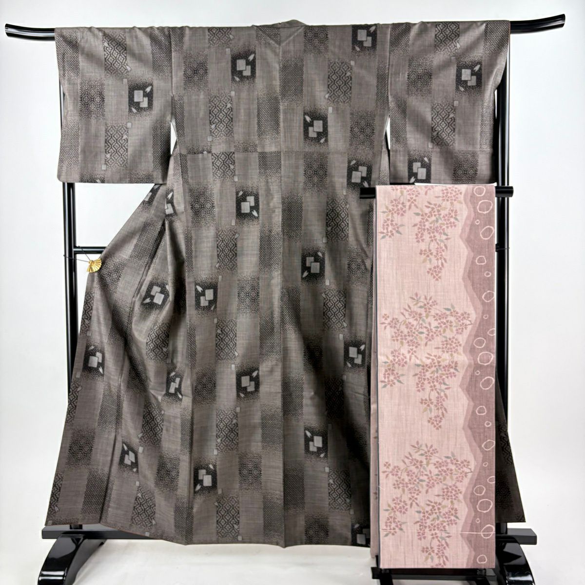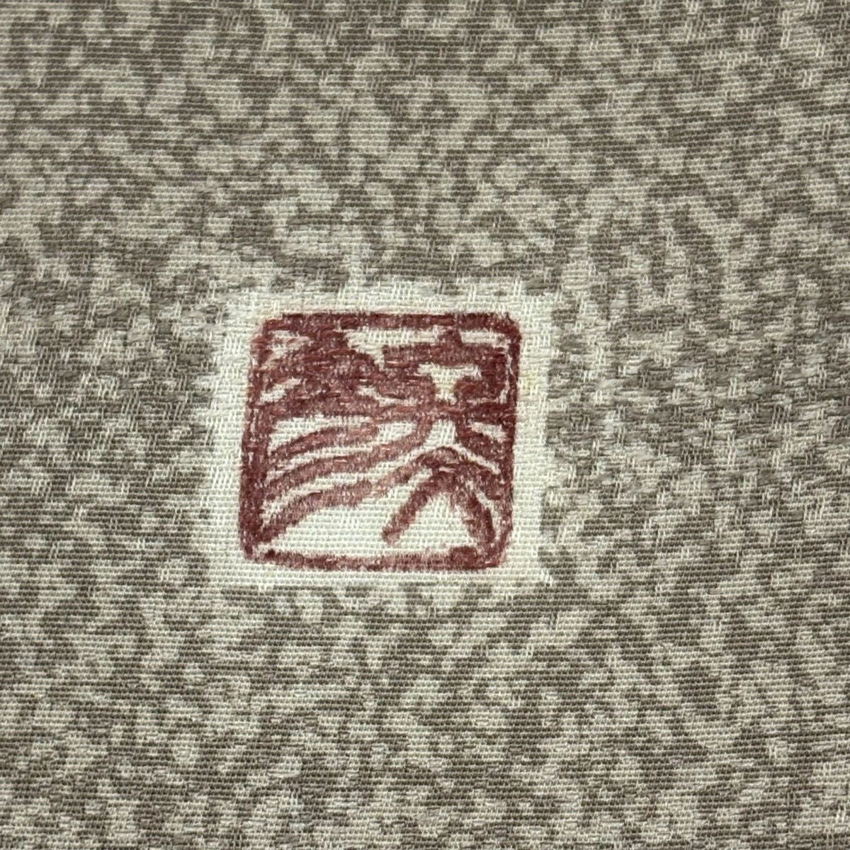 【美品】 紬 身丈160.5cm 裄丈66.5cm M 袷 袋帯セット ますいわ屋 花びら 菱 灰茶 正絹 秀品