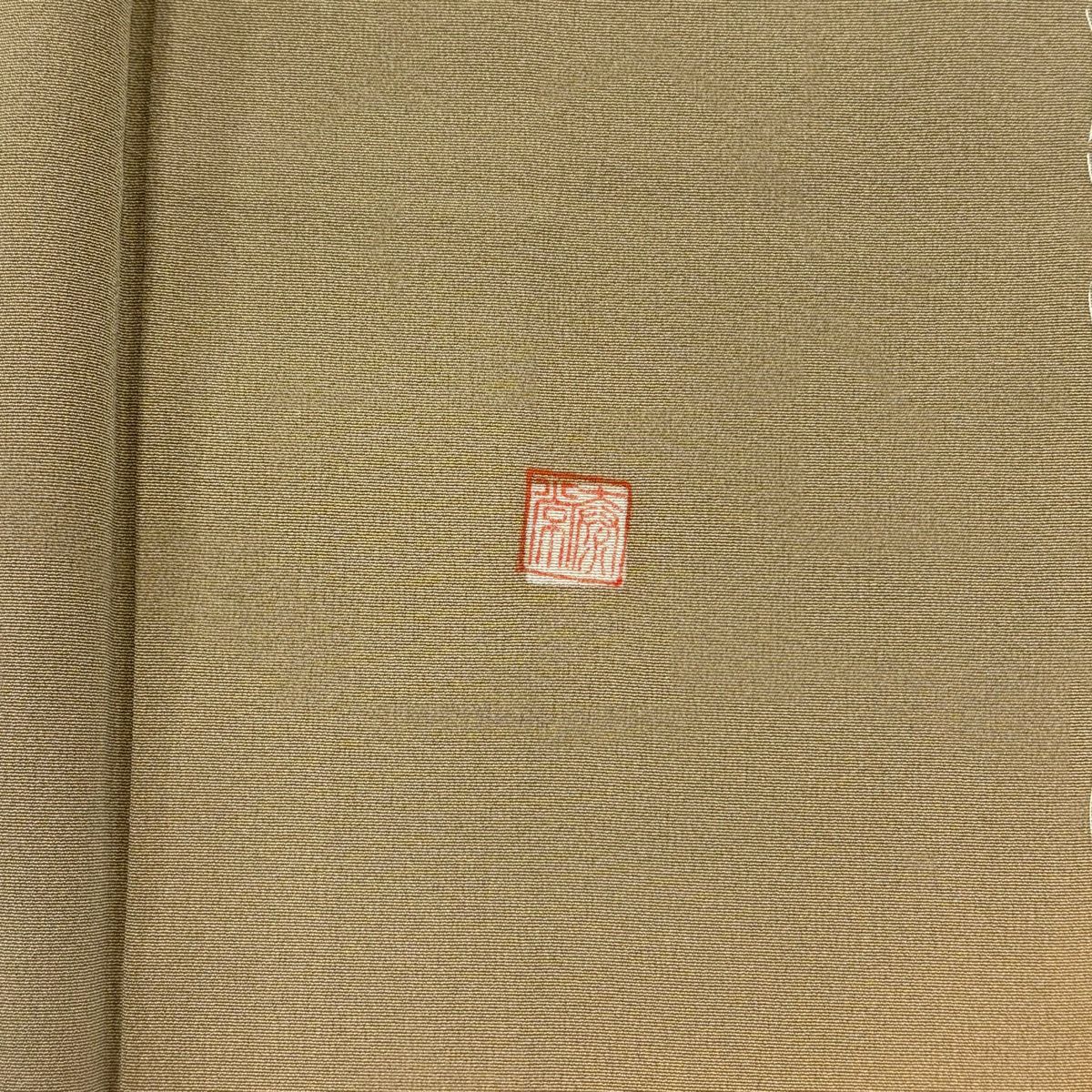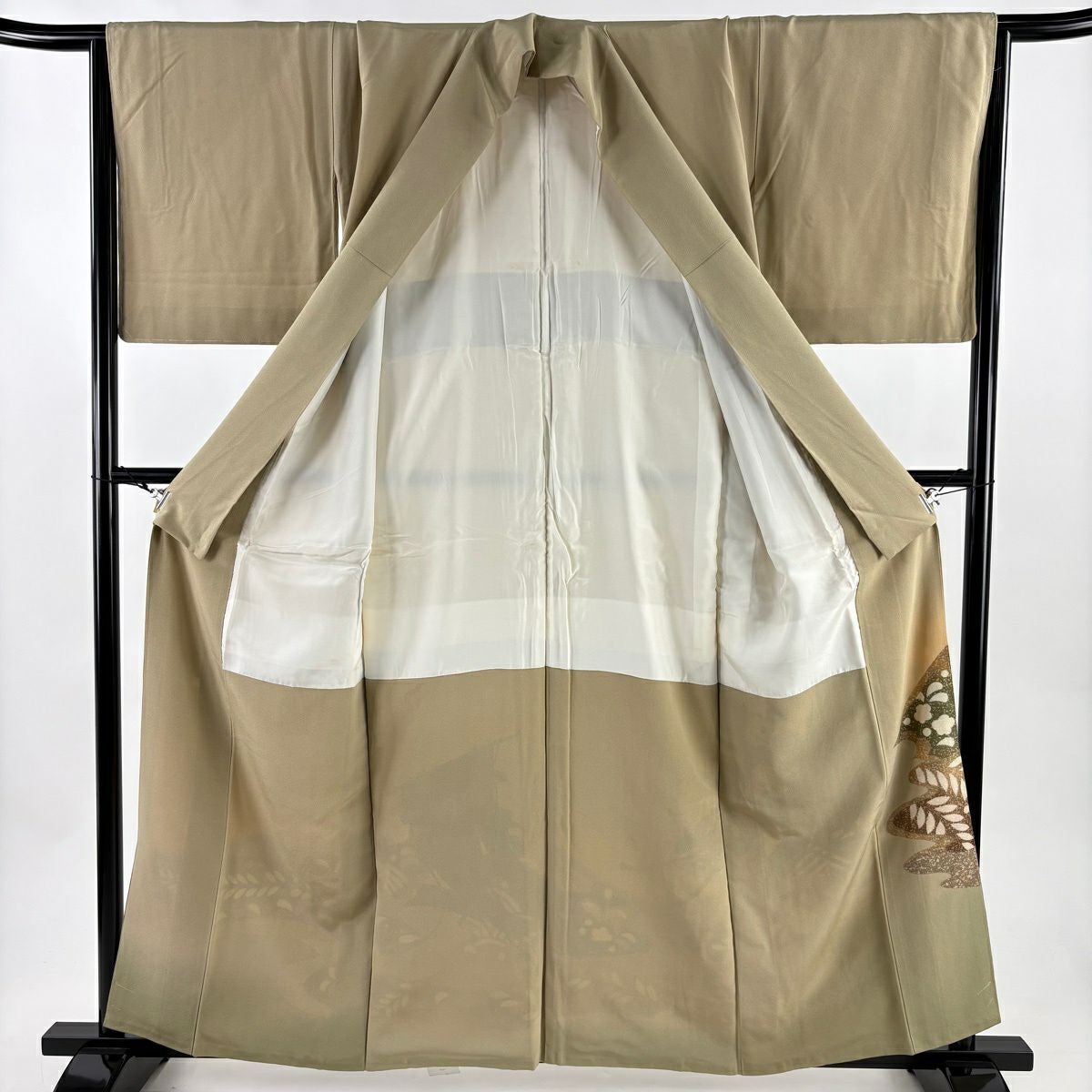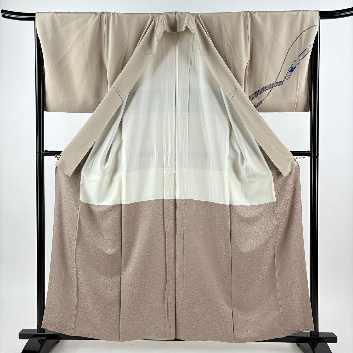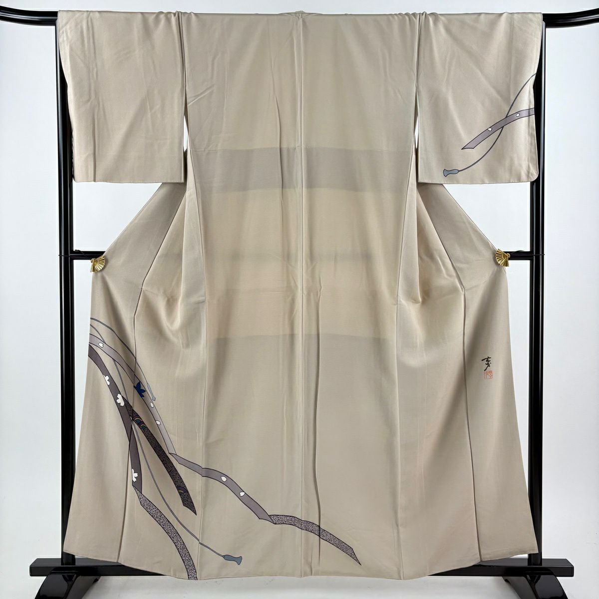 付下げ 身丈159.5cm 裄丈68cm L 袷 大久保玄才 落款あり 蔓帯 組紐 金彩 薄茶色 正絹 秀品