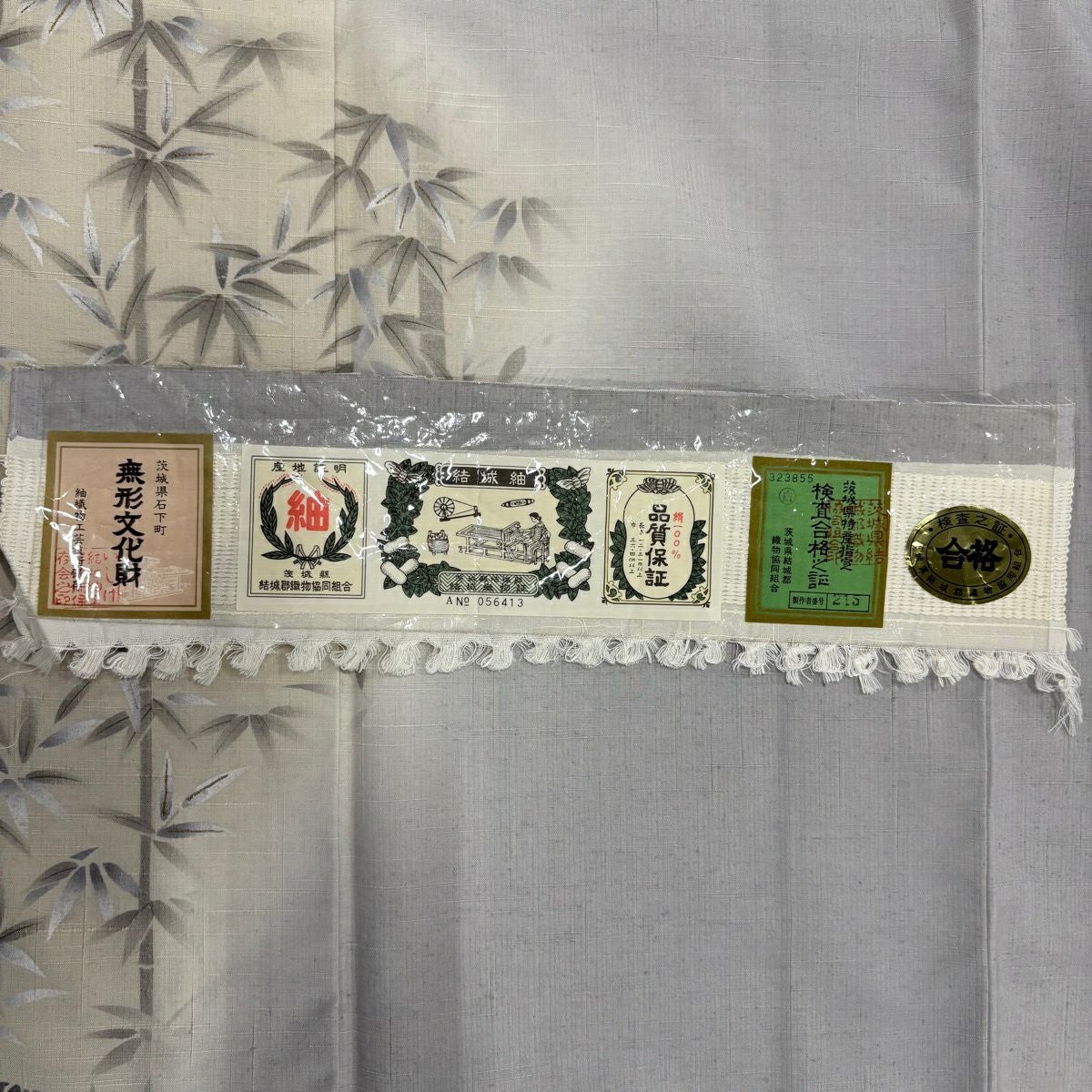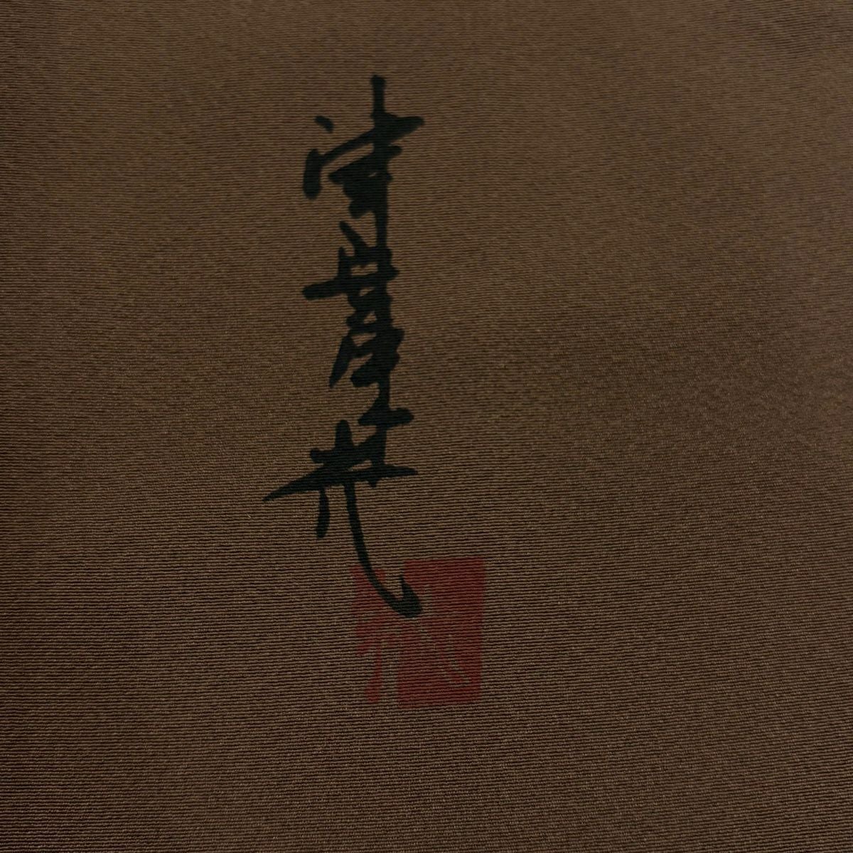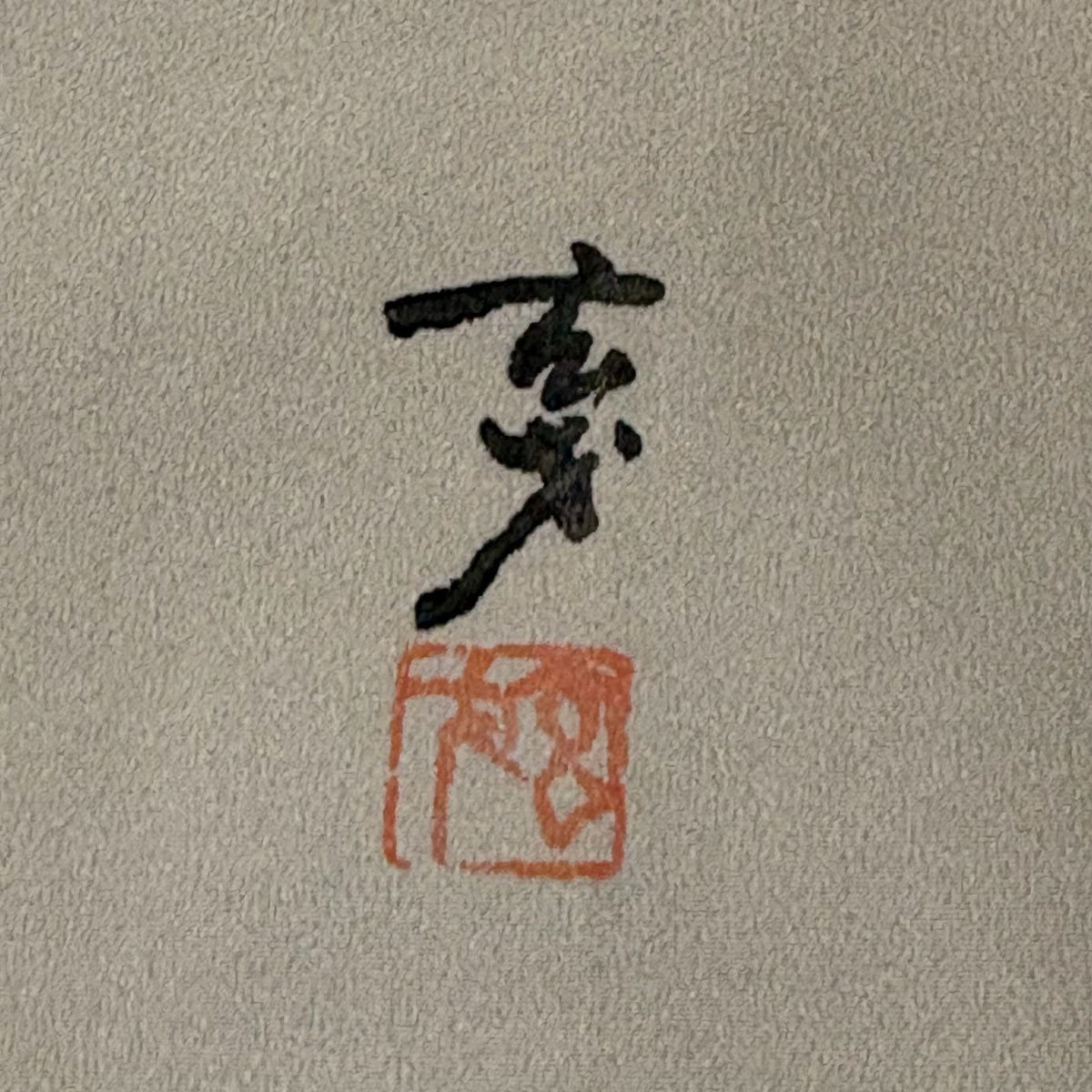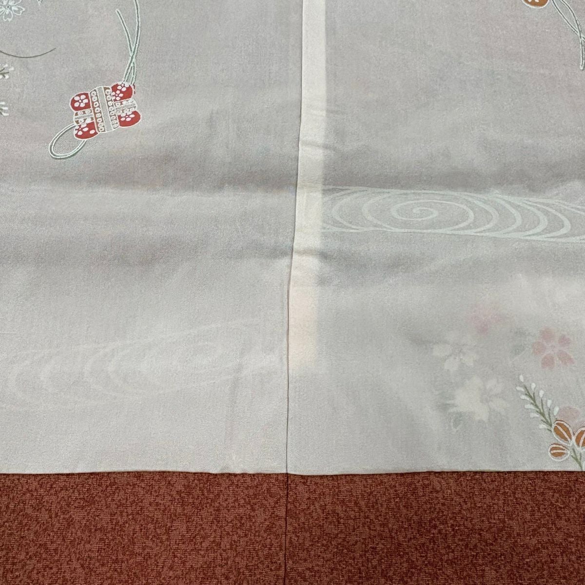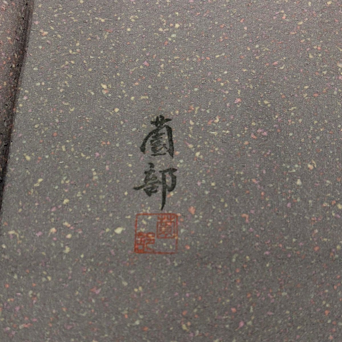 付下げ 身丈159.5cm 裄丈68cm L 袷 大久保玄才 落款あり 蔓帯 組紐 金彩 薄茶色 正絹 秀品