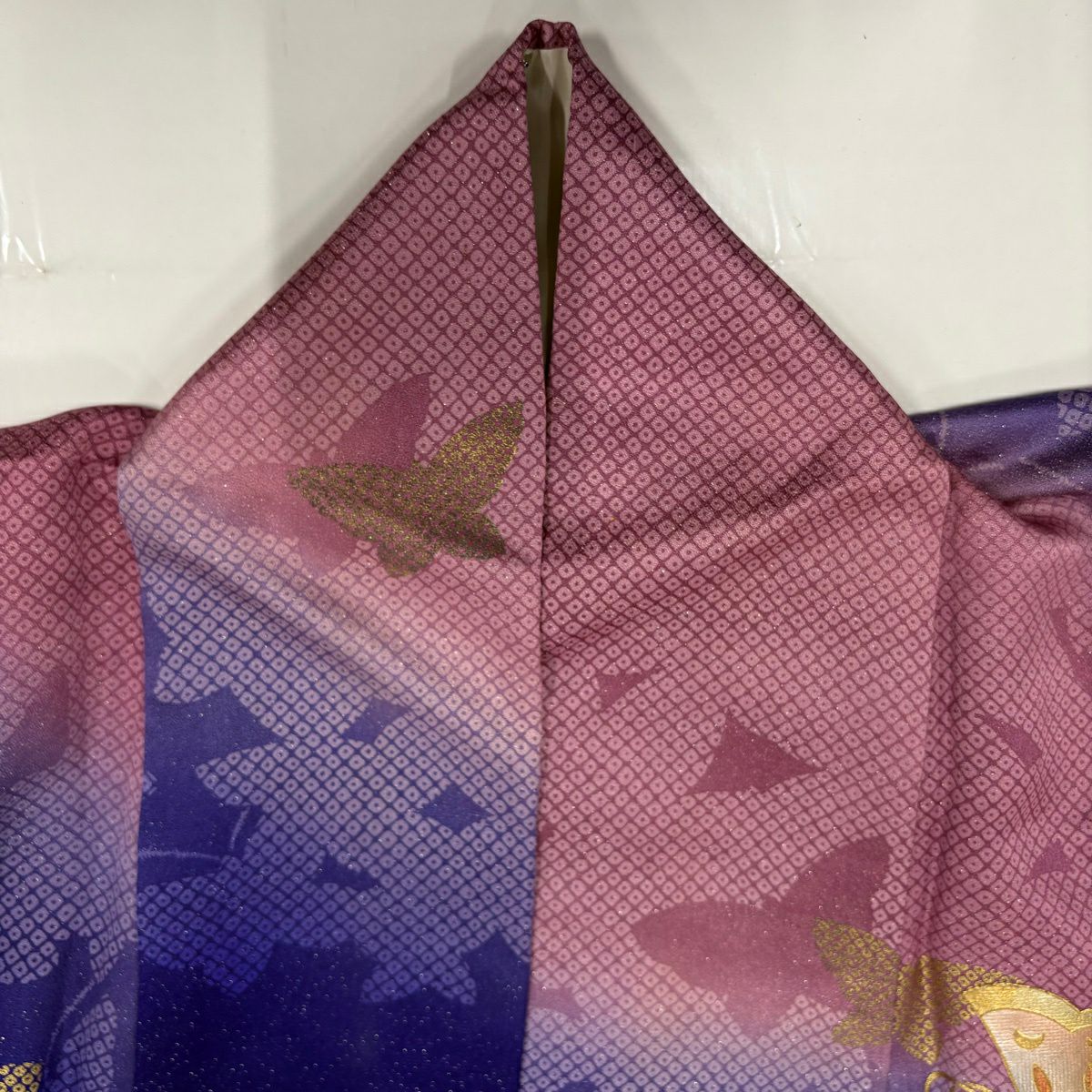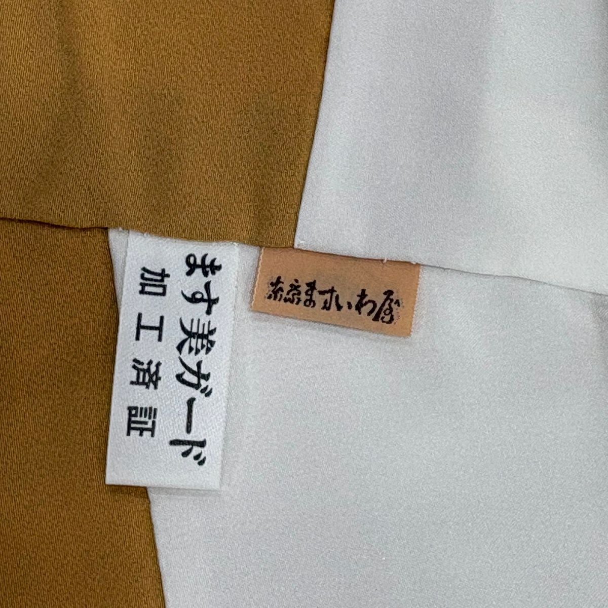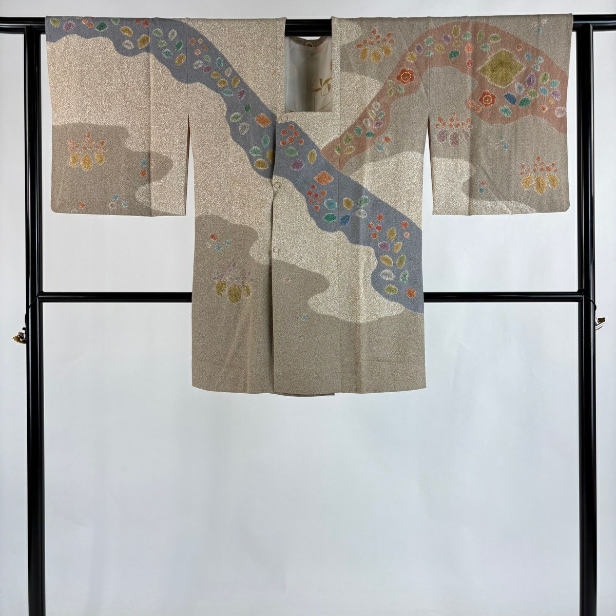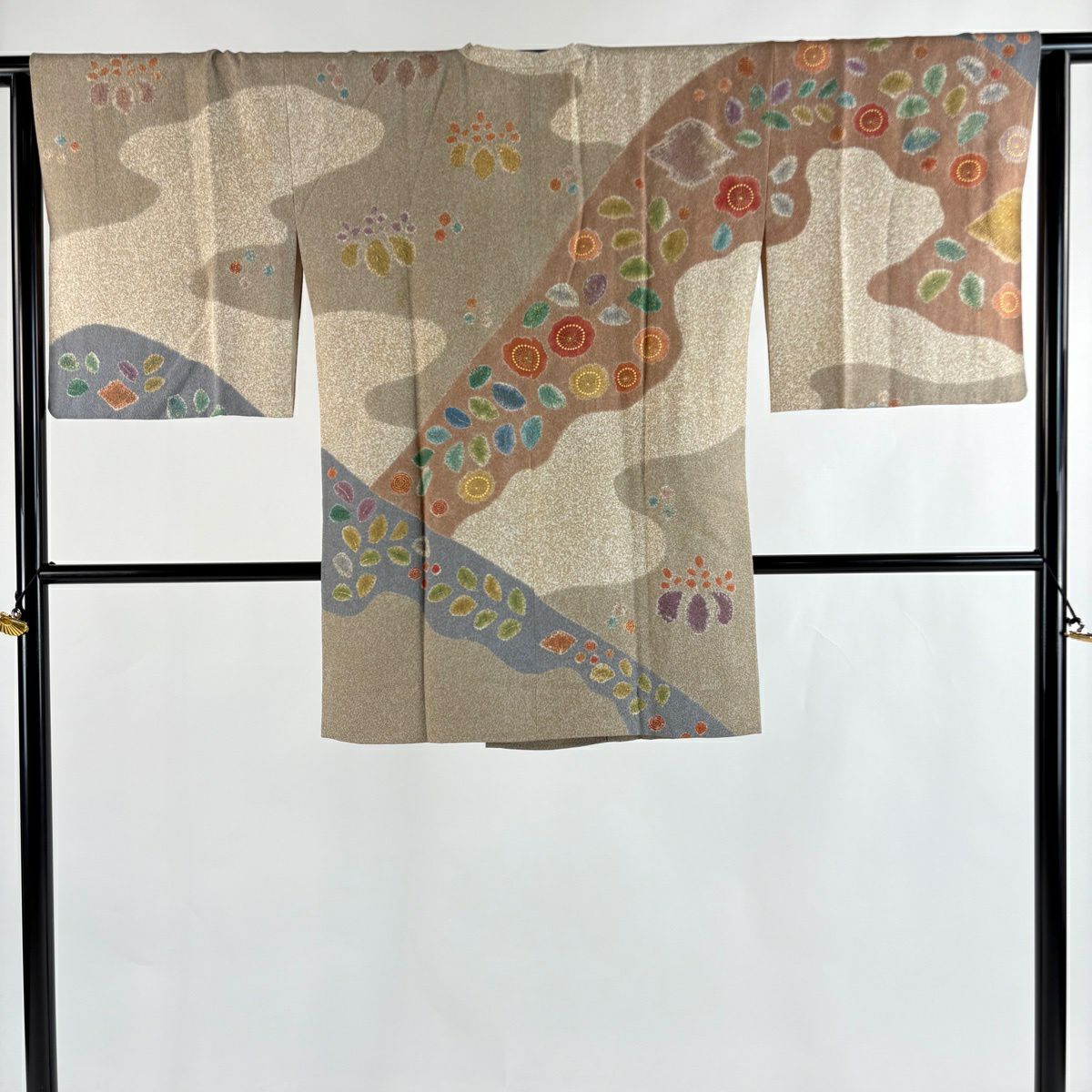 道行 身丈85cm 裄丈64.5cm M 和装コート 角衿 落款あり 草花 金彩 染め分け 薄茶色 正絹 秀品