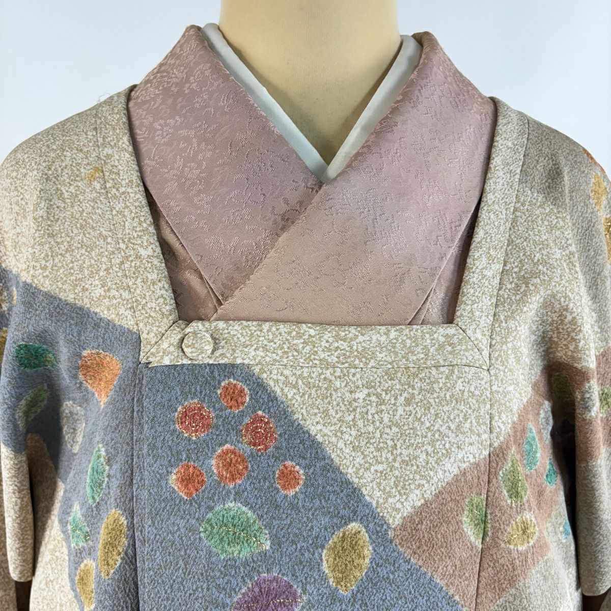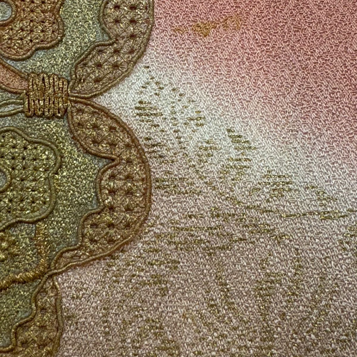 付下げ 身丈154cm 裄丈63.5cm S 袷 辻が花柄 霞 刺繍 金糸 ピンクベージュ 正絹 秀品