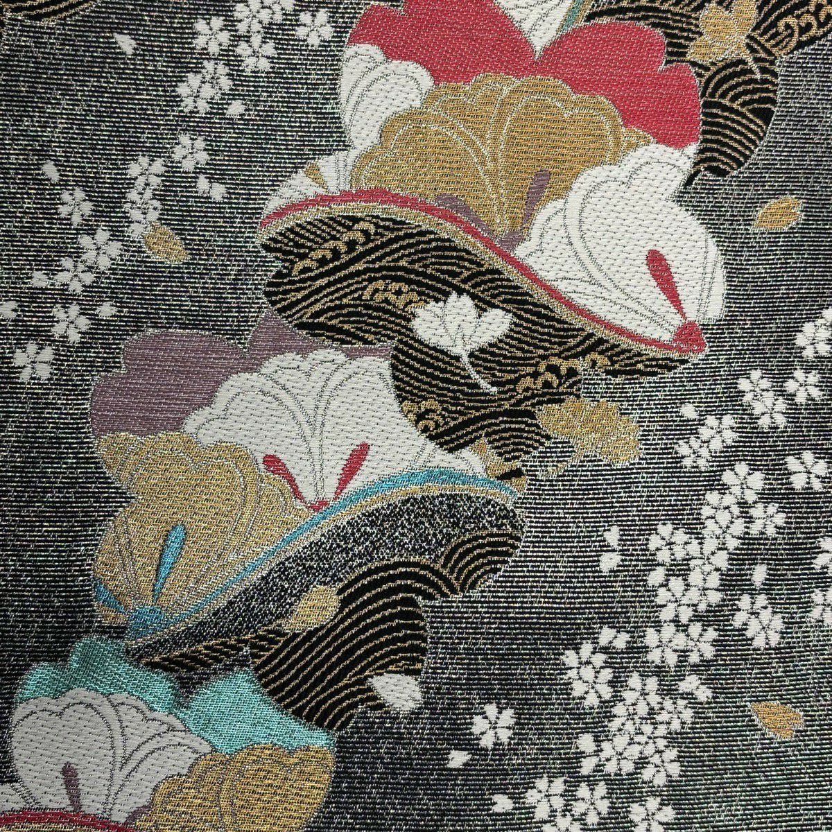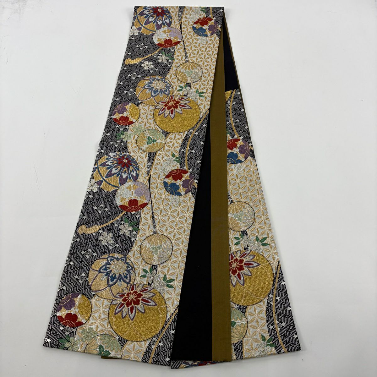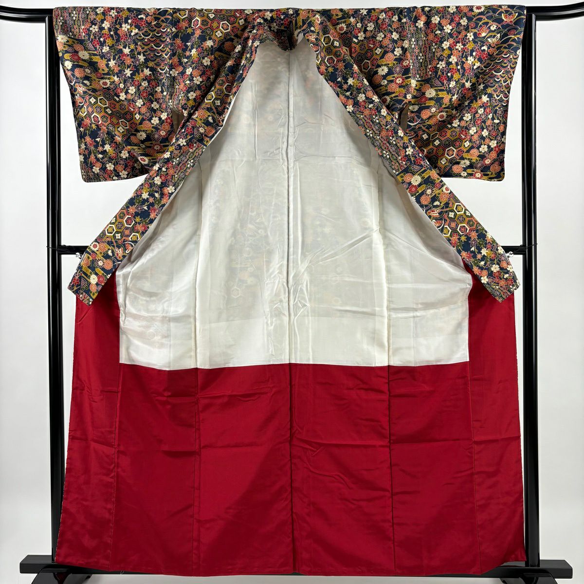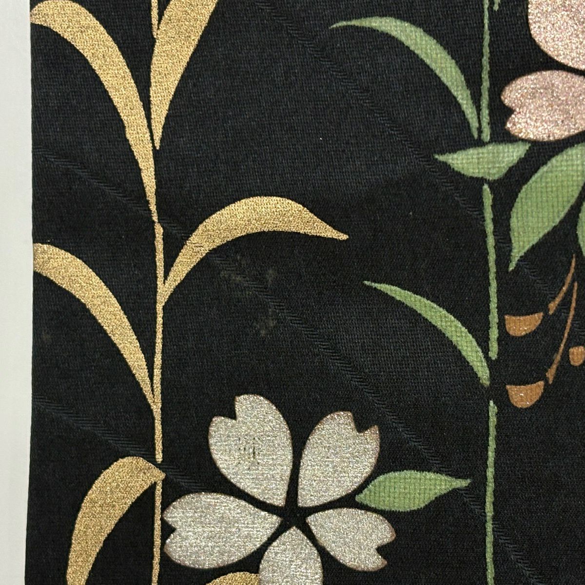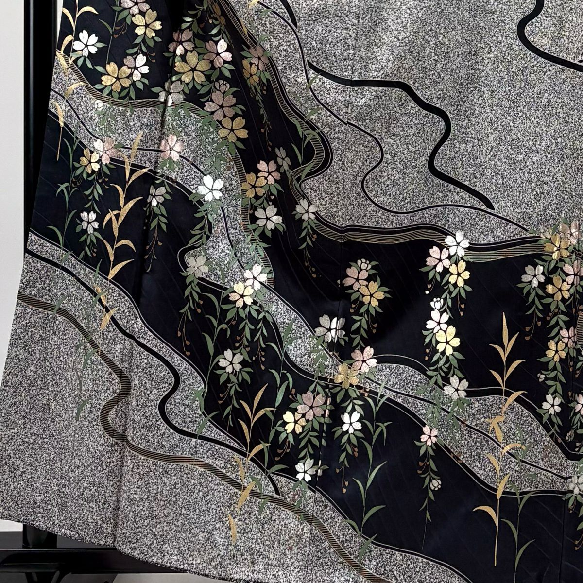 黒留袖 身丈151cm 裄丈64.5cm M 袷 松井青々 落款あり 花車 草花 刺繍 金銀彩 黒 正絹 秀品