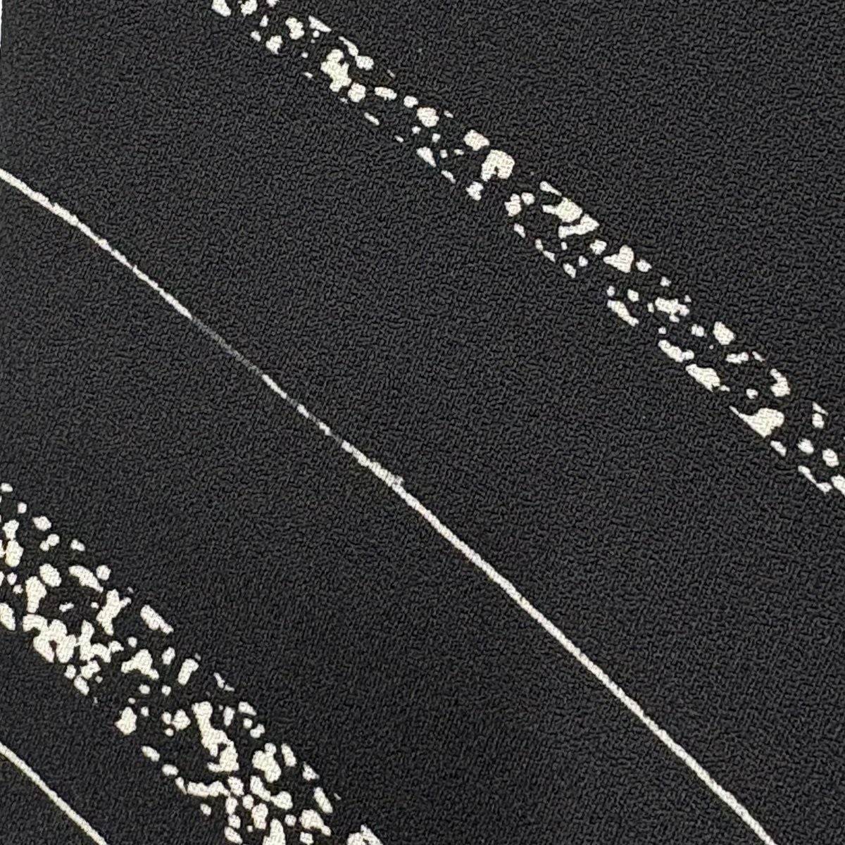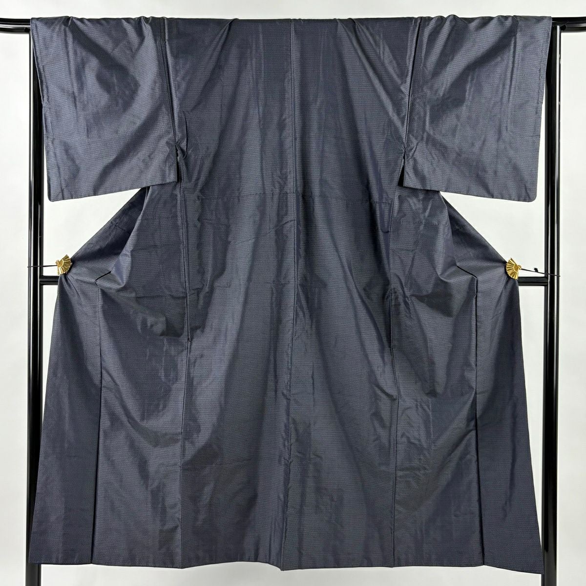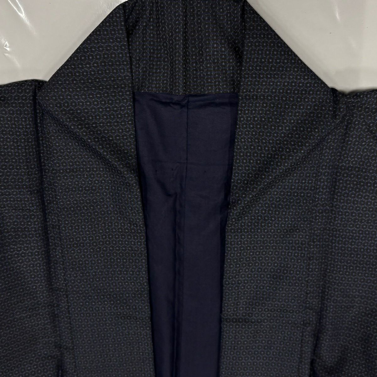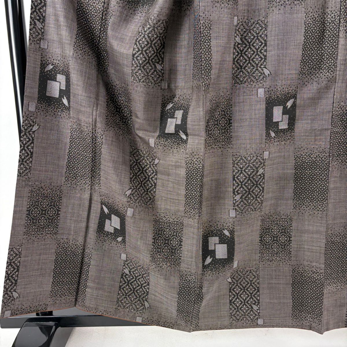 【美品】 紬 身丈161.5cm 裄丈63.5cm S 袷 名古屋セット よろけ縞 幾何学模様 墨色 正絹 秀品