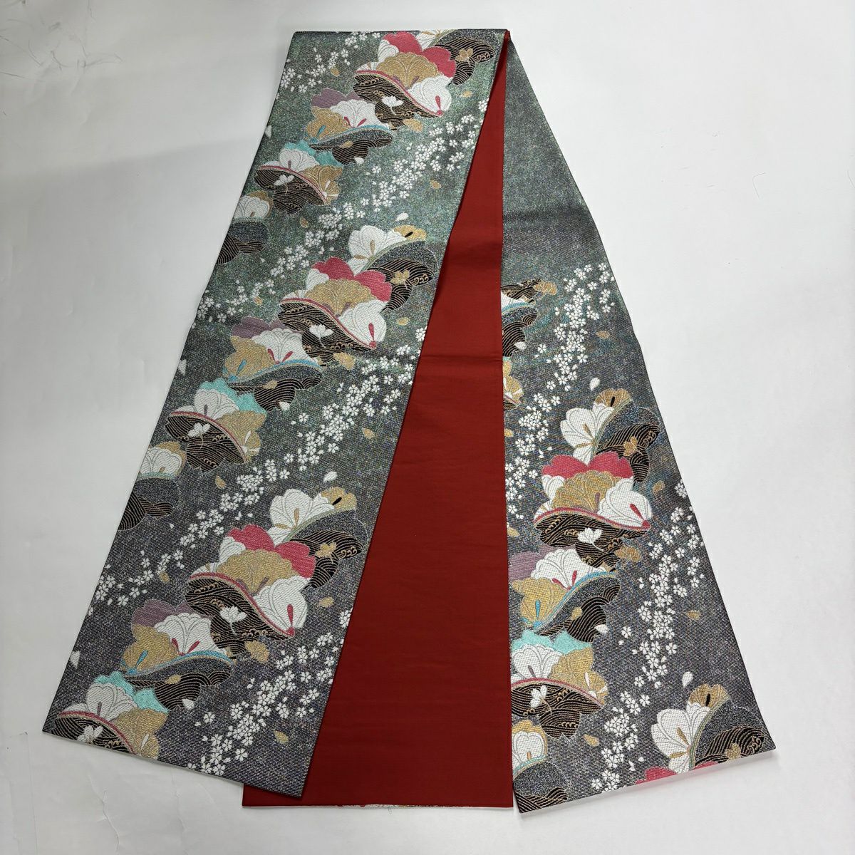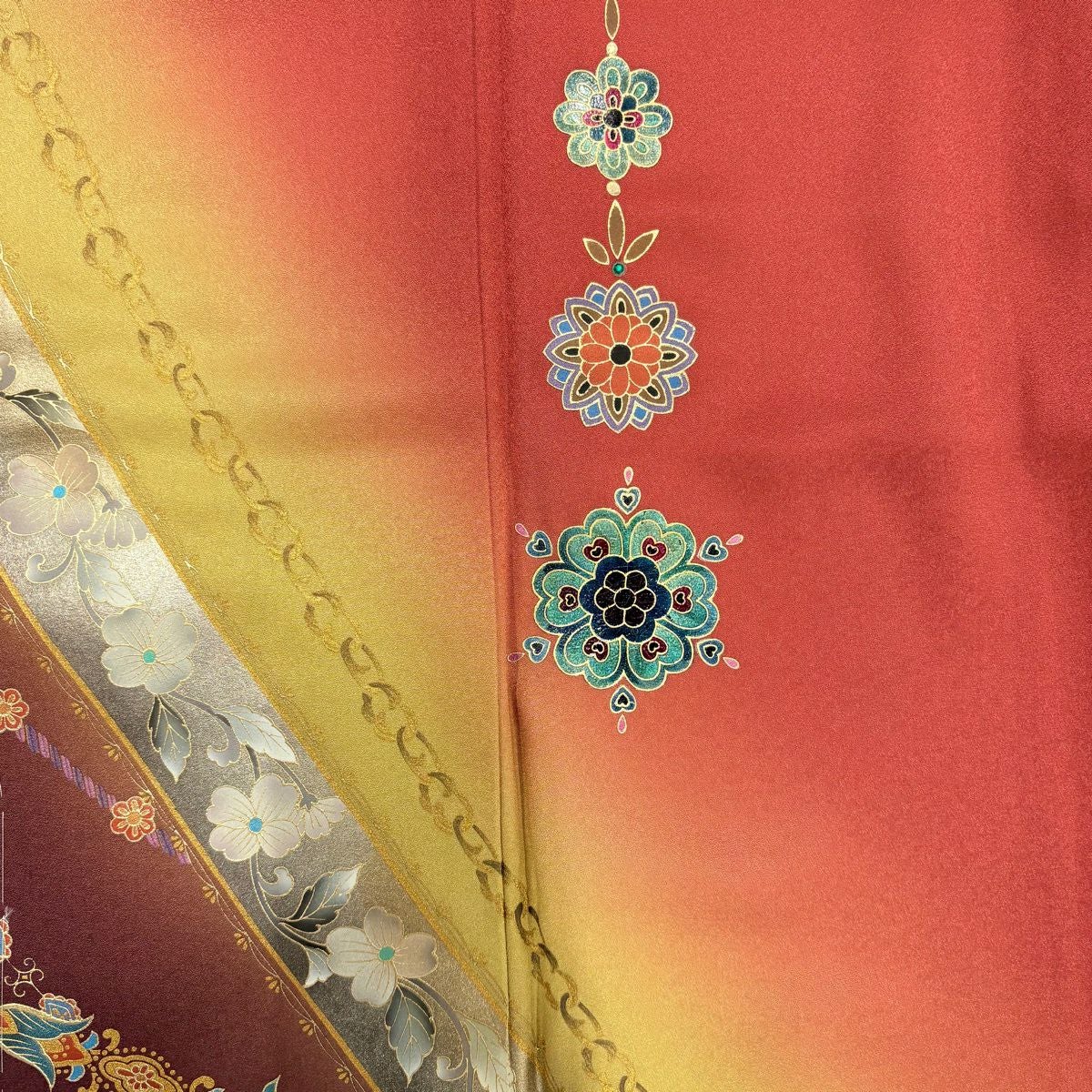 【美品】 振袖 身丈159cm 裄丈68cm L 袷 袋帯フルセット 薔薇 染め分け ぼかし 赤 正絹 秀品