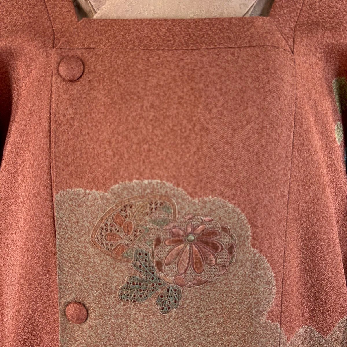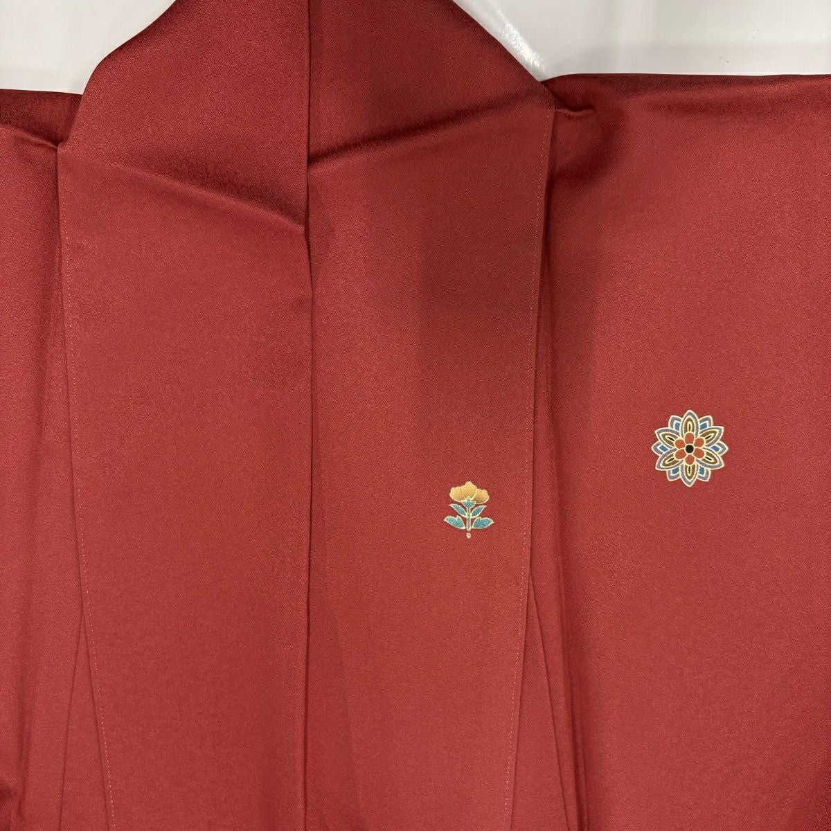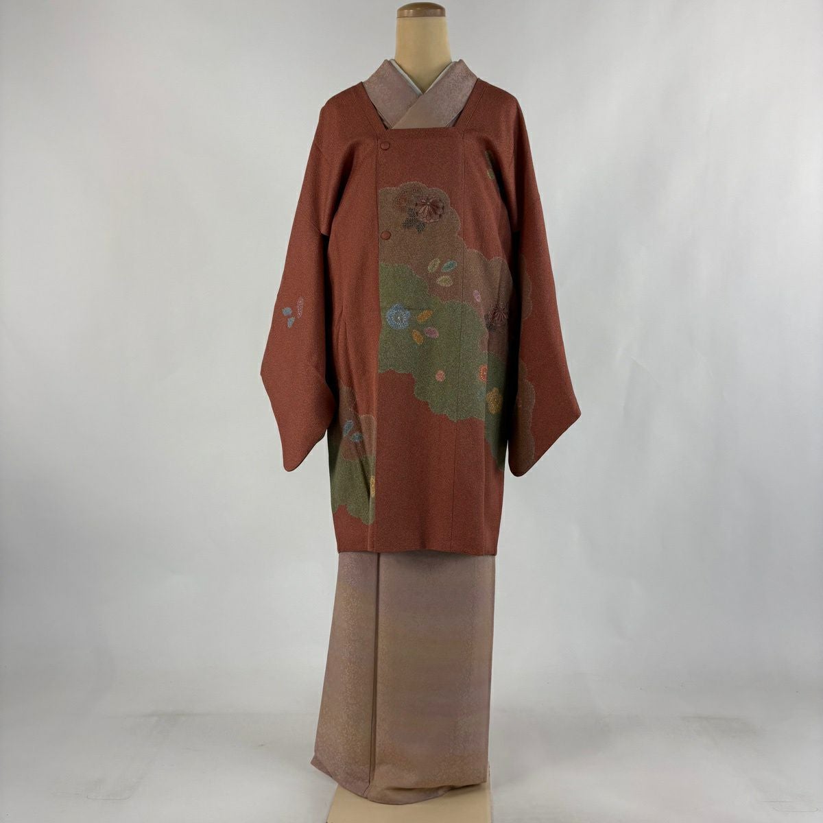 【美品】 道行 身丈94cm 裄丈68.5cm L 和装コート 角衿 菊 梅 刺繍 金彩 小豆色 正絹 秀品