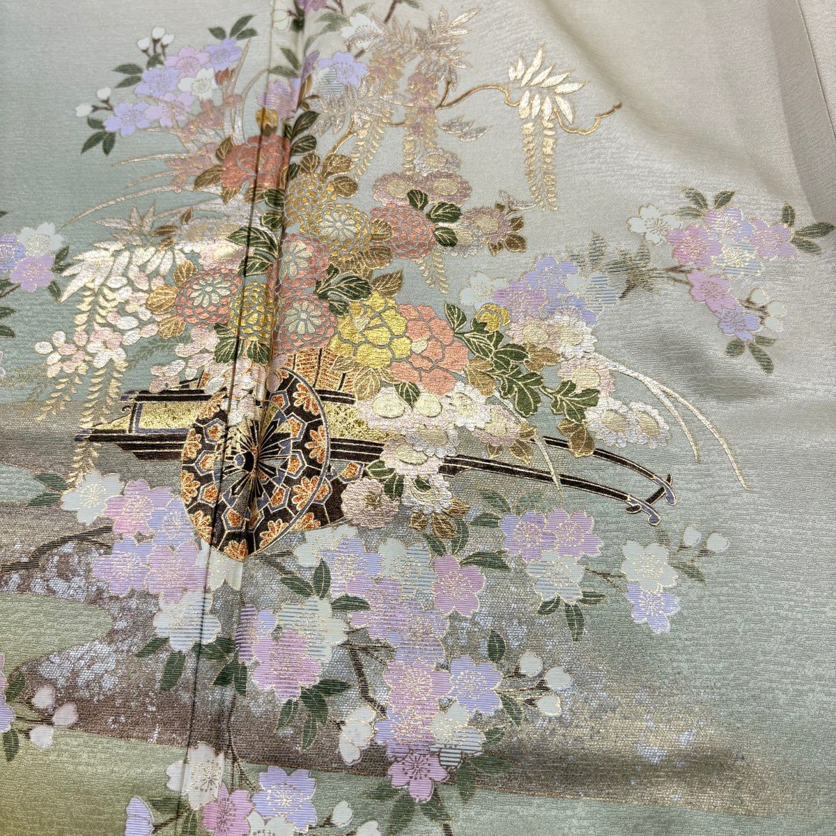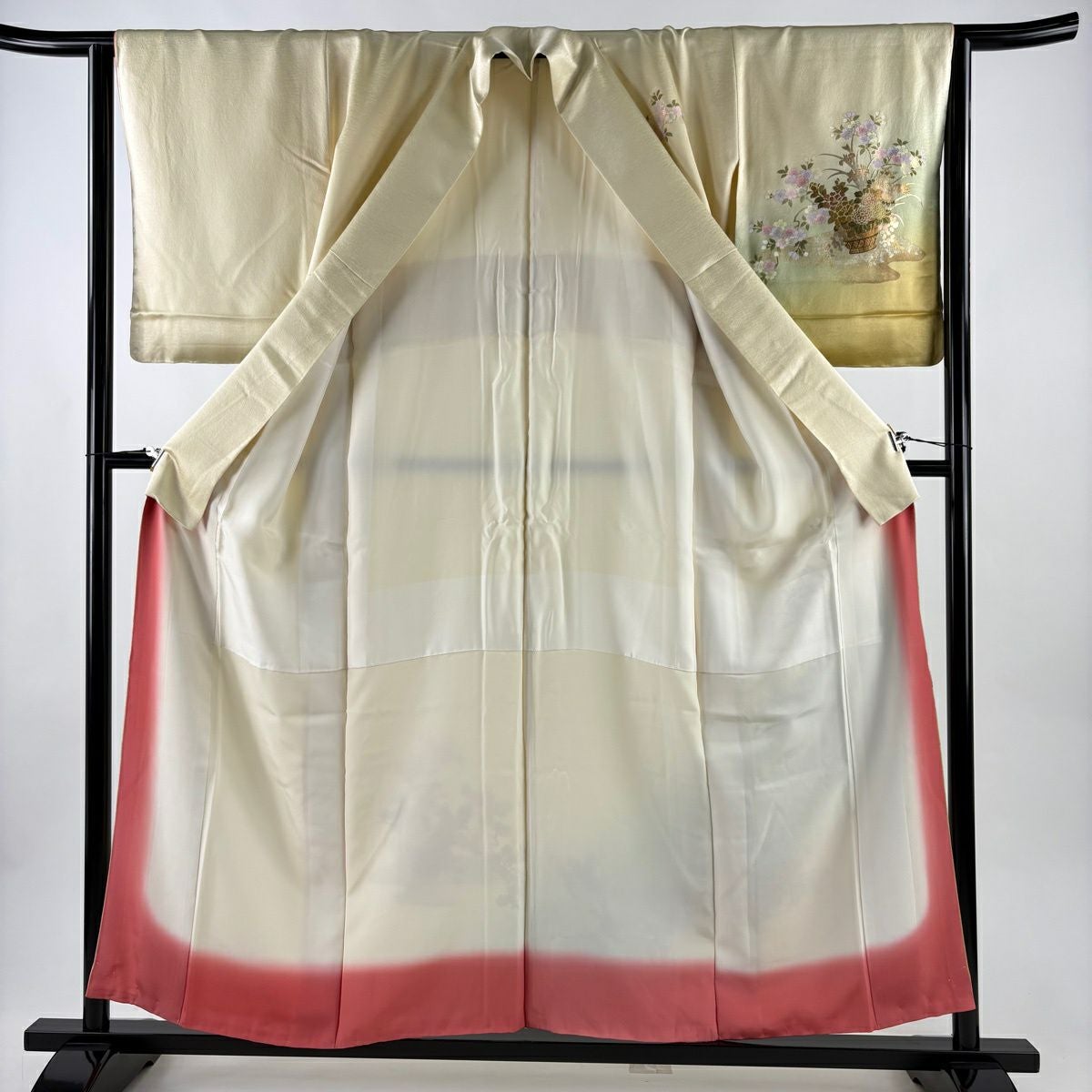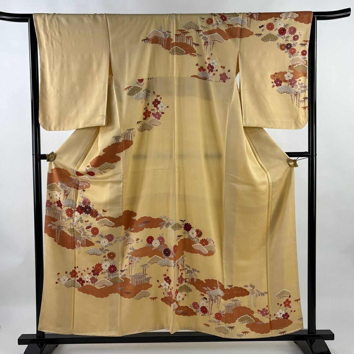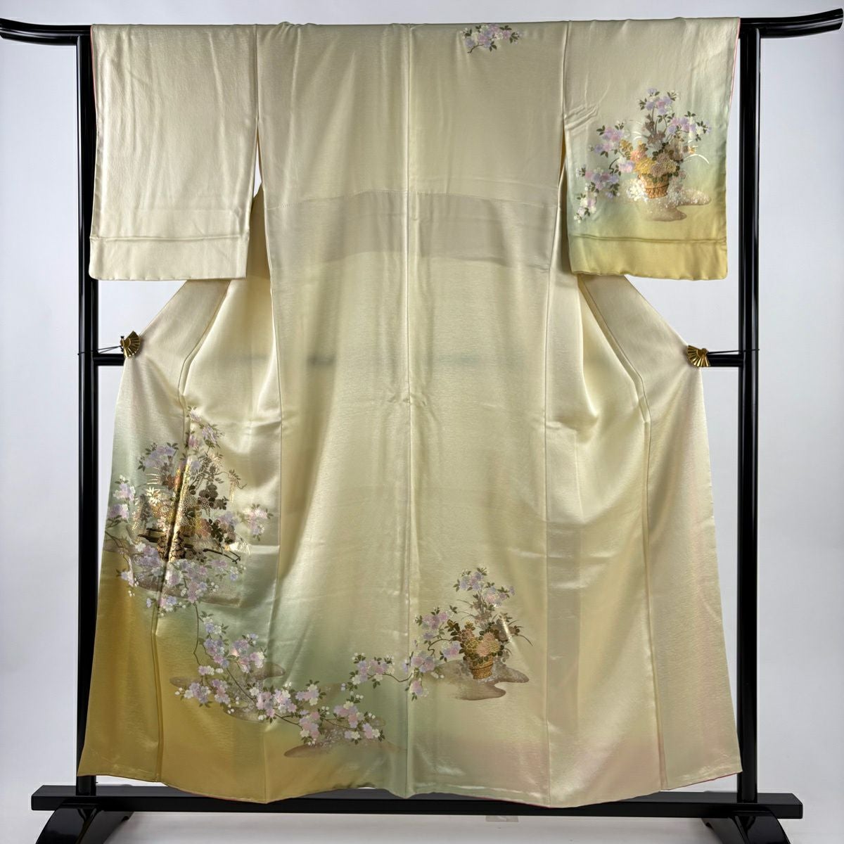 訪問着 身丈157cm 裄丈63.5cm S 袷 やまと 花車 流水 金銀彩 染め分け クリーム 正絹 秀品