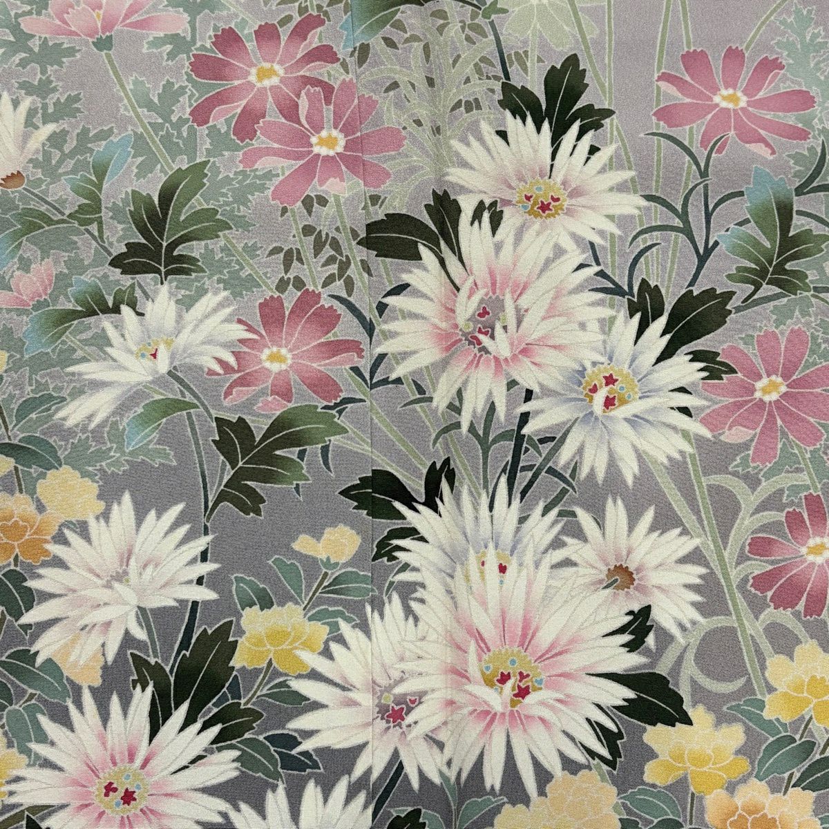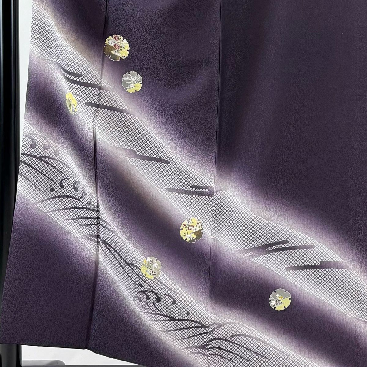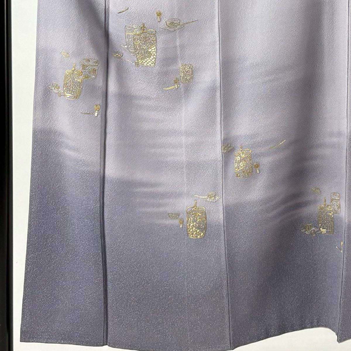 【美品】 訪問着 身丈166cm 裄丈67cm M 袷 袋帯セット 辻が花柄 金彩 ぼかし 灰紫 正絹 秀品