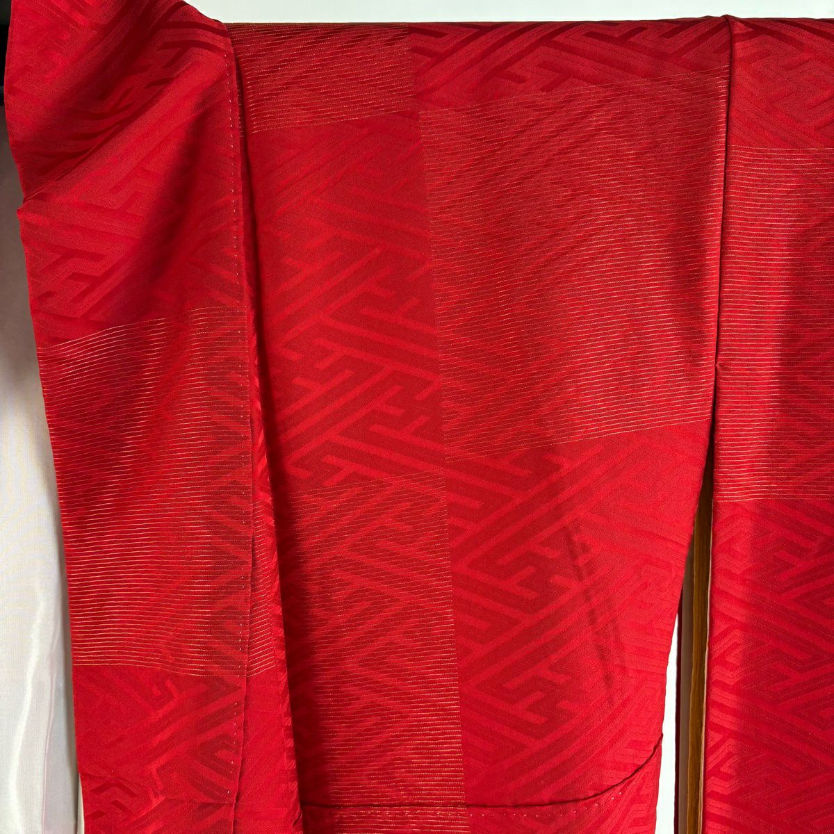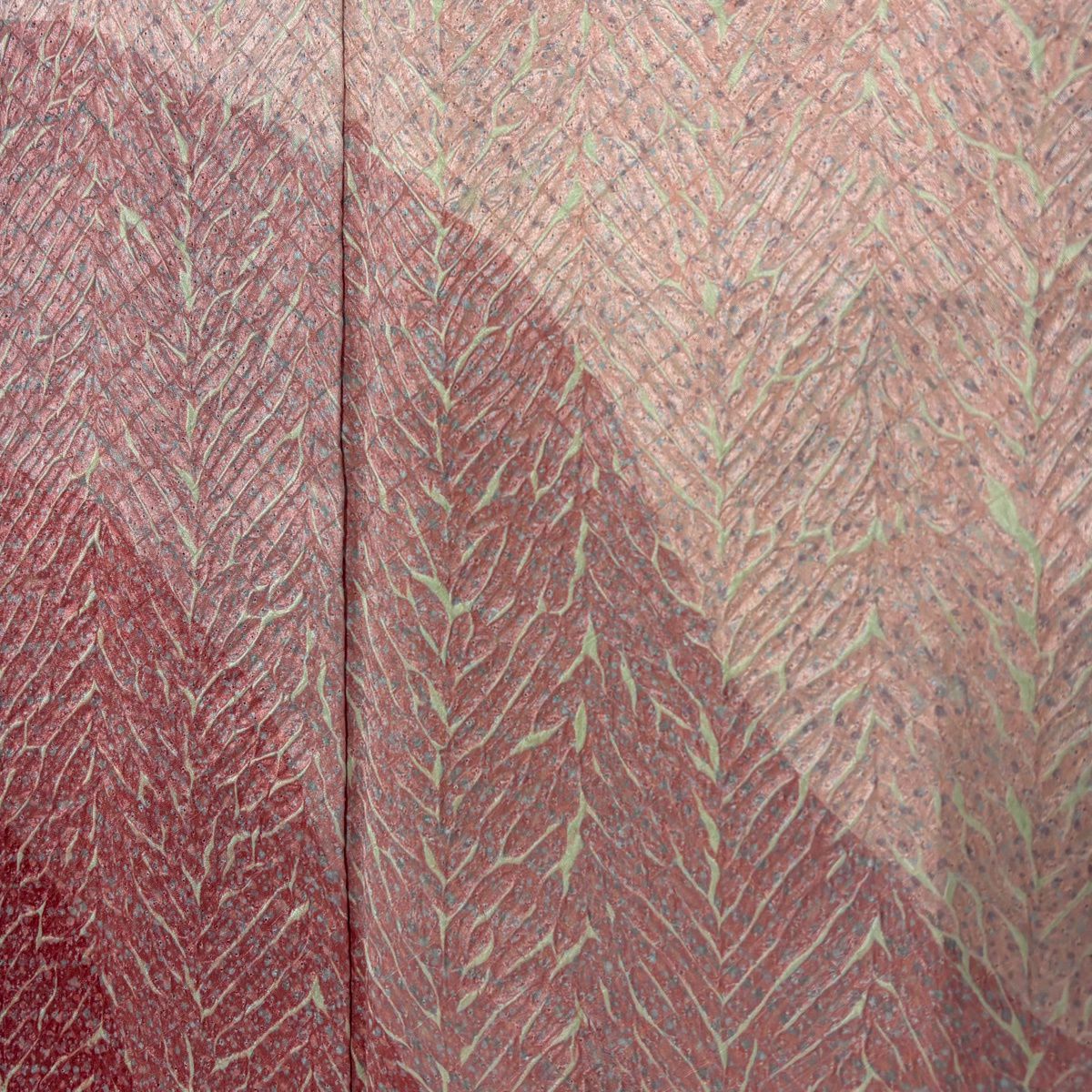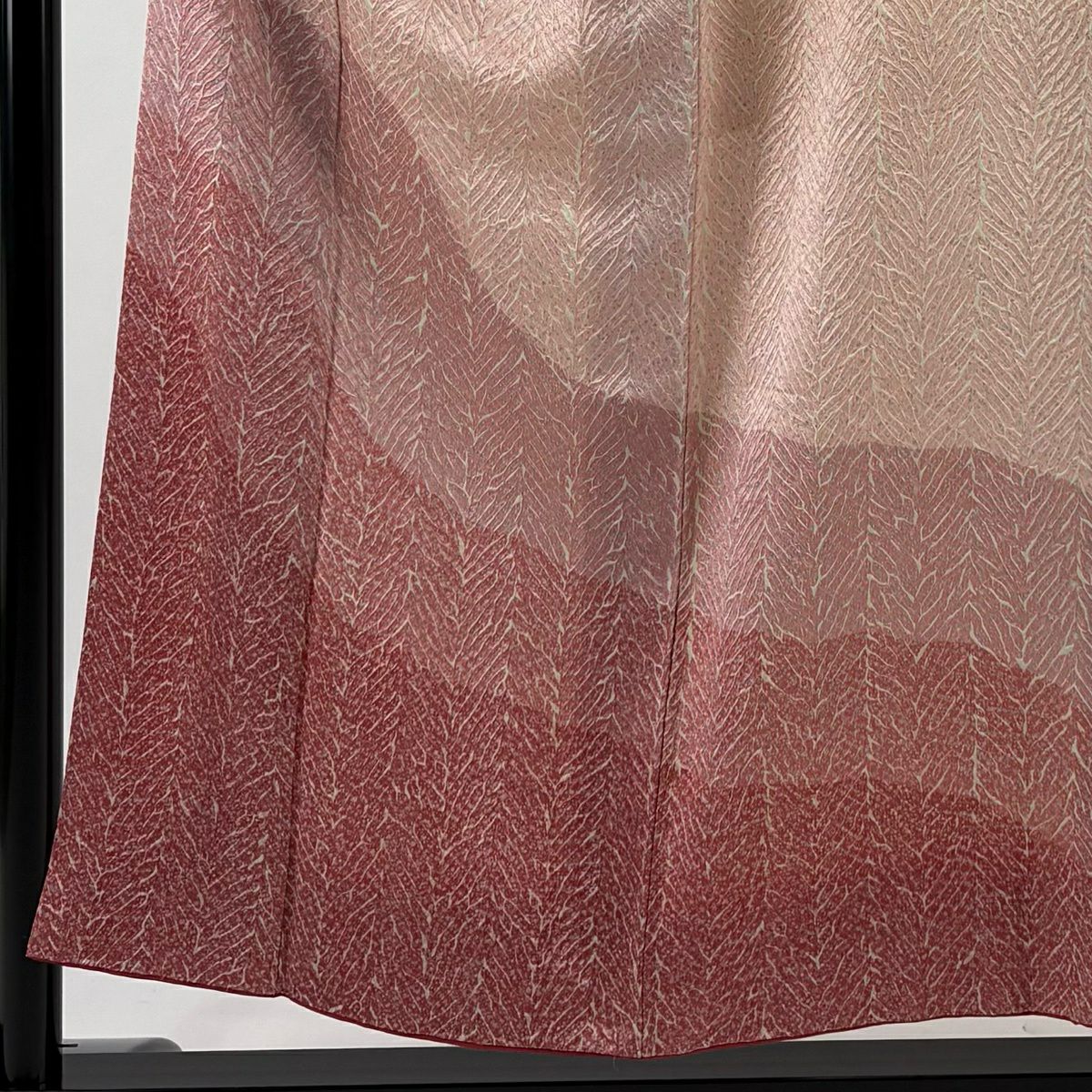 【美品】 付下げ 身丈153.5cm 裄丈64cm M 袷 幾何学模様 絞り 染め分け ピンク 正絹 秀品