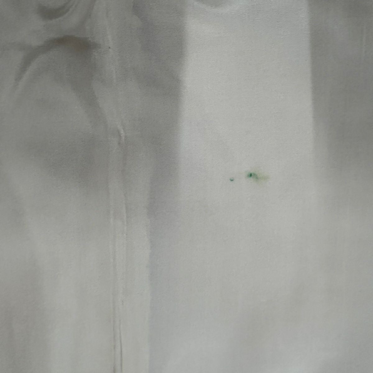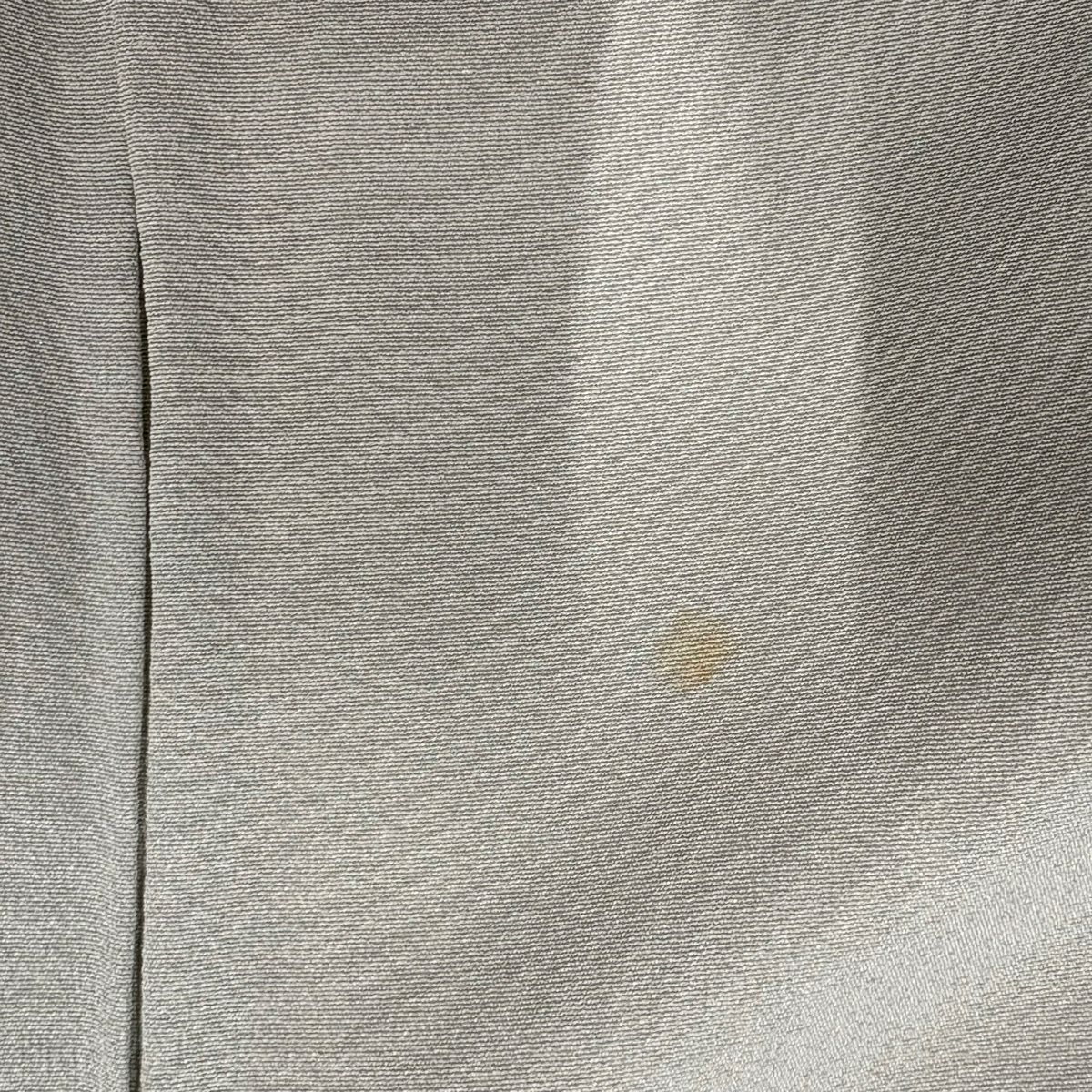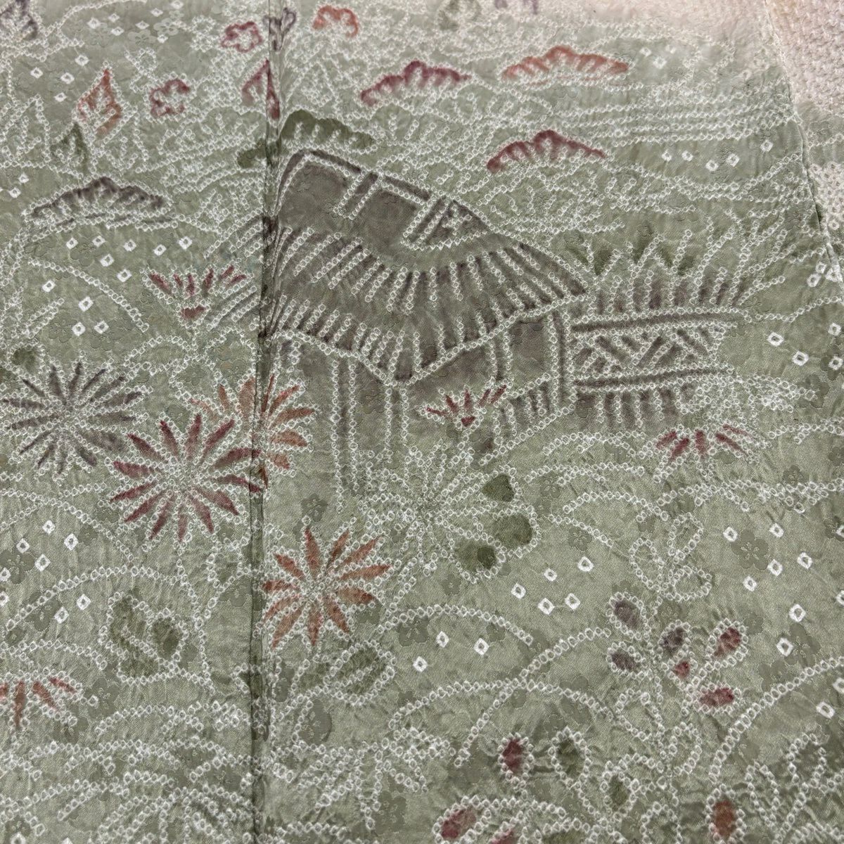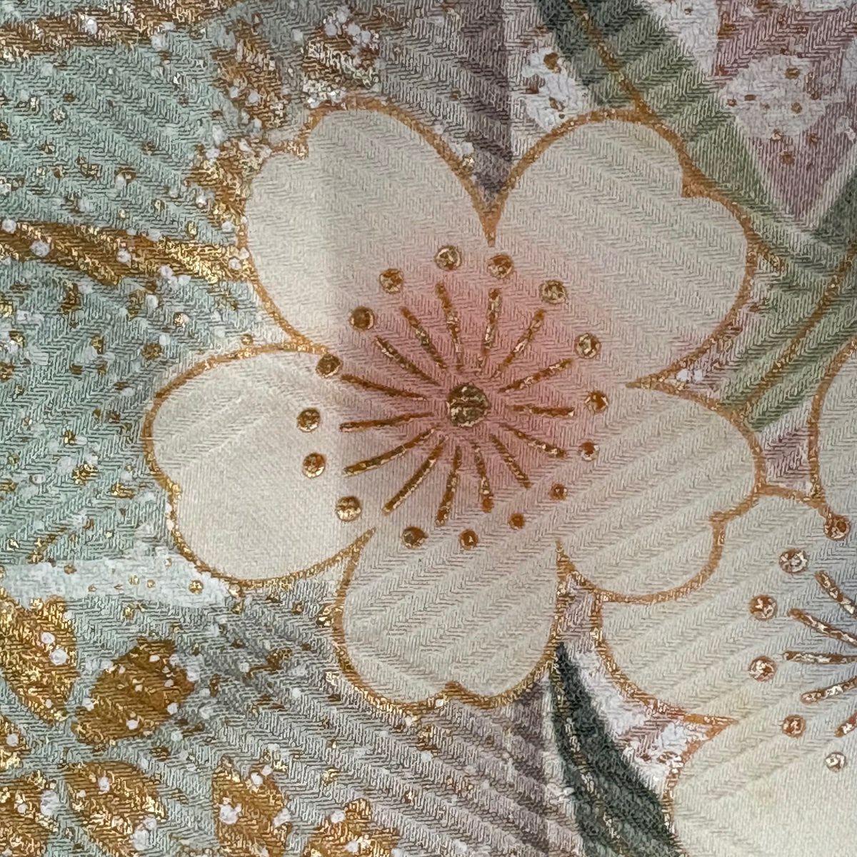 付下げ 身丈159.5cm 裄丈64cm M 袷 やまと 落款あり 斜縞 花 金彩 ぼかし 灰緑 正絹 秀品