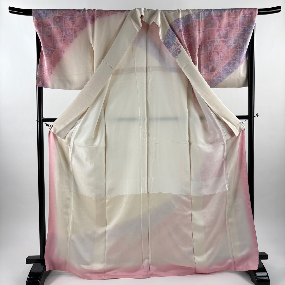 小紋 身丈159.5cm 裄丈64cm M 薄物 紗 幾何学模様 よろけ縞 ぼかし 灰紫 正絹 秀品