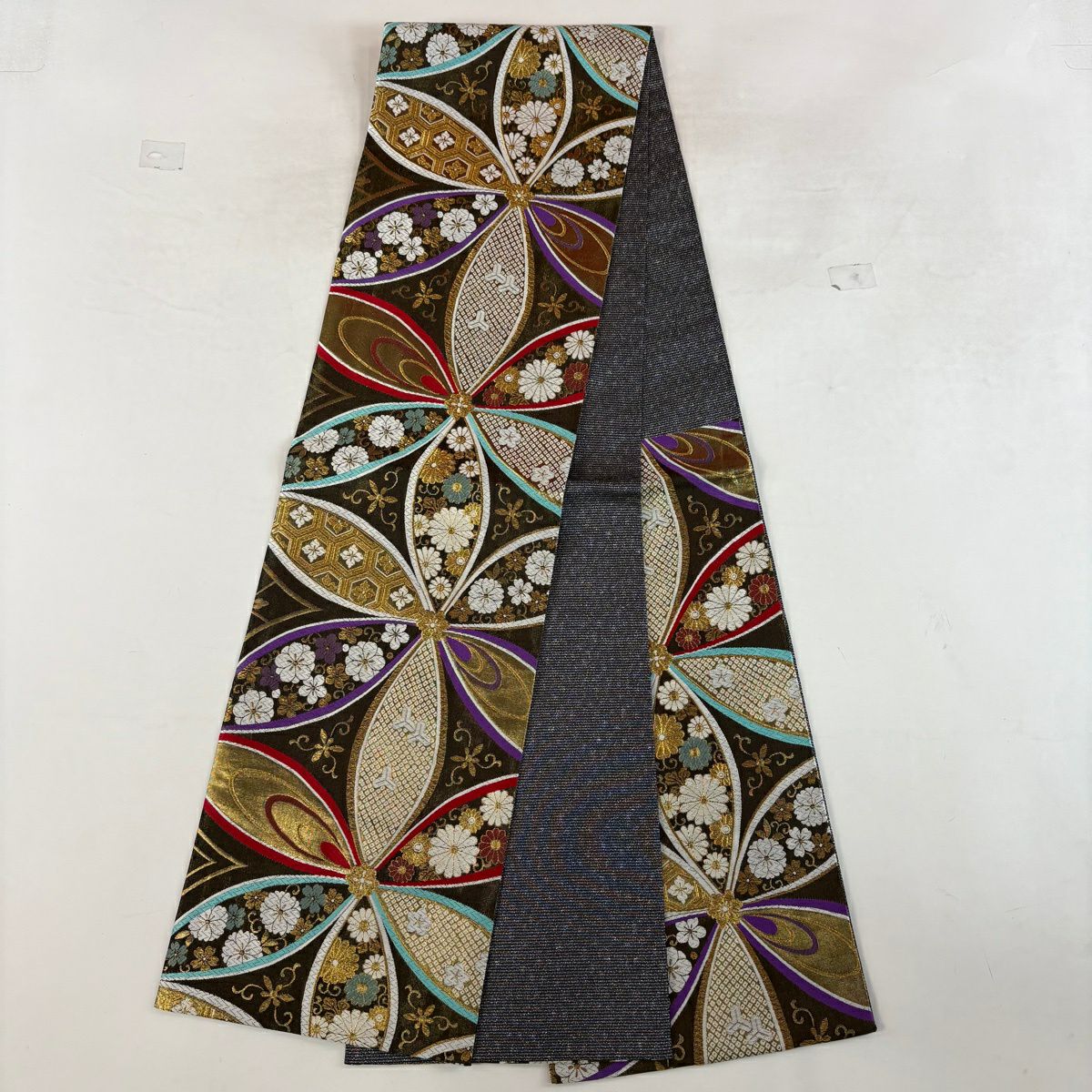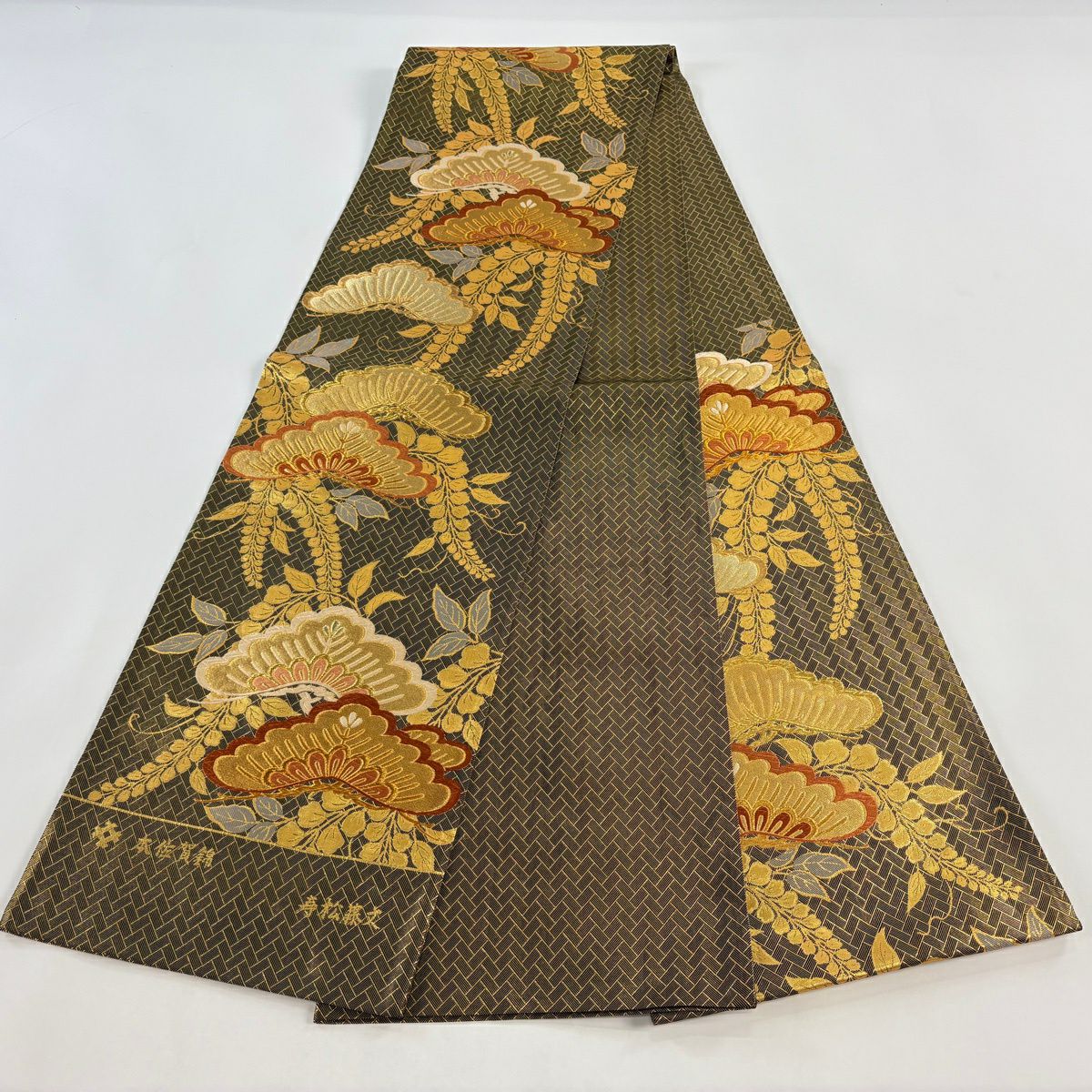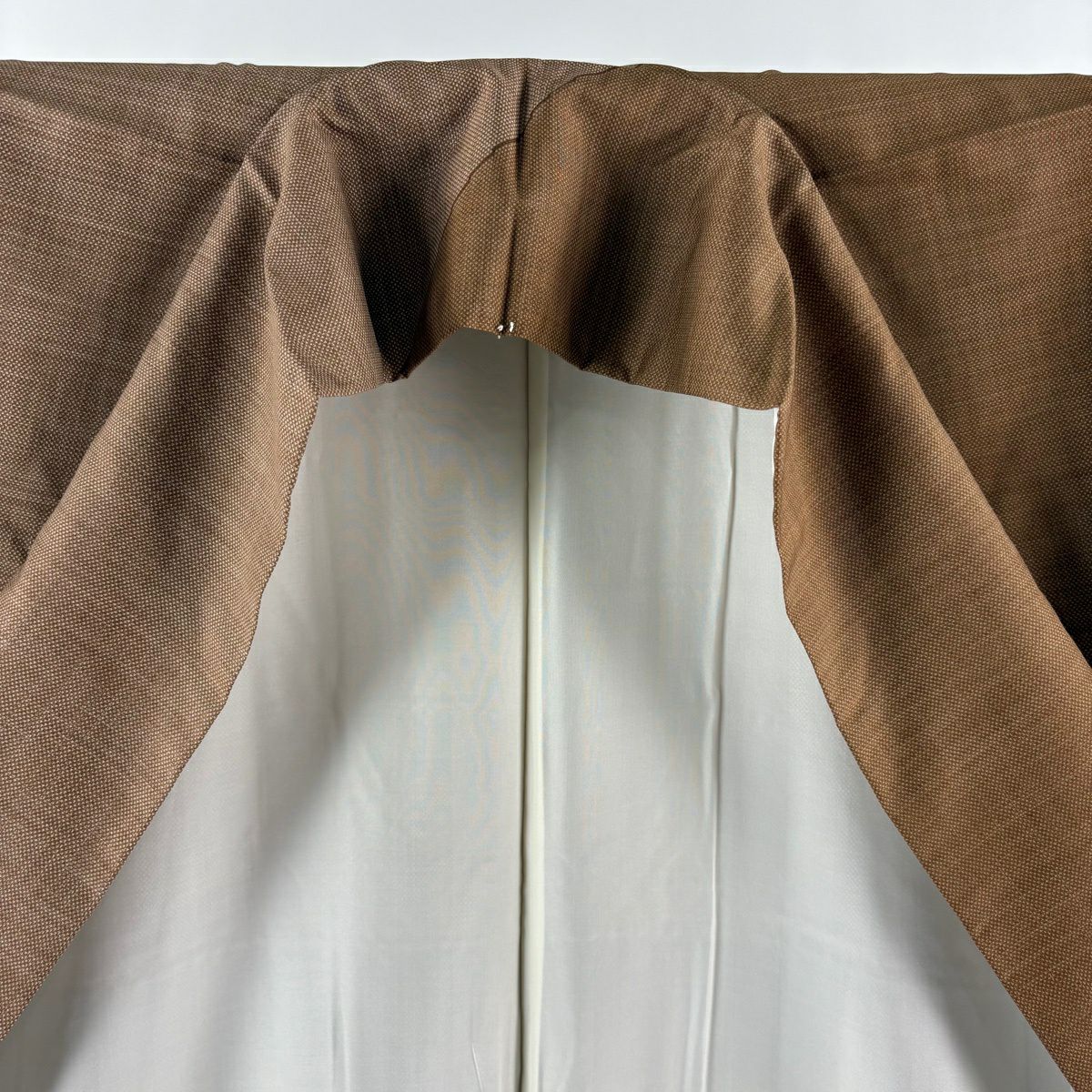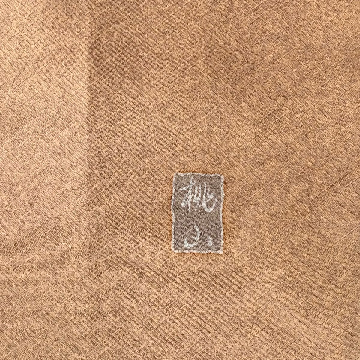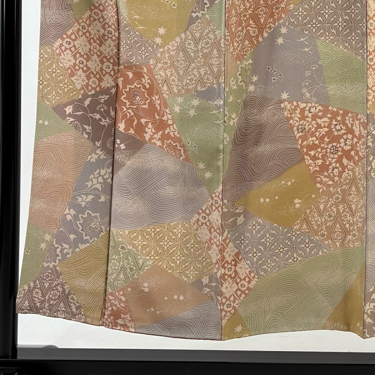 【美品】 訪問着 身丈159cm 裄丈64cm M 袷 袋名古屋帯セット 紬地 幾何学模様 茶色 正絹 秀品