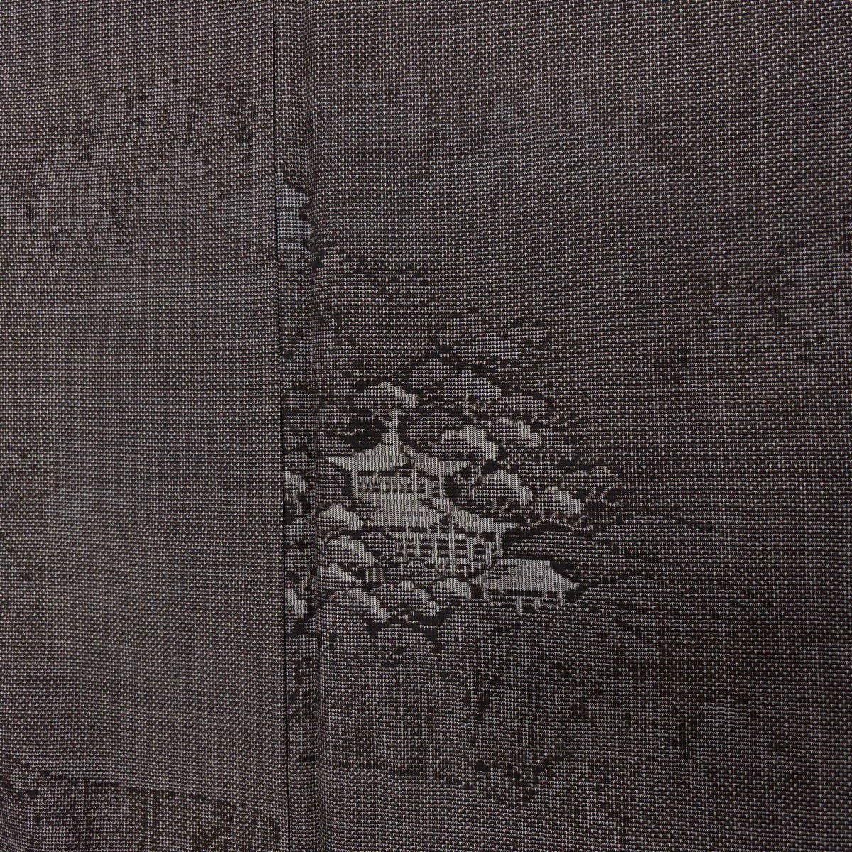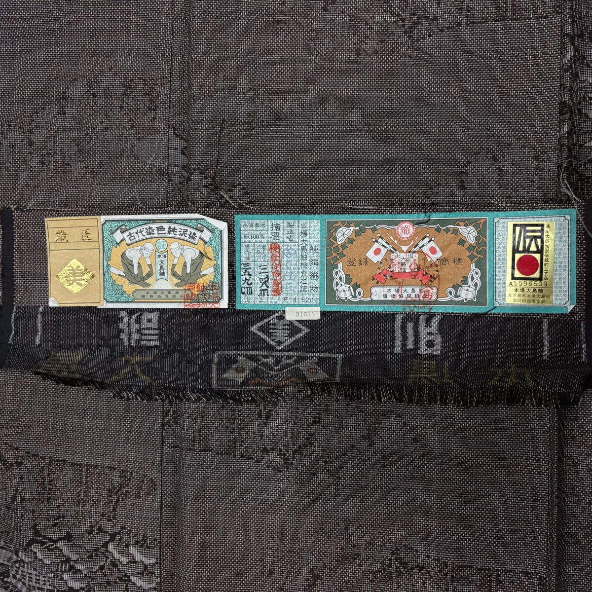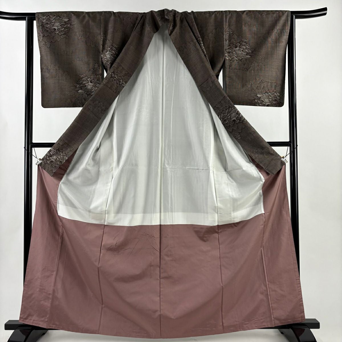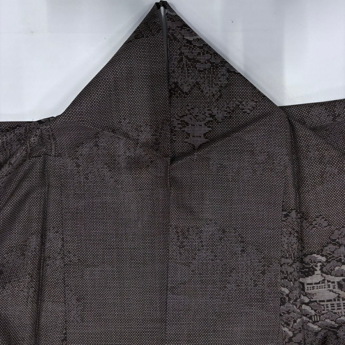 【美品】 大島紬 身丈165.5cm 裄丈64cm M 袷 純泥染 証紙あり 建物 樹木 焦茶色 正絹 秀品