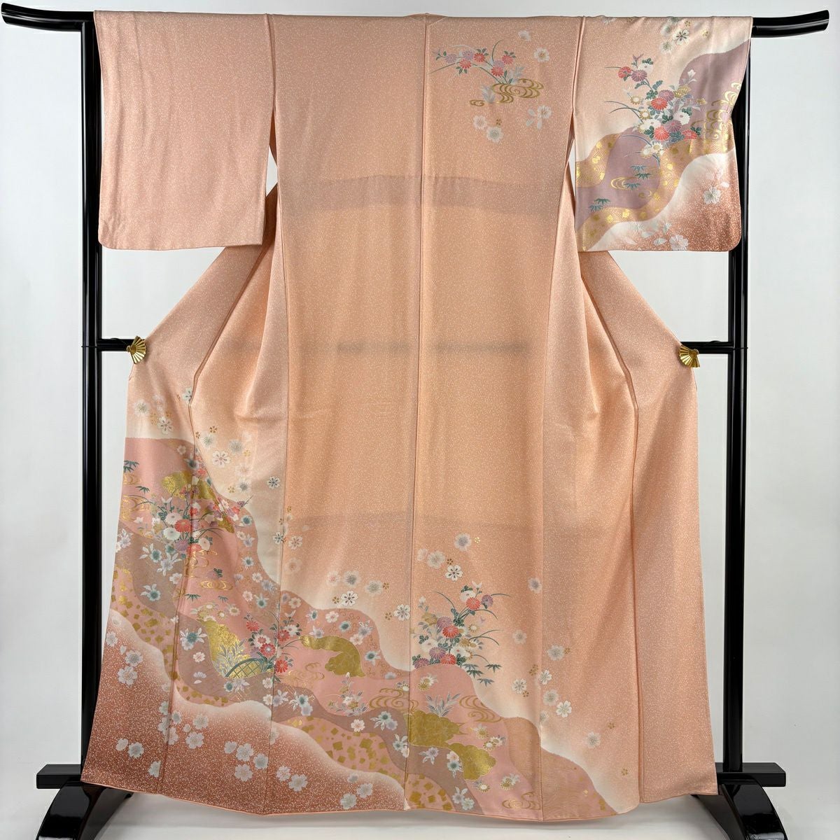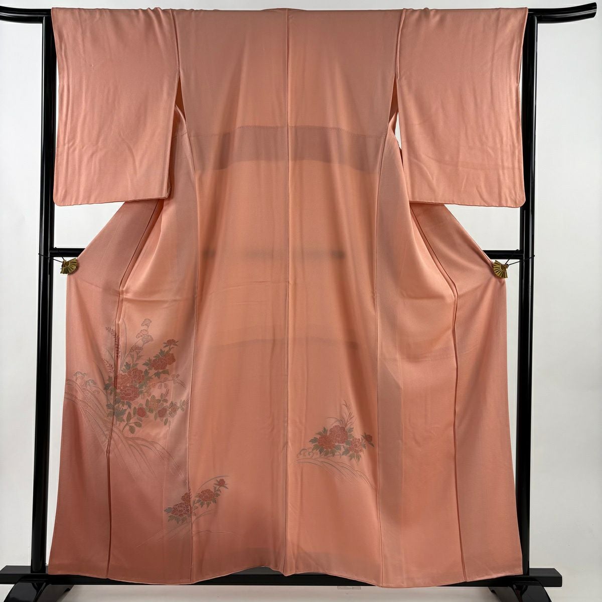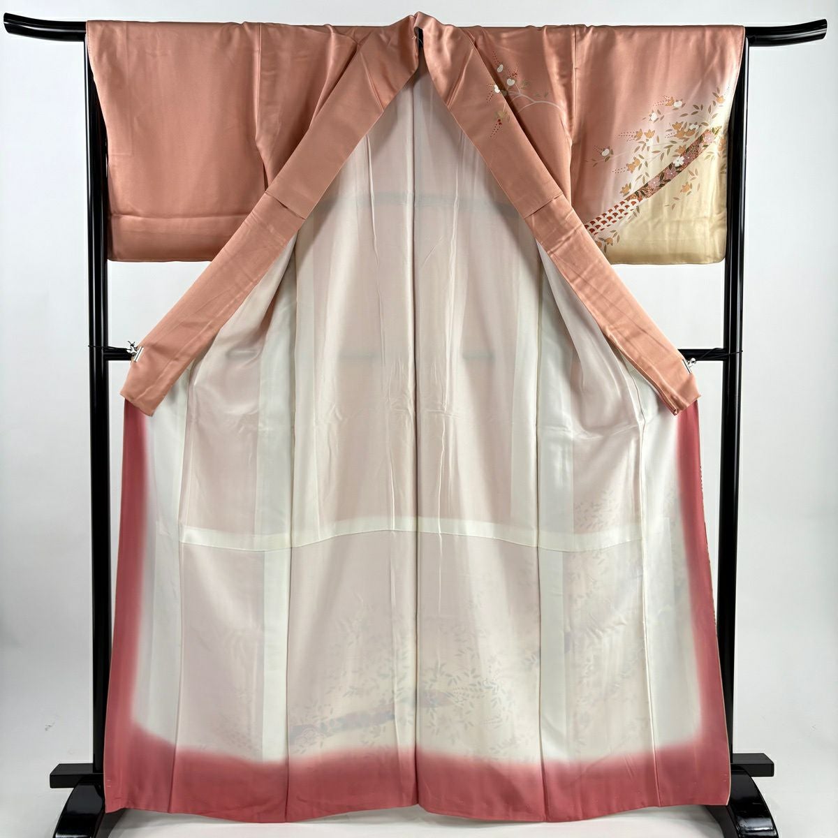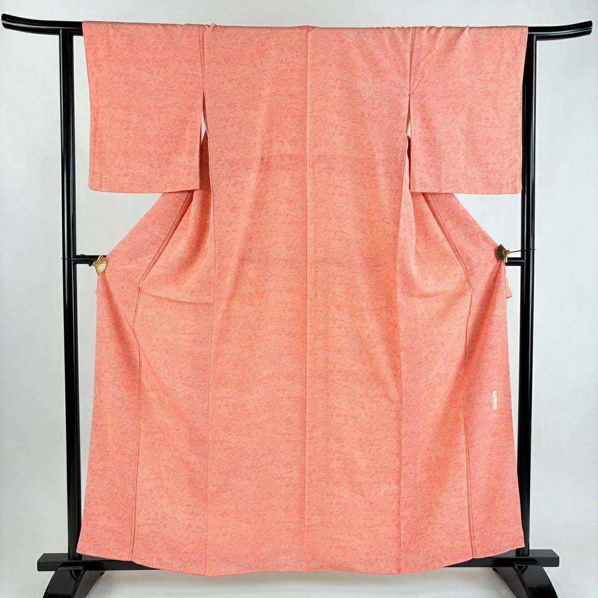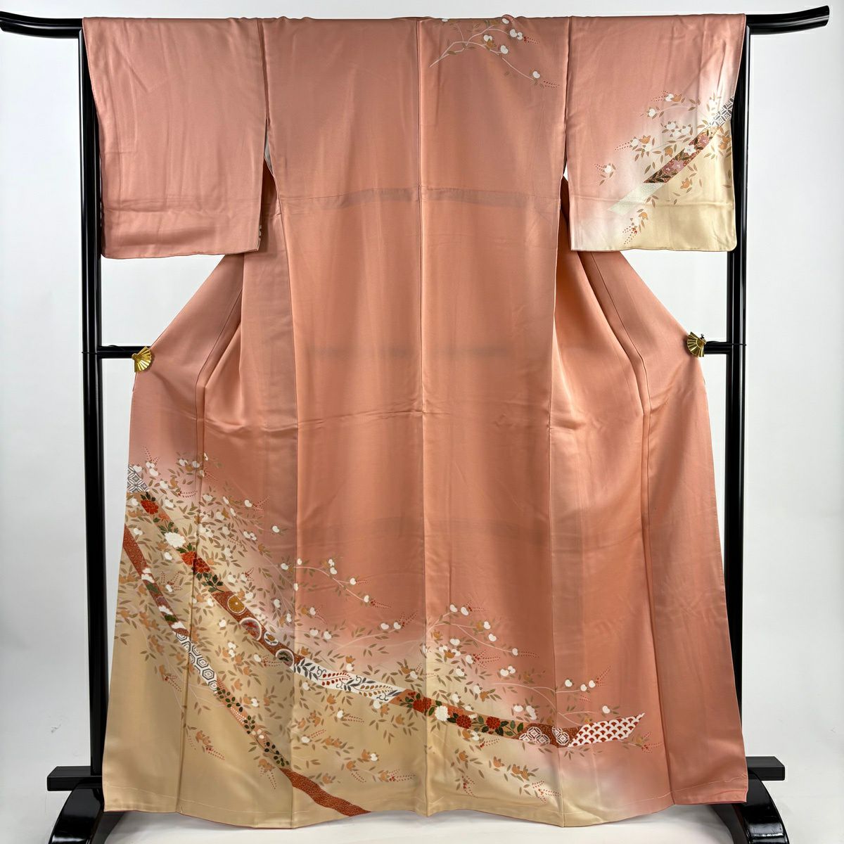 訪問着 身丈163.5cm 裄丈64cm M 袷 草花 道長取り 金彩 ぼかし サーモンピンク 正絹 秀品