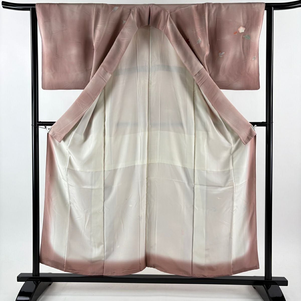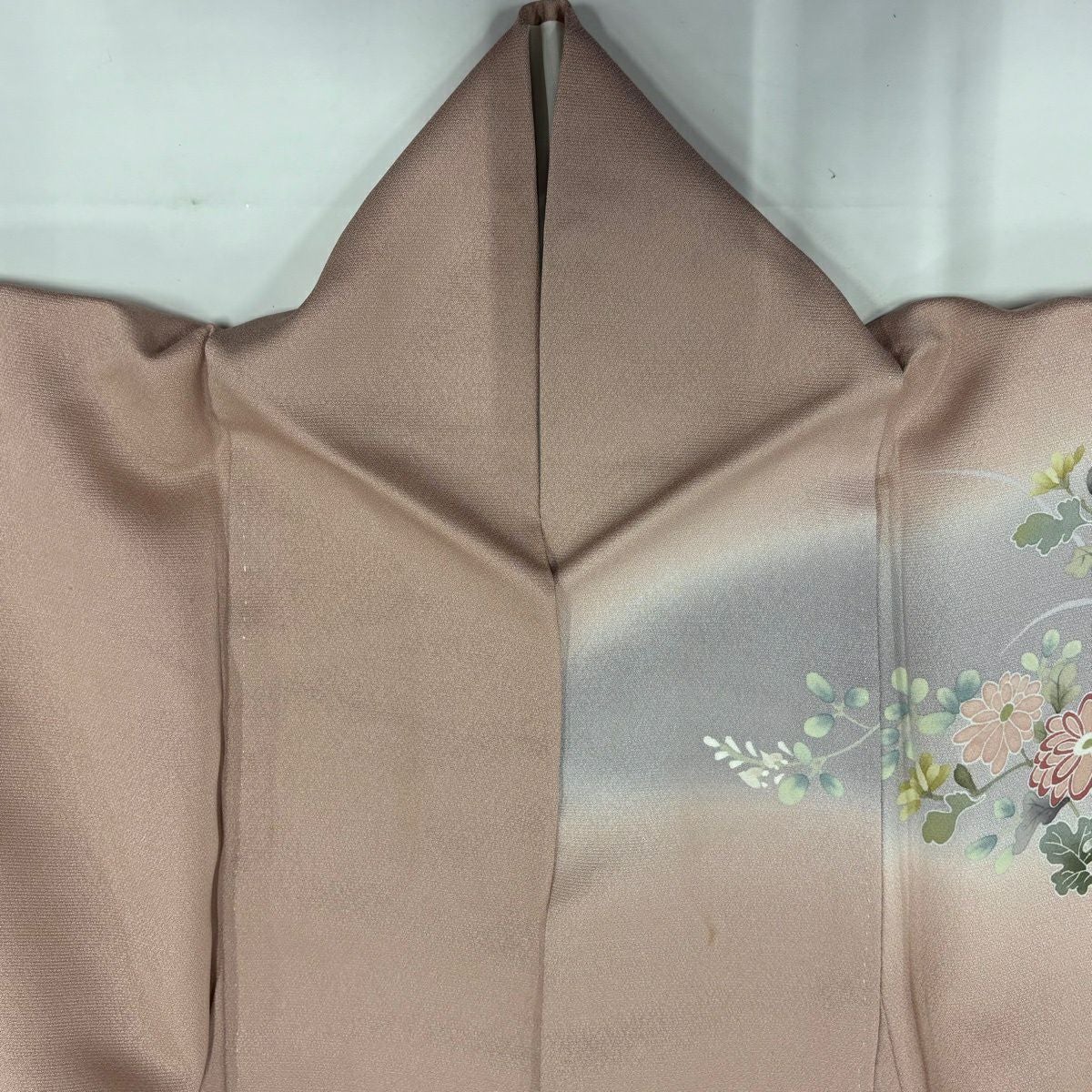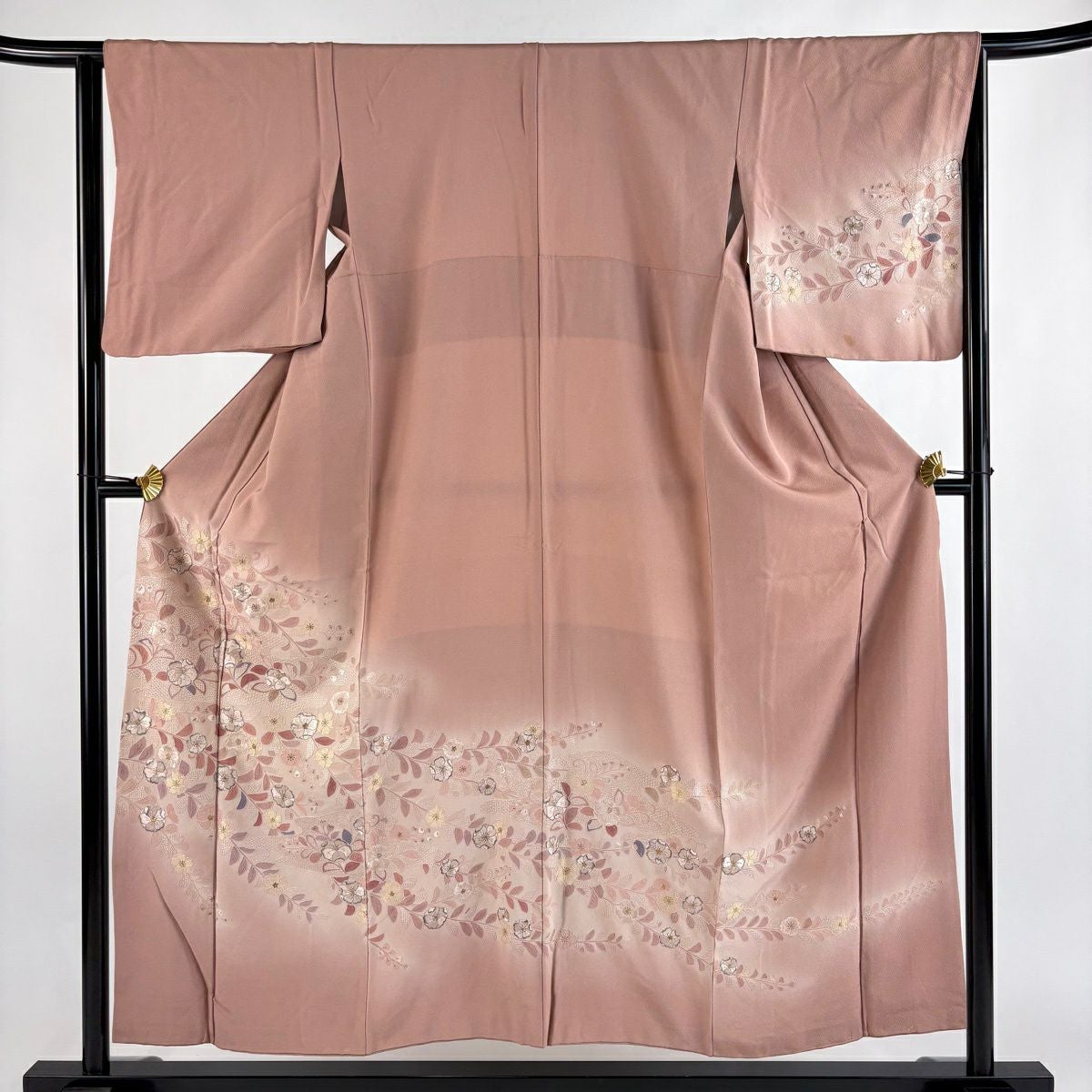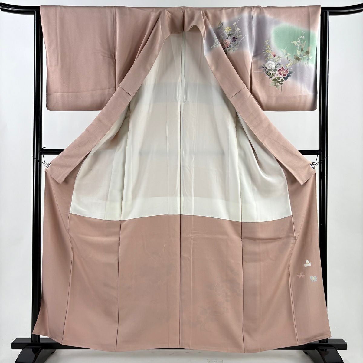 訪問着 身丈163.5cm 裄丈64cm M 袷 草花 道長取り 金彩 ぼかし サーモンピンク 正絹 秀品