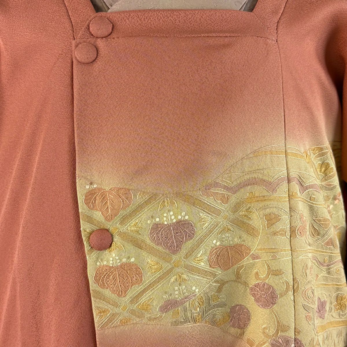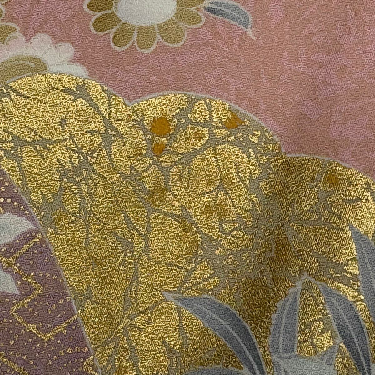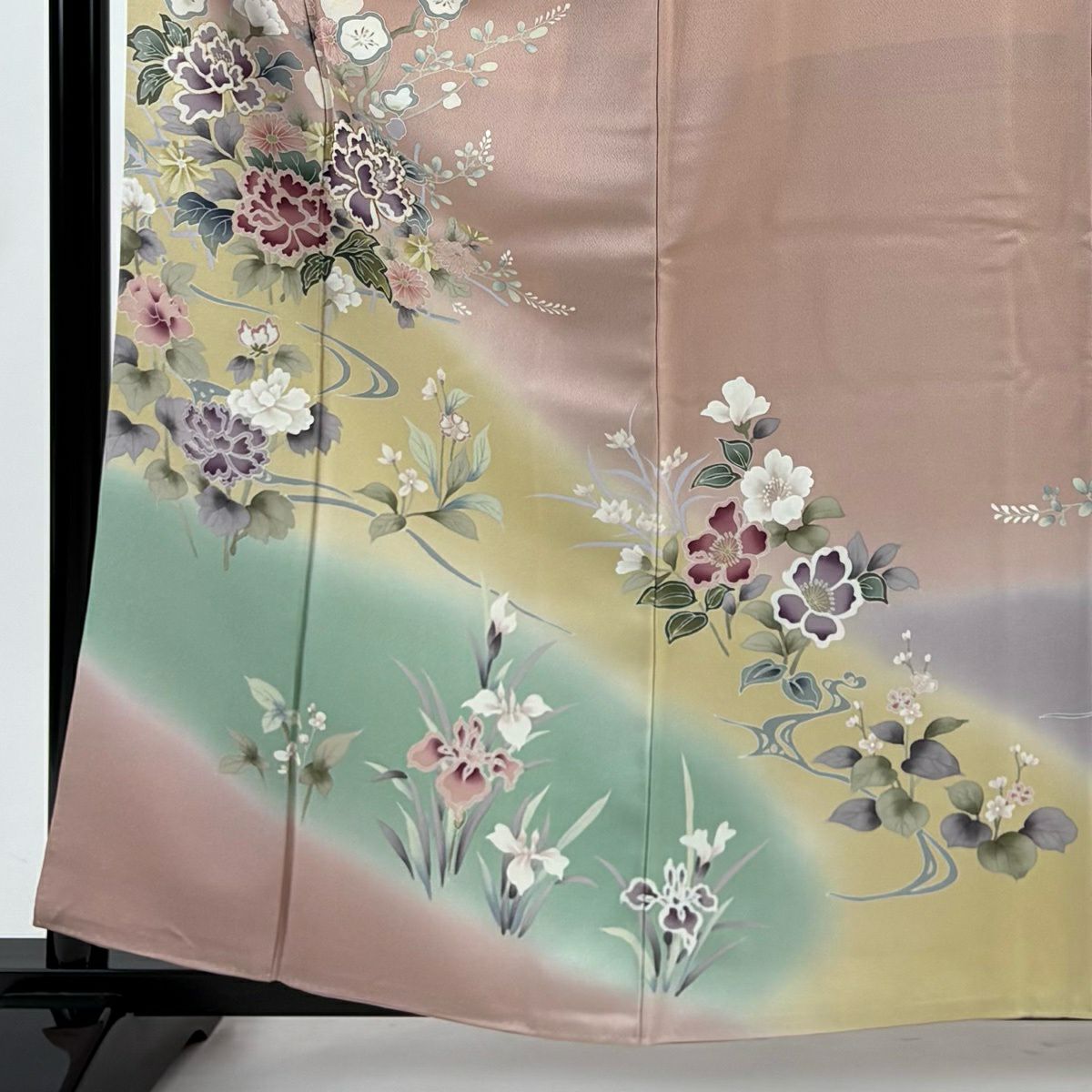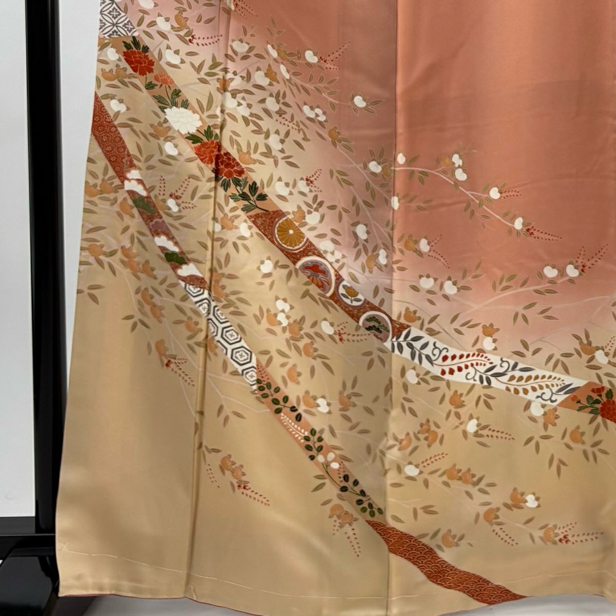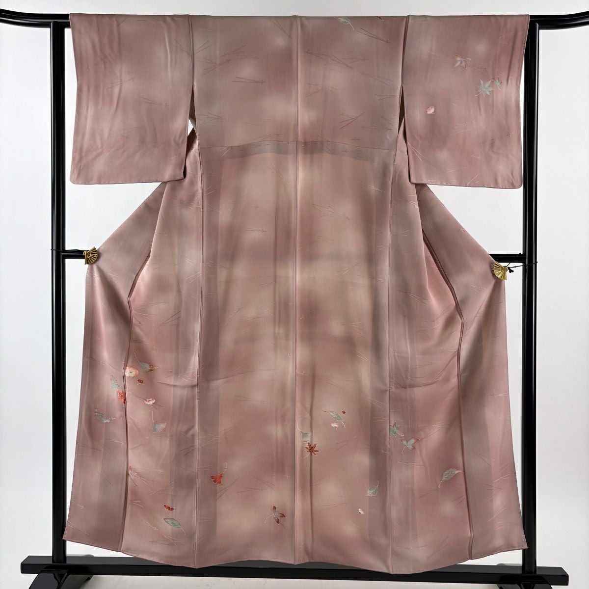 訪問着 身丈163.5cm 裄丈64cm M 袷 草花 道長取り 金彩 ぼかし サーモンピンク 正絹 秀品